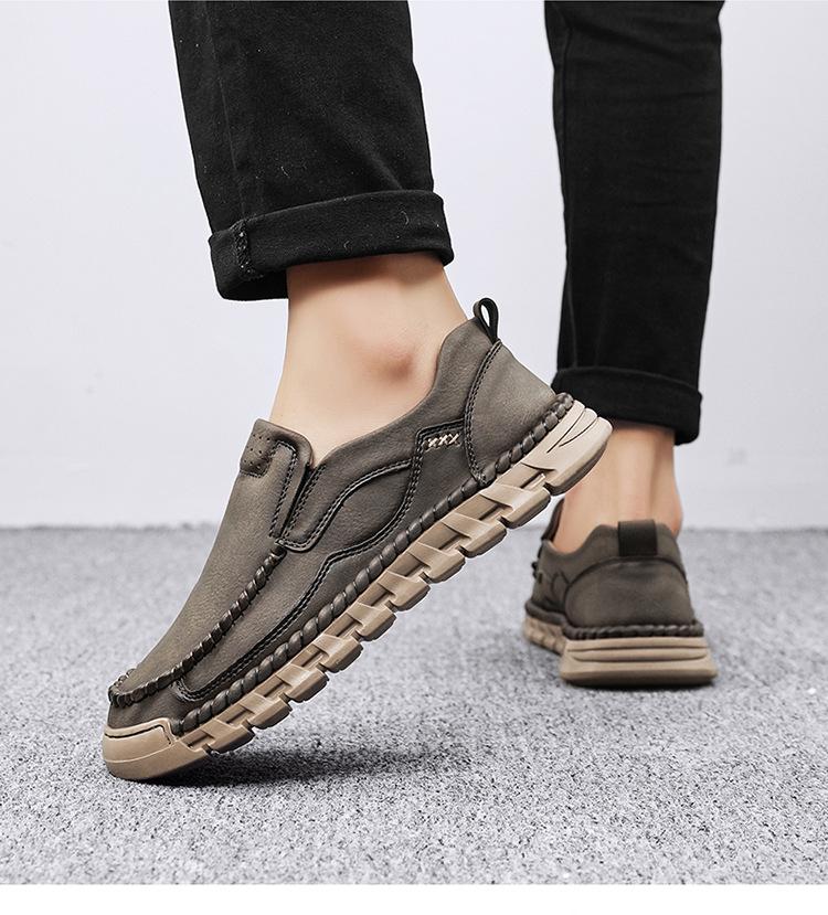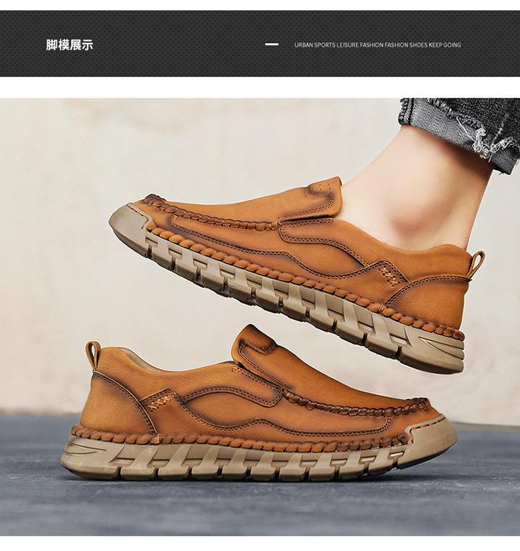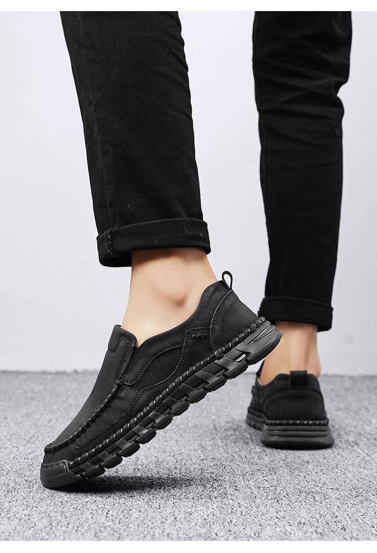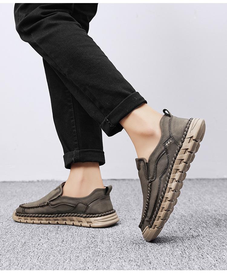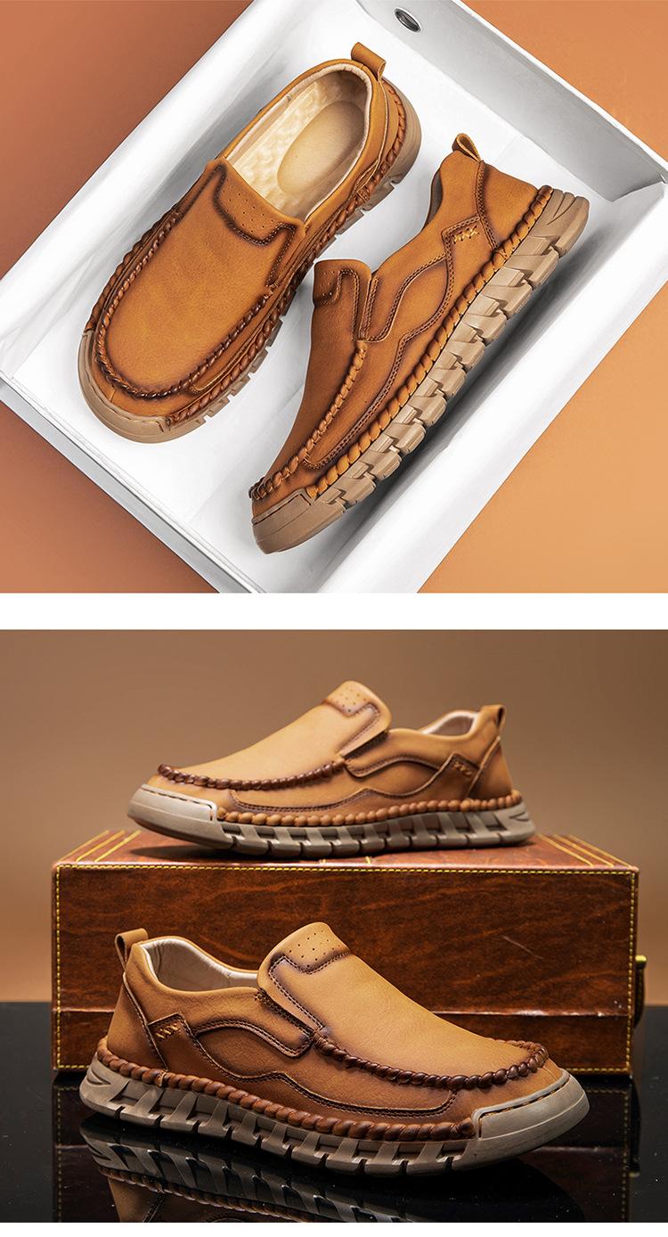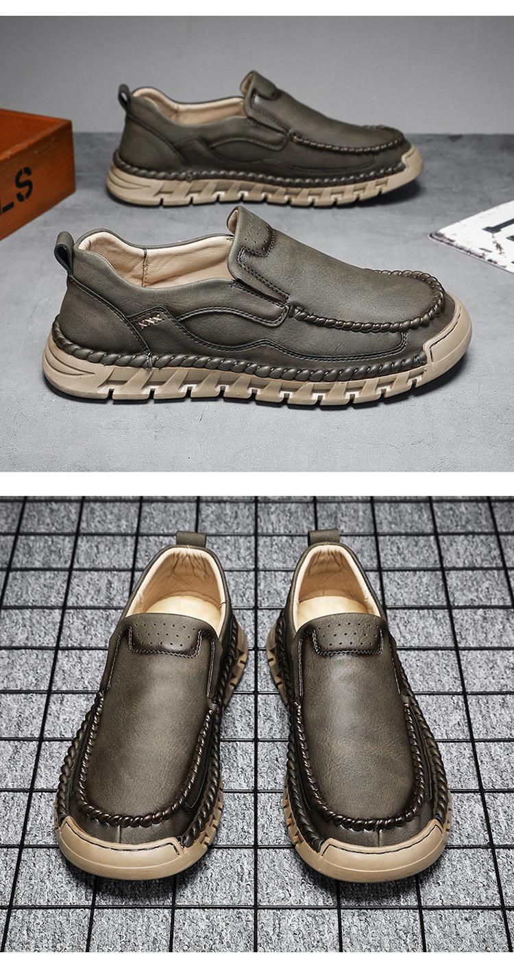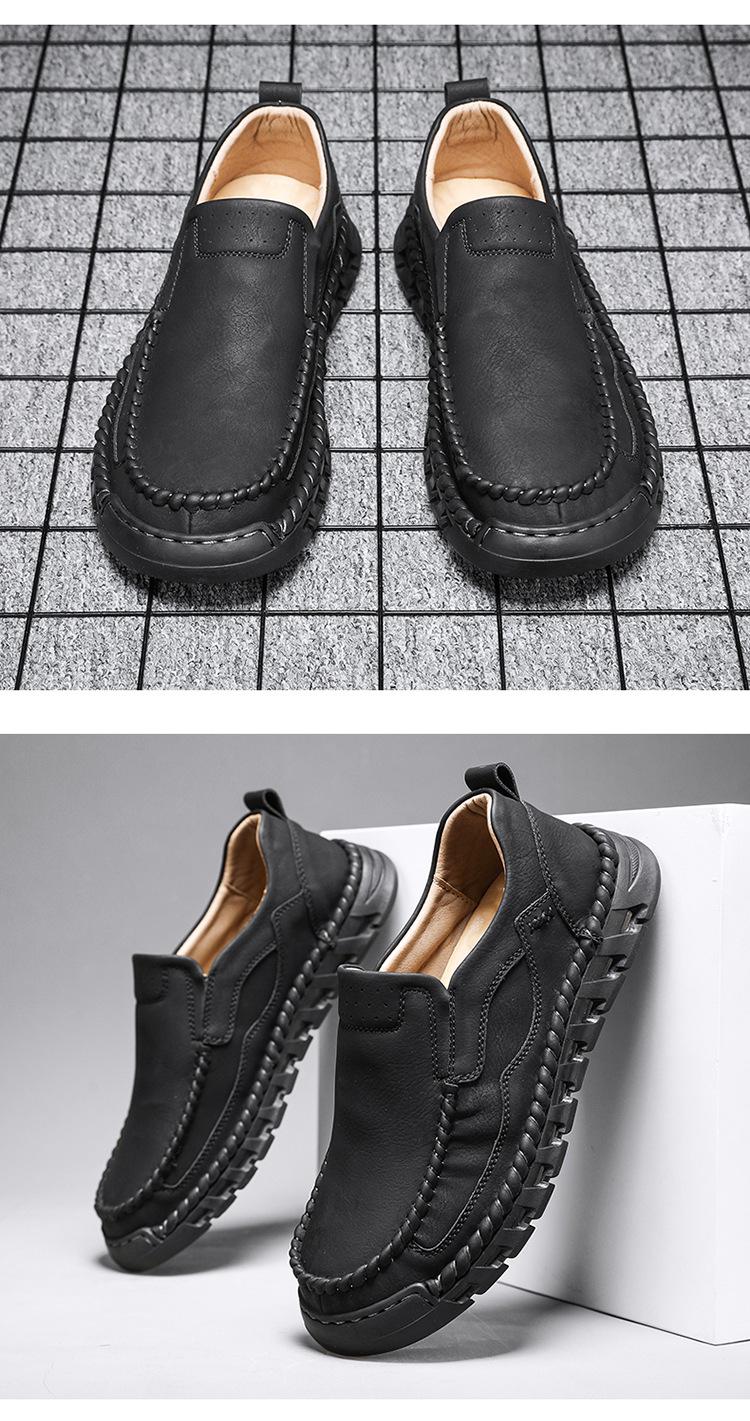 Explosiones Transfronterizas Zapatos Casuales de Pierna para Hombre Nueva Primavera y Otoño Talla Grande Zapatos de Papá de Cuero Cosidos a Mano para Hombre