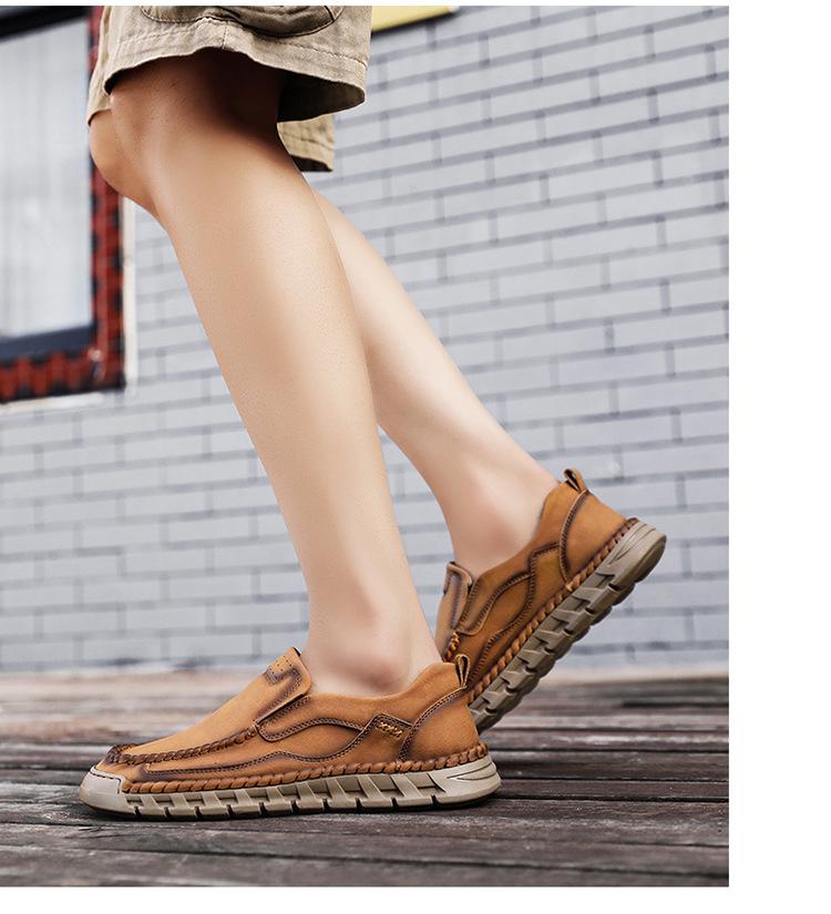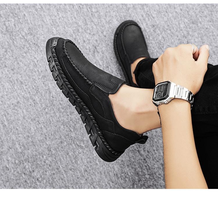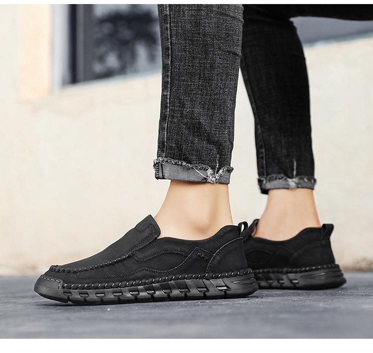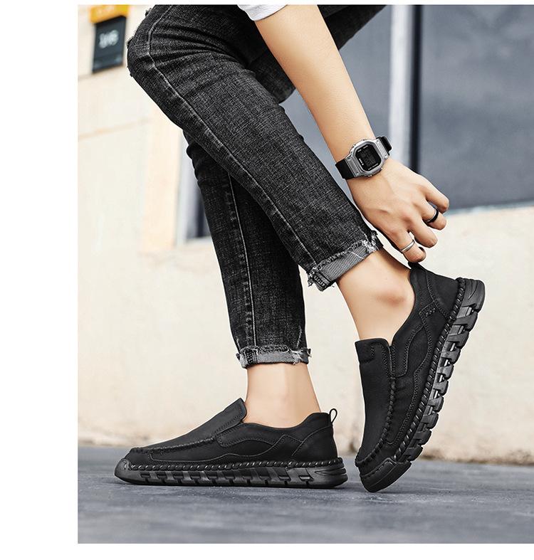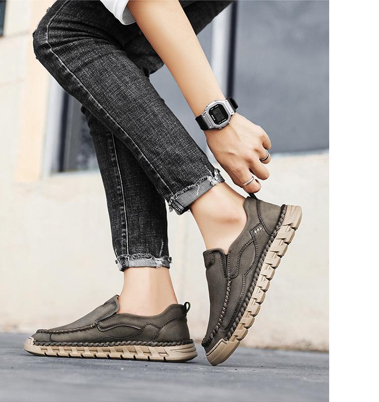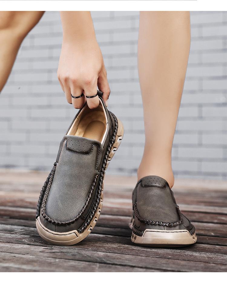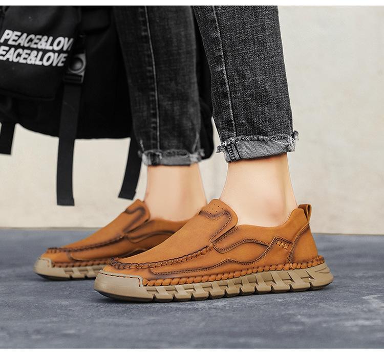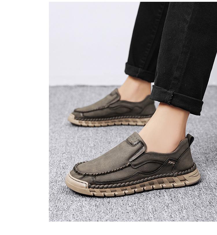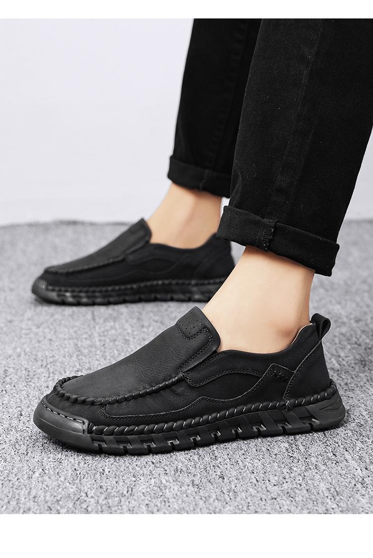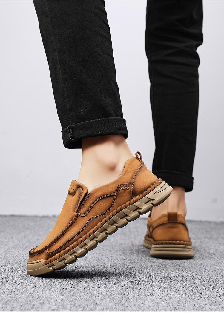 Explosiones Transfronterizas Zapatos Casuales de Pierna para Hombre Nueva Primavera y Otoño Talla Grande Zapatos de Papá de Cuero Cosidos a Mano para Hombre