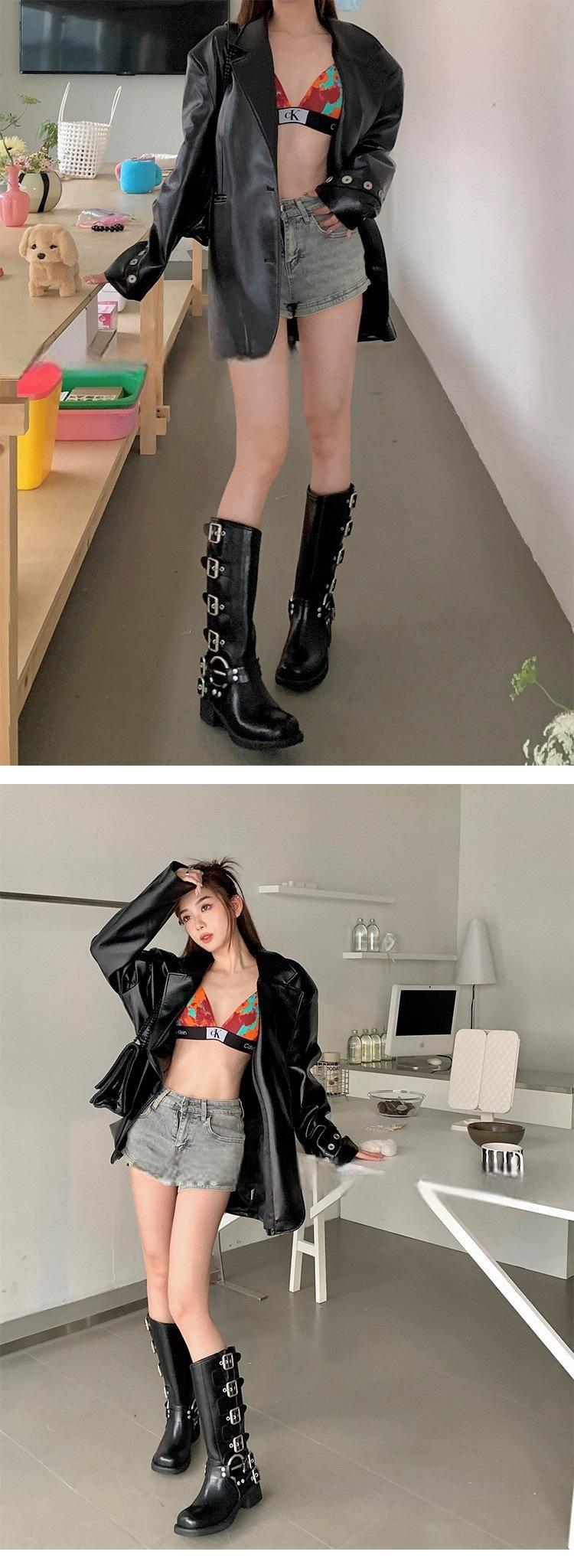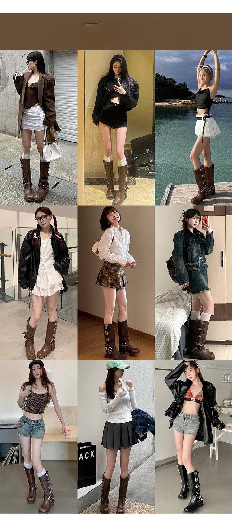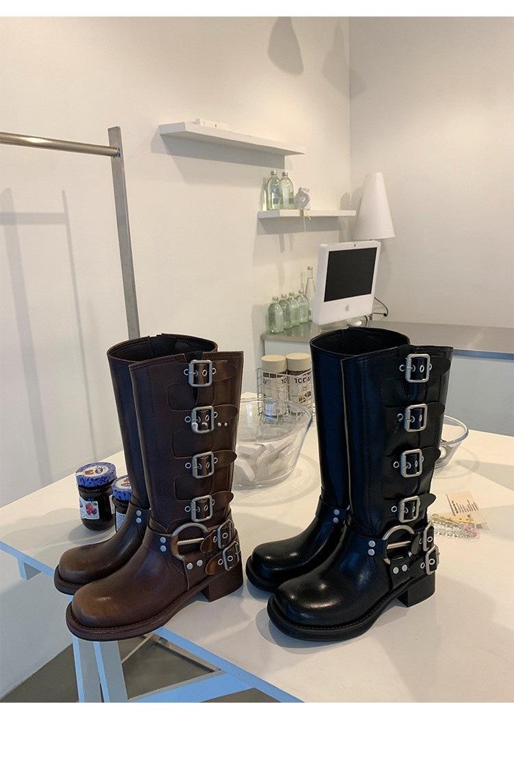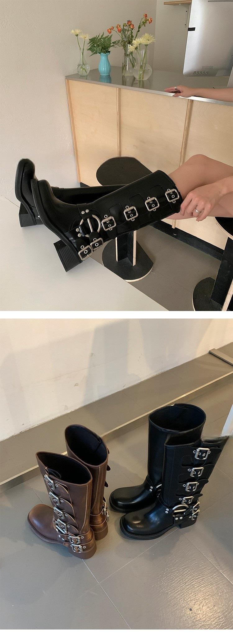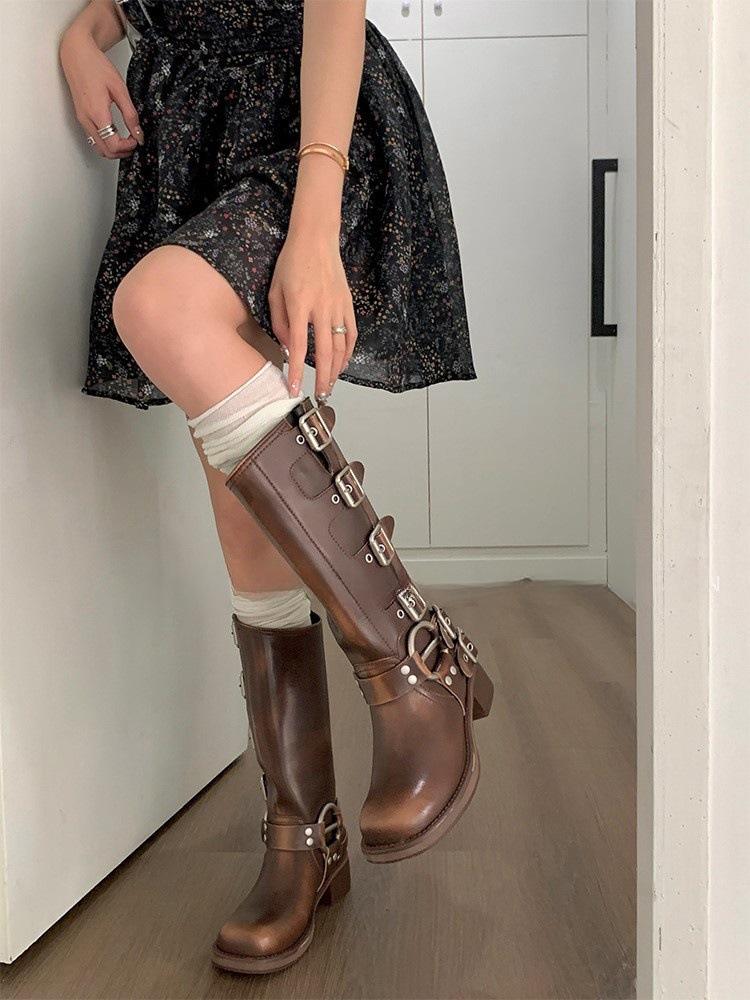 Botas altas 2024, nuevas botas de motociclista con punta cuadrada y manga, botas vaqueras retro estilo western, tendencia