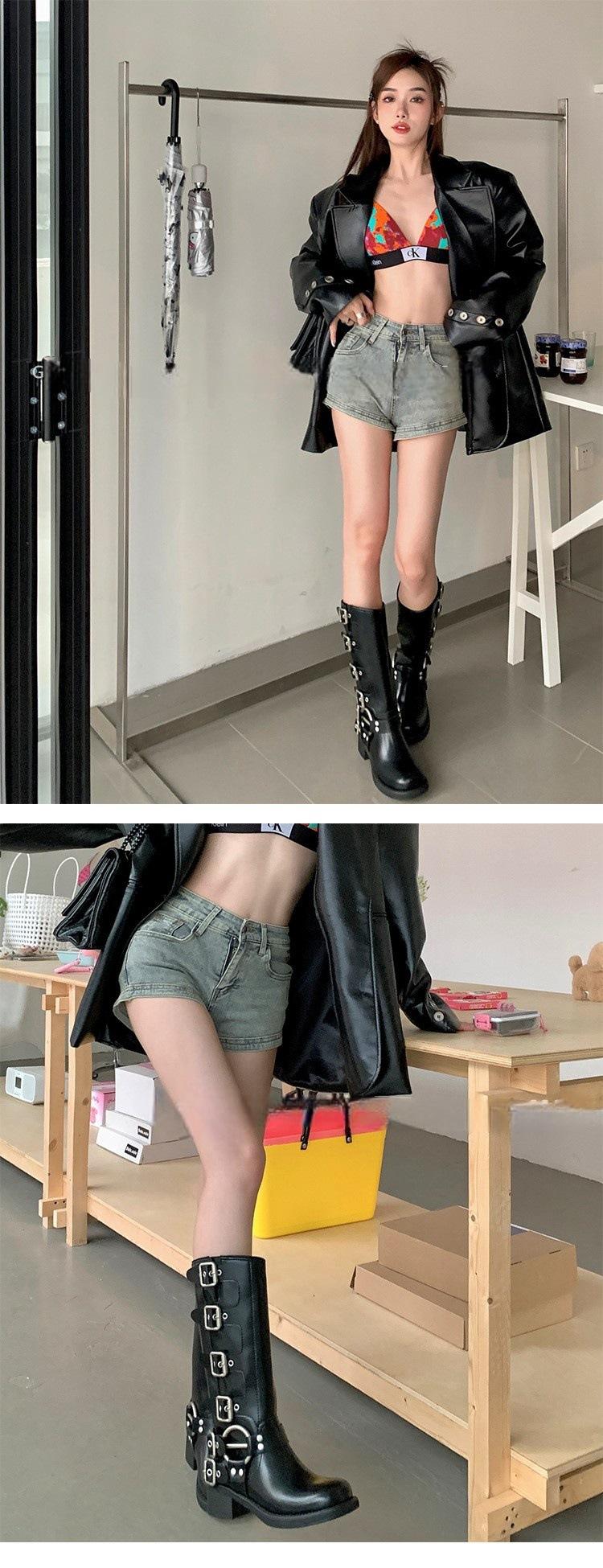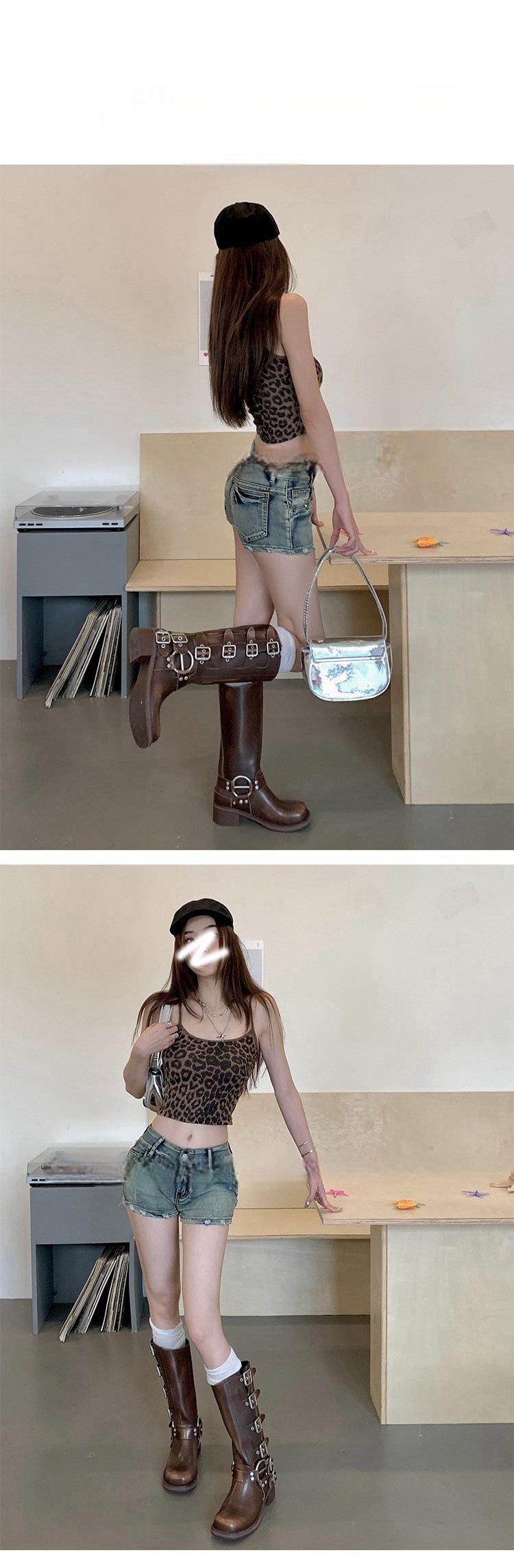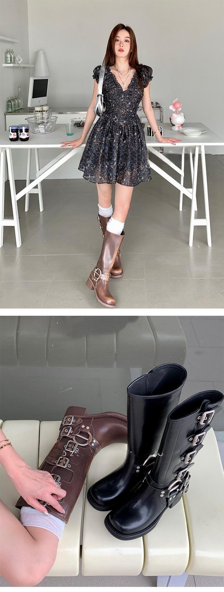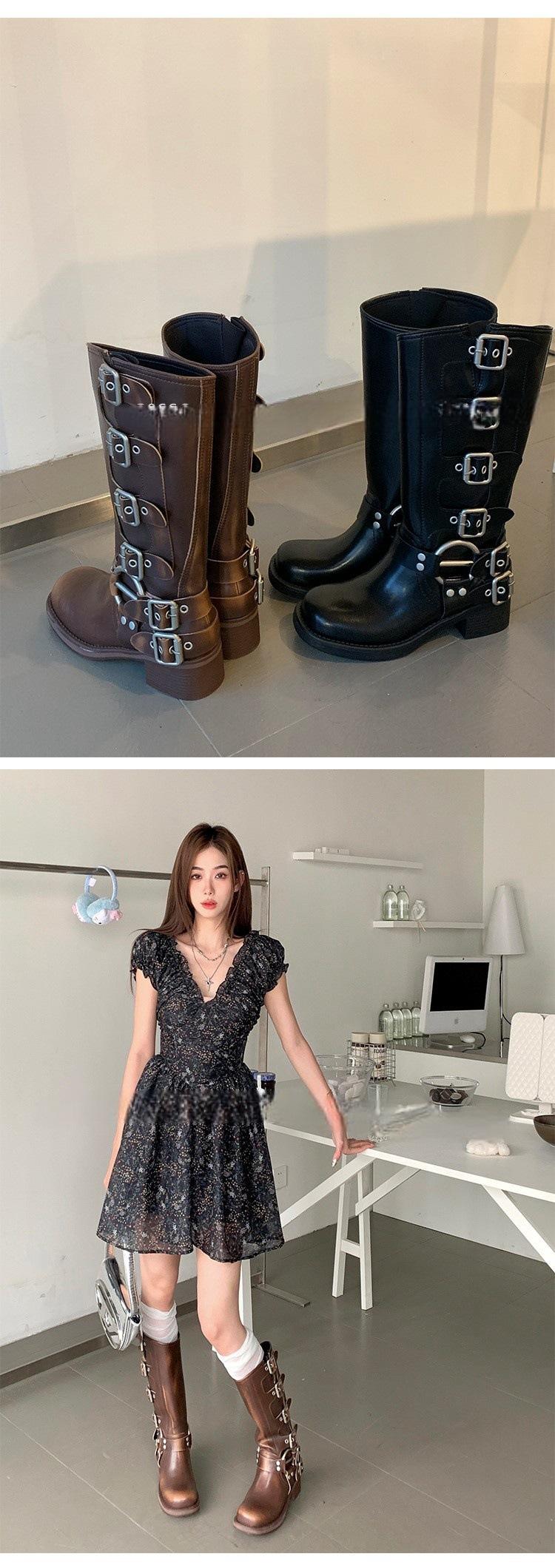 Botas altas 2024, nuevas botas de motociclista con punta cuadrada y manga, botas vaqueras retro estilo western, tendencia