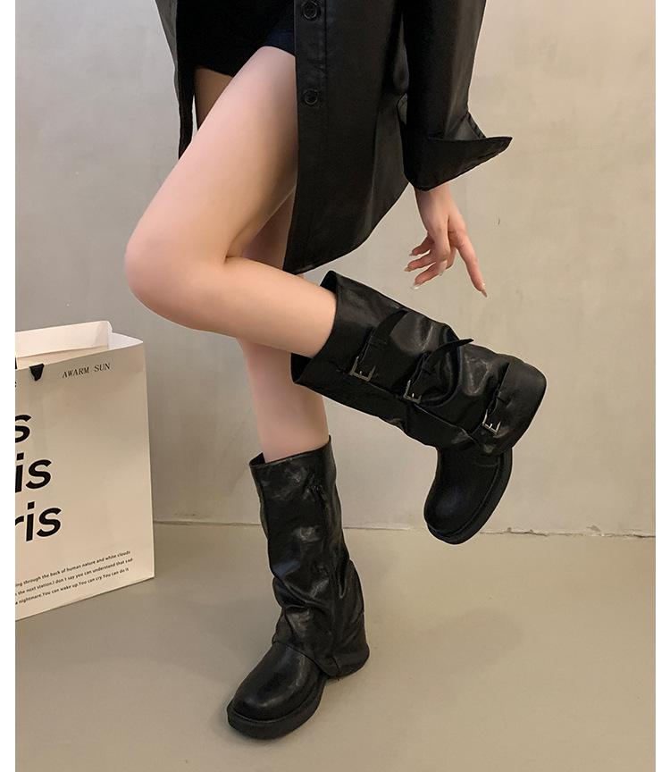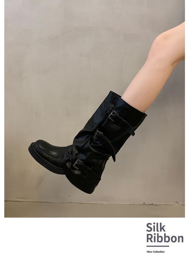 Botas de tacón medio alto estilo retro de nicho, botas vaqueras estilo western, botas de caballero, botas Martin de principios de otoño, botas francesas para mujer