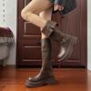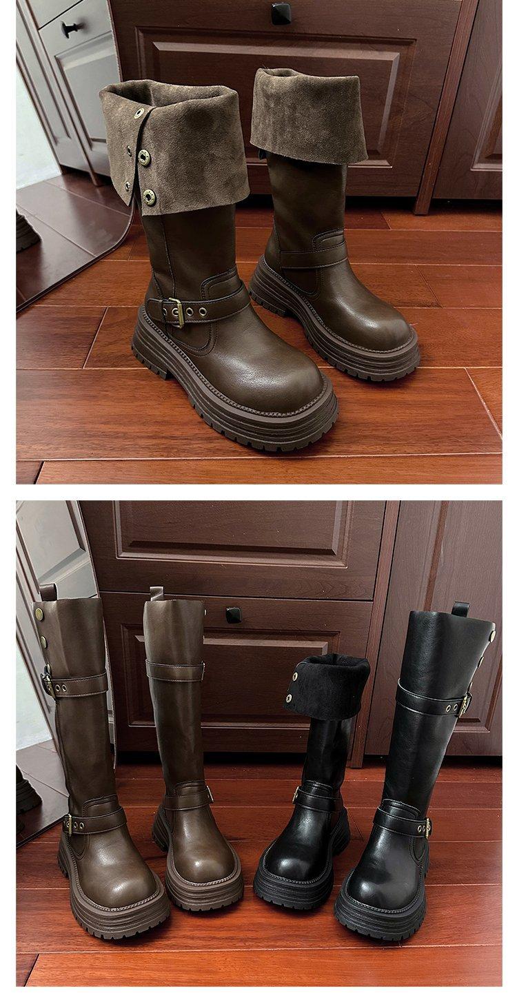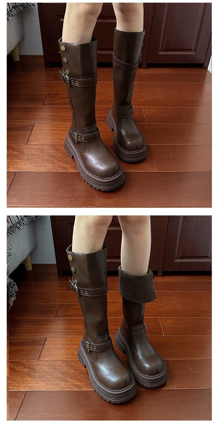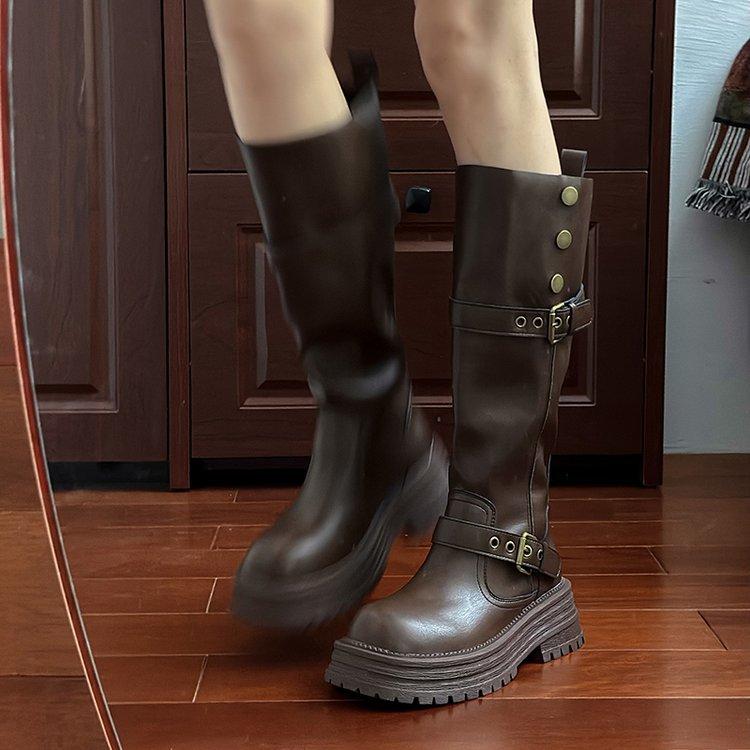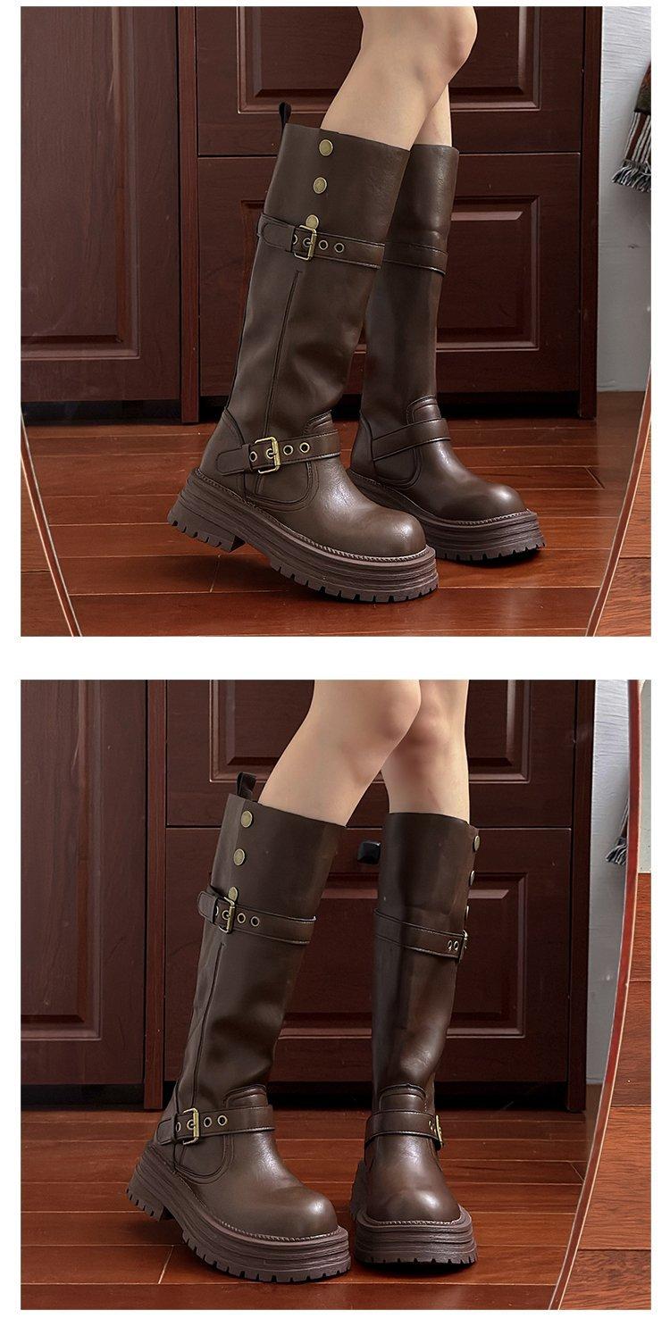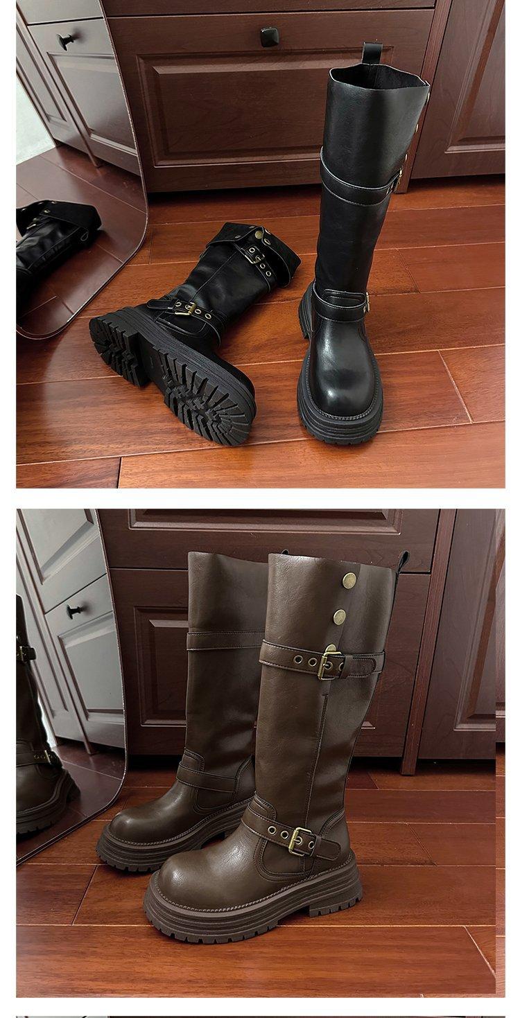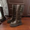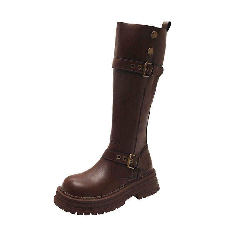 Botas de suela gruesa hasta la rodilla, estilo británico, botas de caballero con hebilla de cinturón, botas marrones Maillard