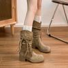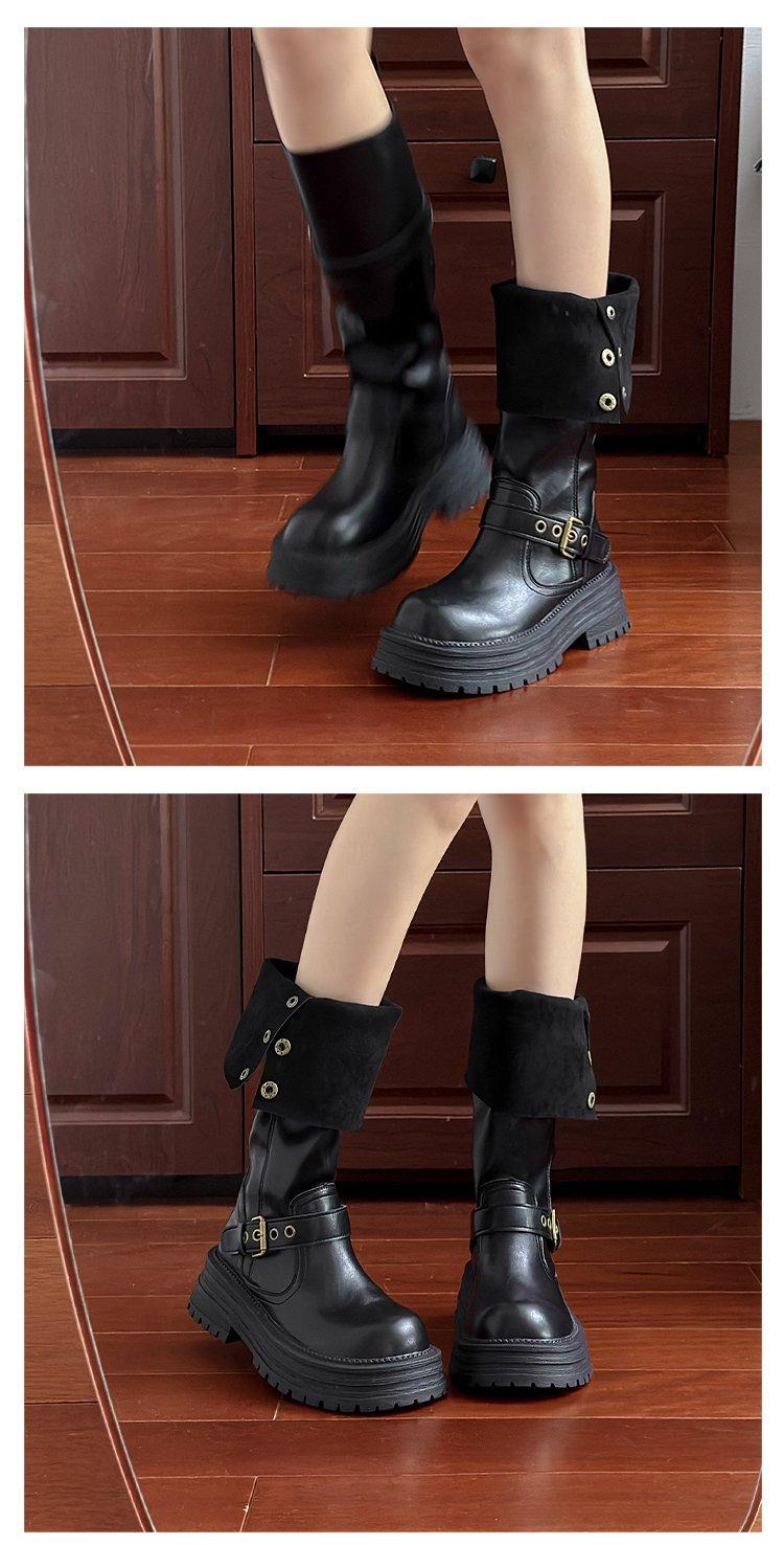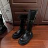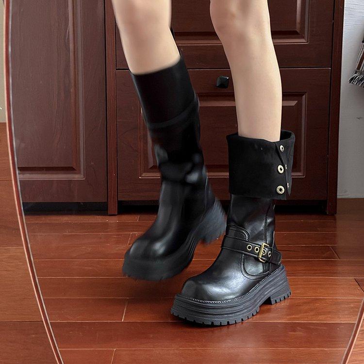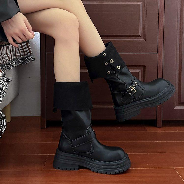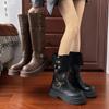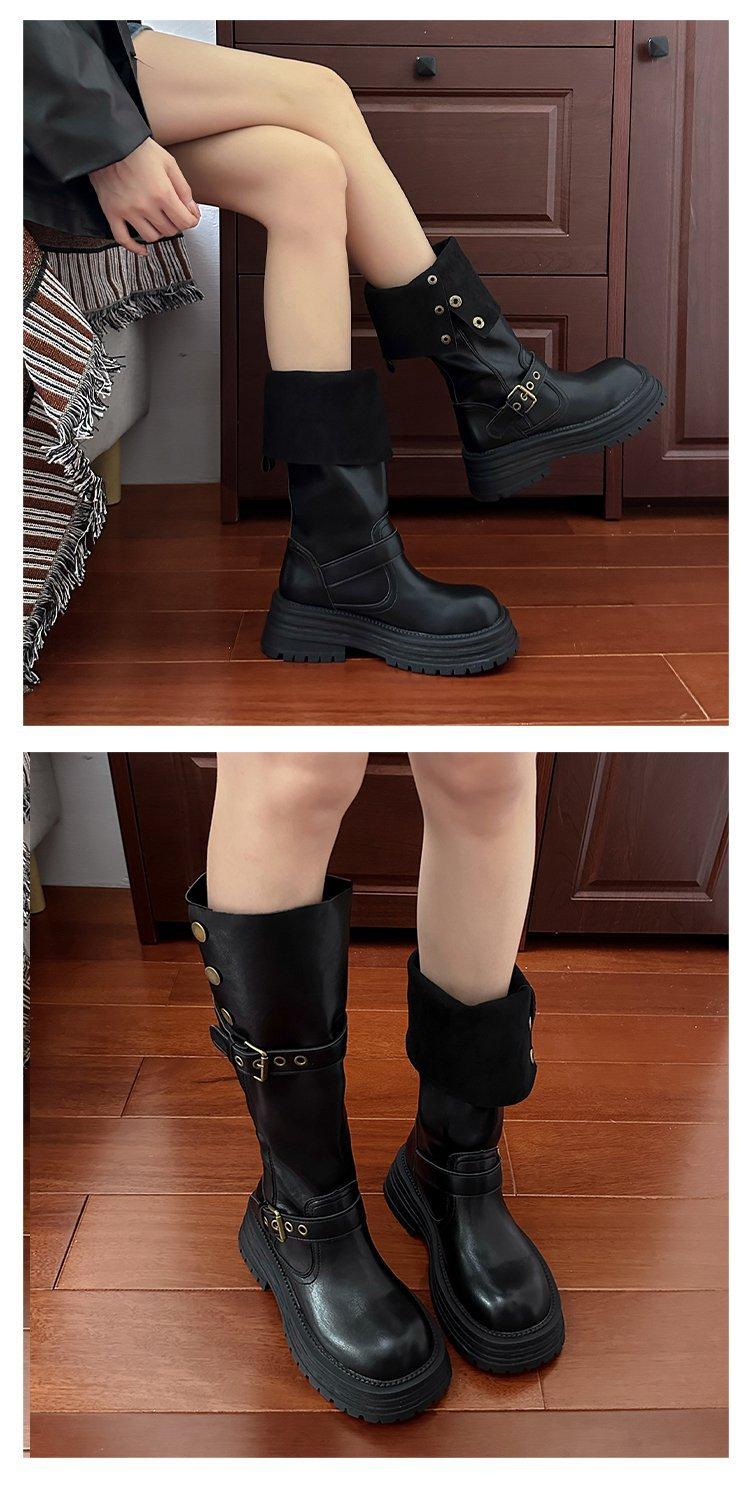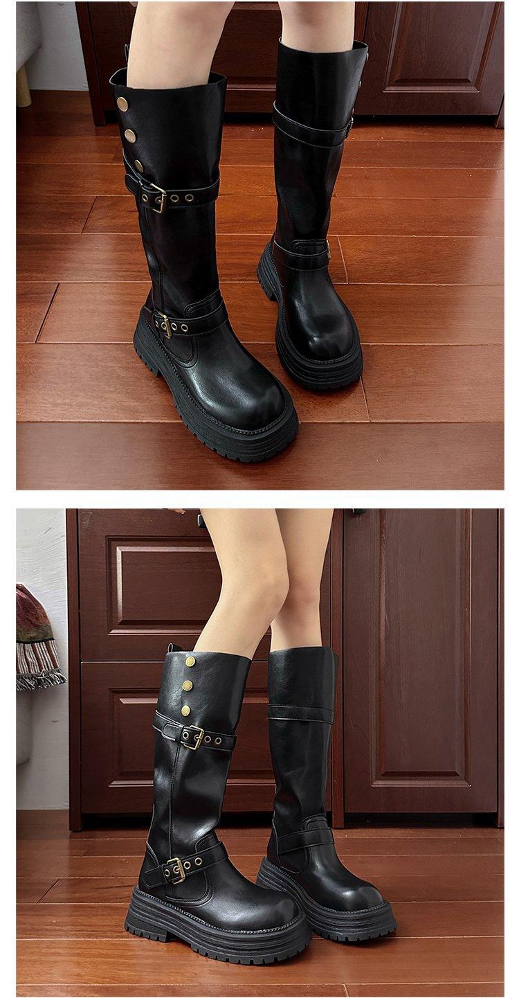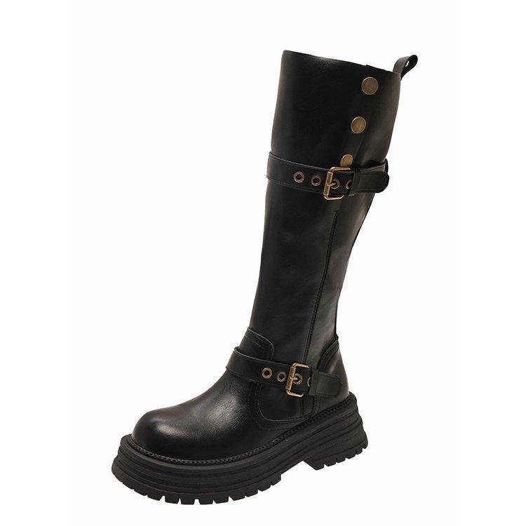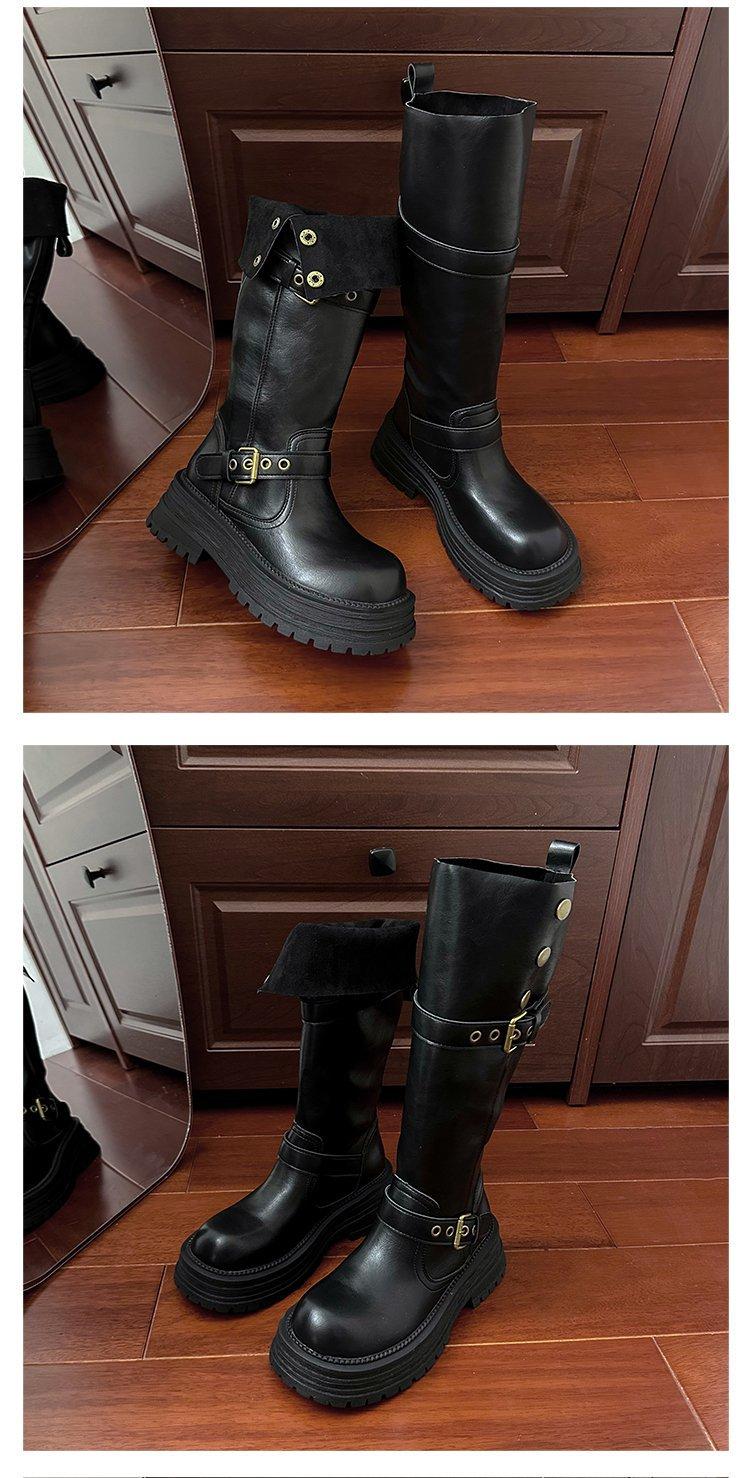 Botas de suela gruesa hasta la rodilla, estilo británico, botas de caballero con hebilla de cinturón, botas marrones Maillard