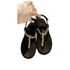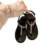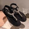Sandálias Romanas Rasteiras com Tiras de Strass Brilhantes para Mulheres Verão Férias Praia Chinelos para Mulheres