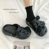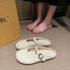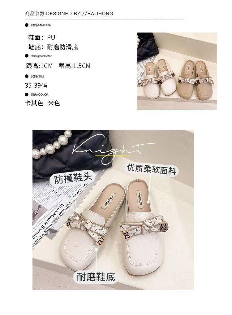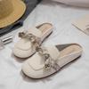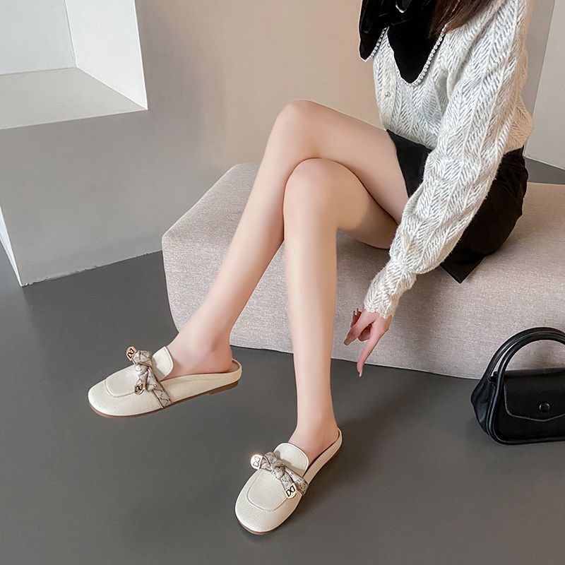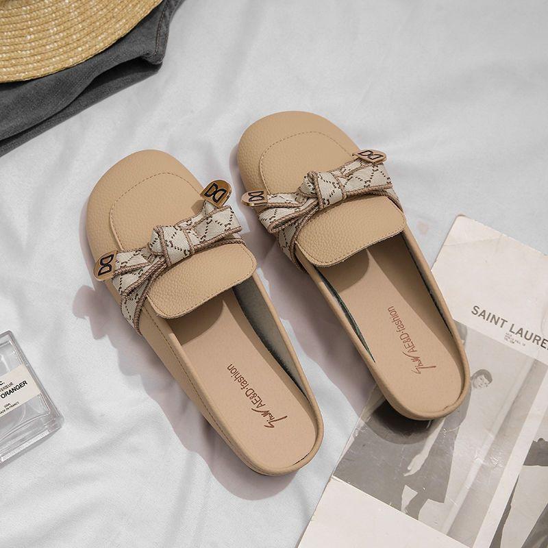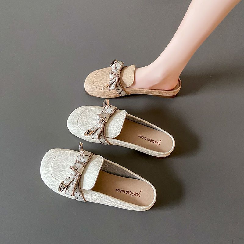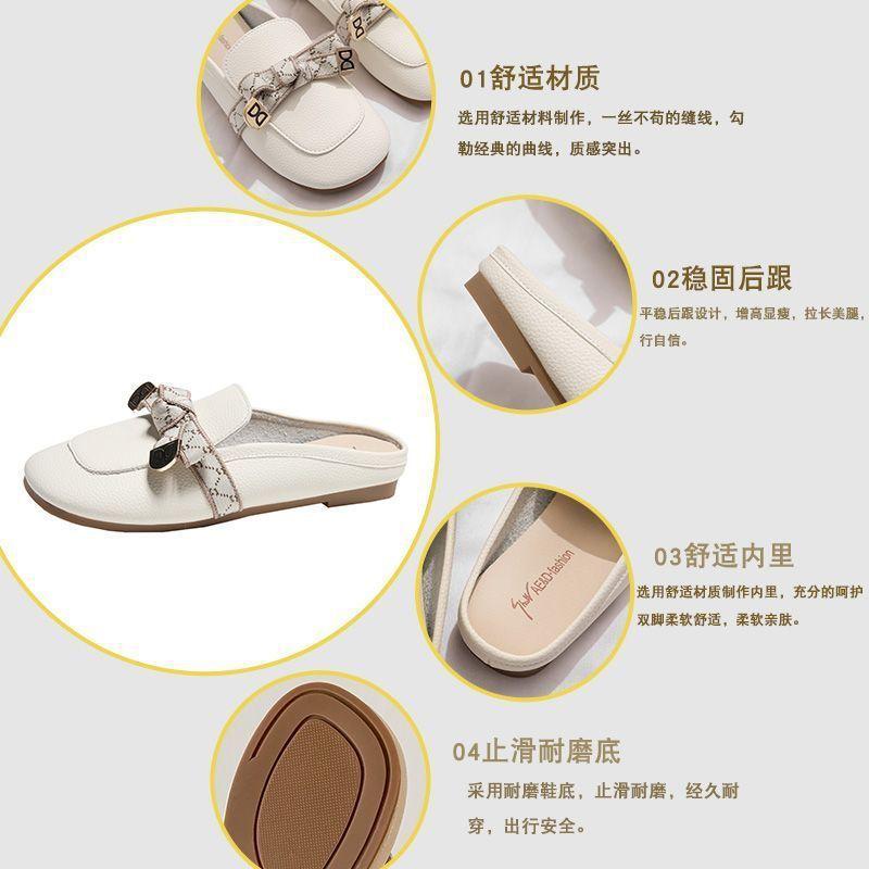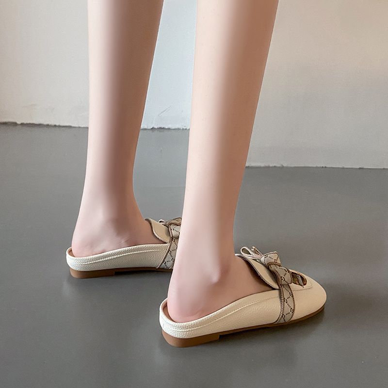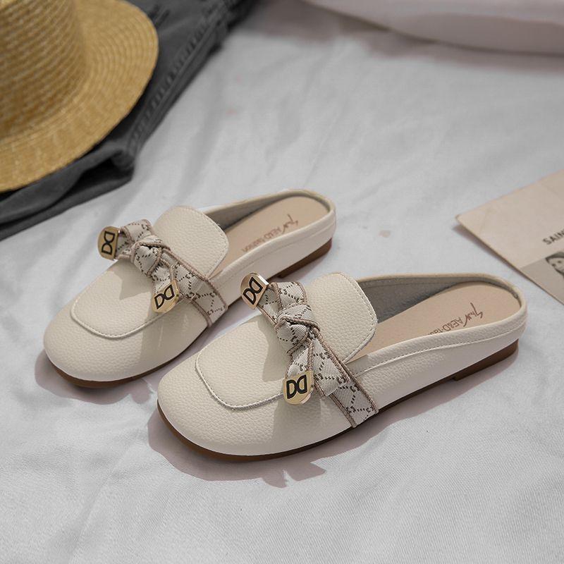 Pantuflas de punta cerrada para mujer, para primavera y verano, para exteriores, 2023, nuevas, planas, de moda, con lazo, tacón bajo, antideslizantes, sandalias casuales