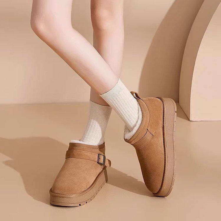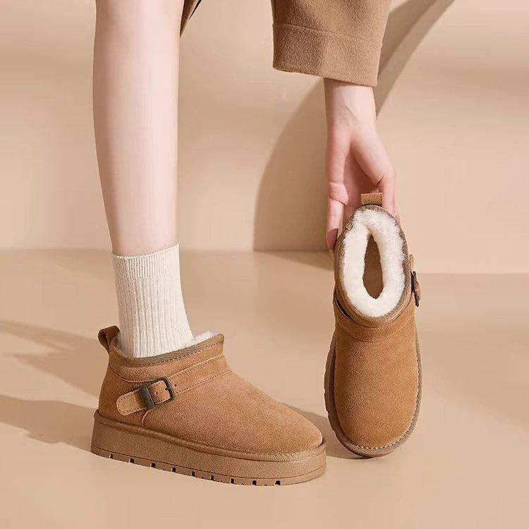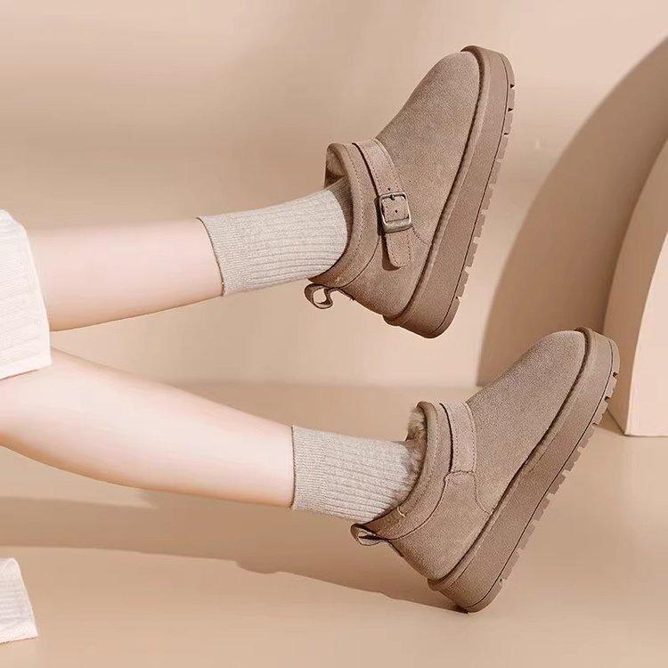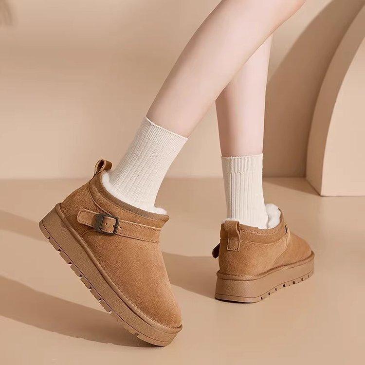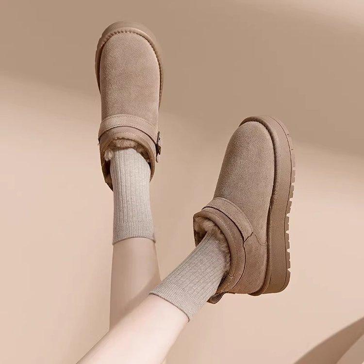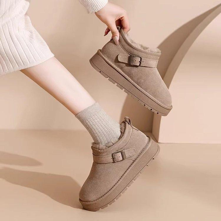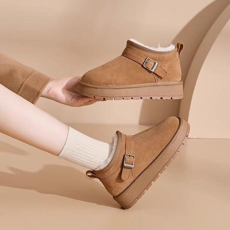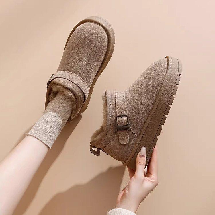 Botas de nieve de suela gruesa para mujer 2024 invierno nuevo impermeable tubo corto aumentadas zapatos de algodón cálidos forrados de vellón zapatos de pan