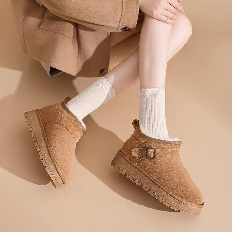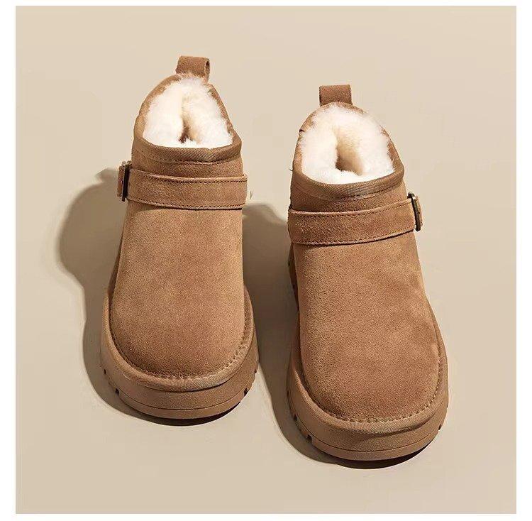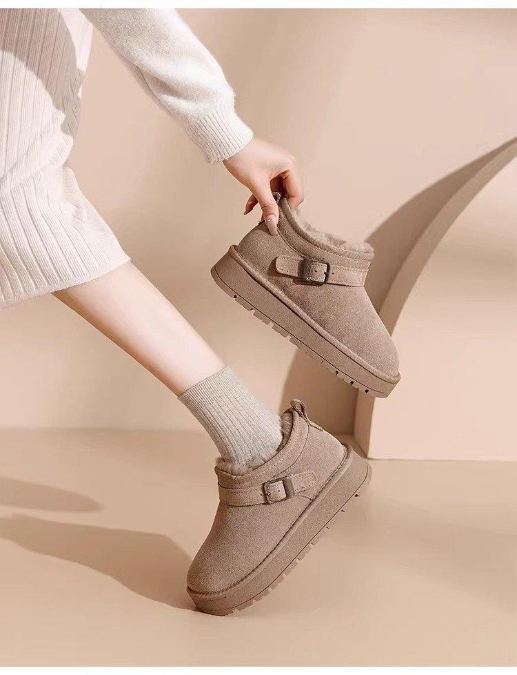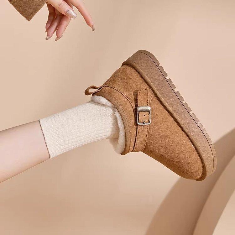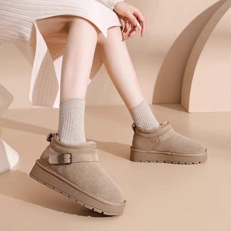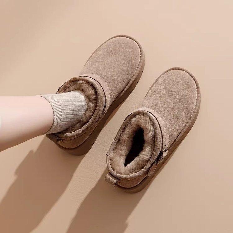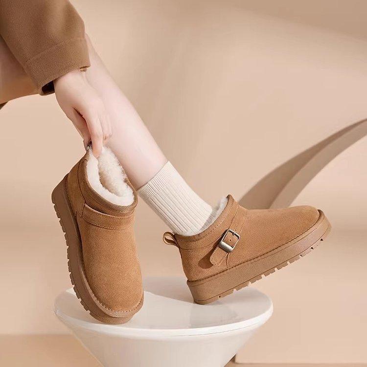 Botas de nieve de suela gruesa para mujer 2024 invierno nuevo impermeable tubo corto aumentadas zapatos de algodón cálidos forrados de vellón zapatos de pan