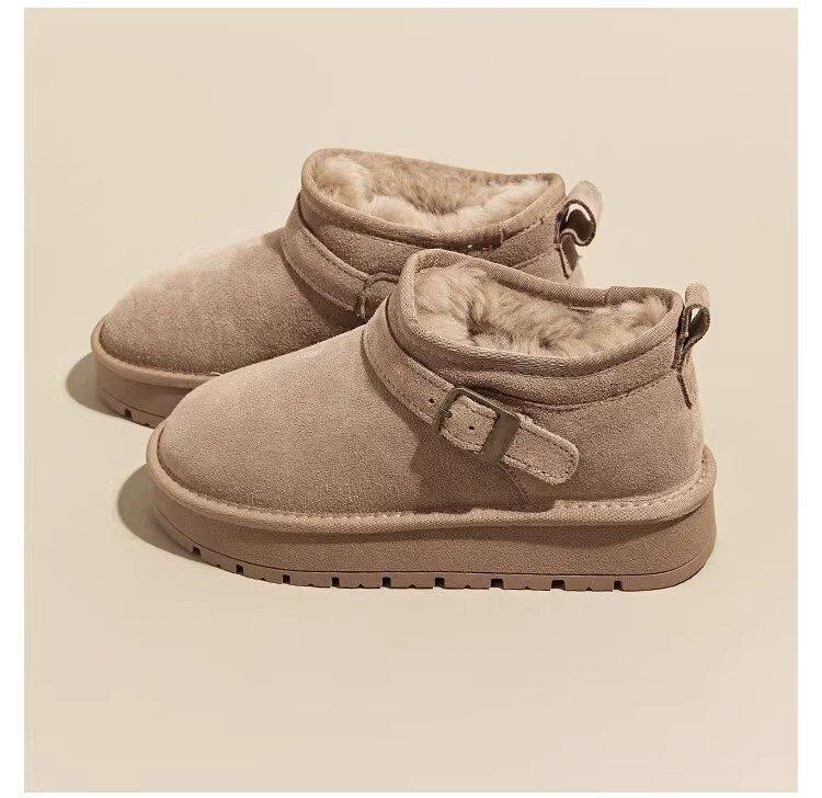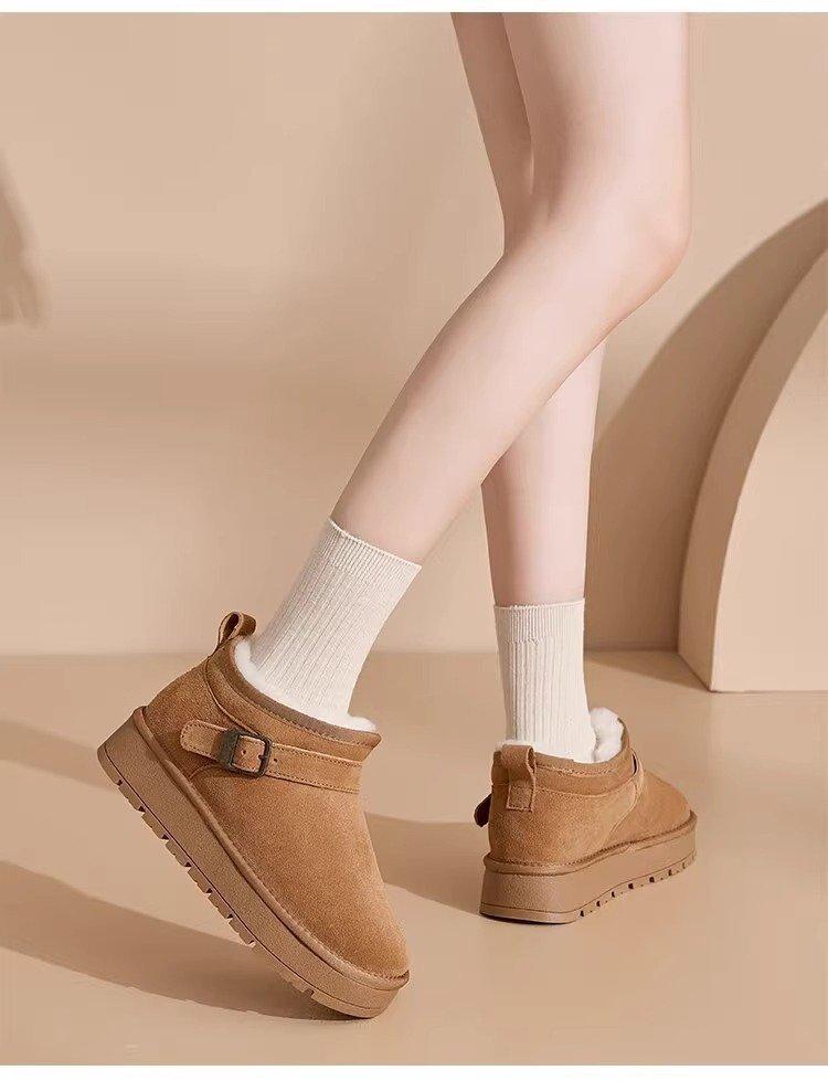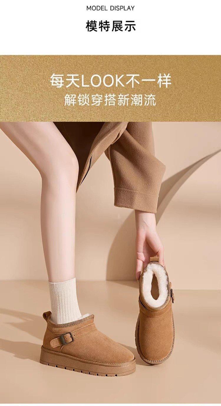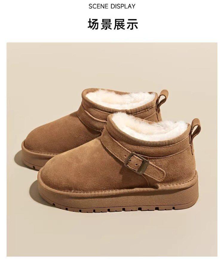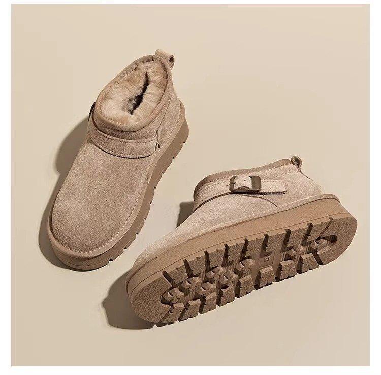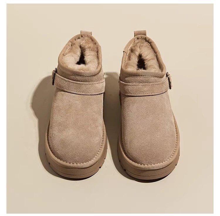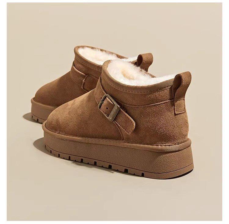 Botas de nieve de suela gruesa para mujer 2024 invierno nuevo impermeable tubo corto aumentadas zapatos de algodón cálidos forrados de vellón zapatos de pan