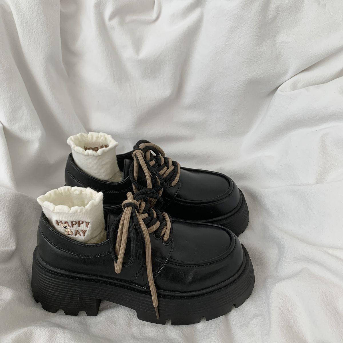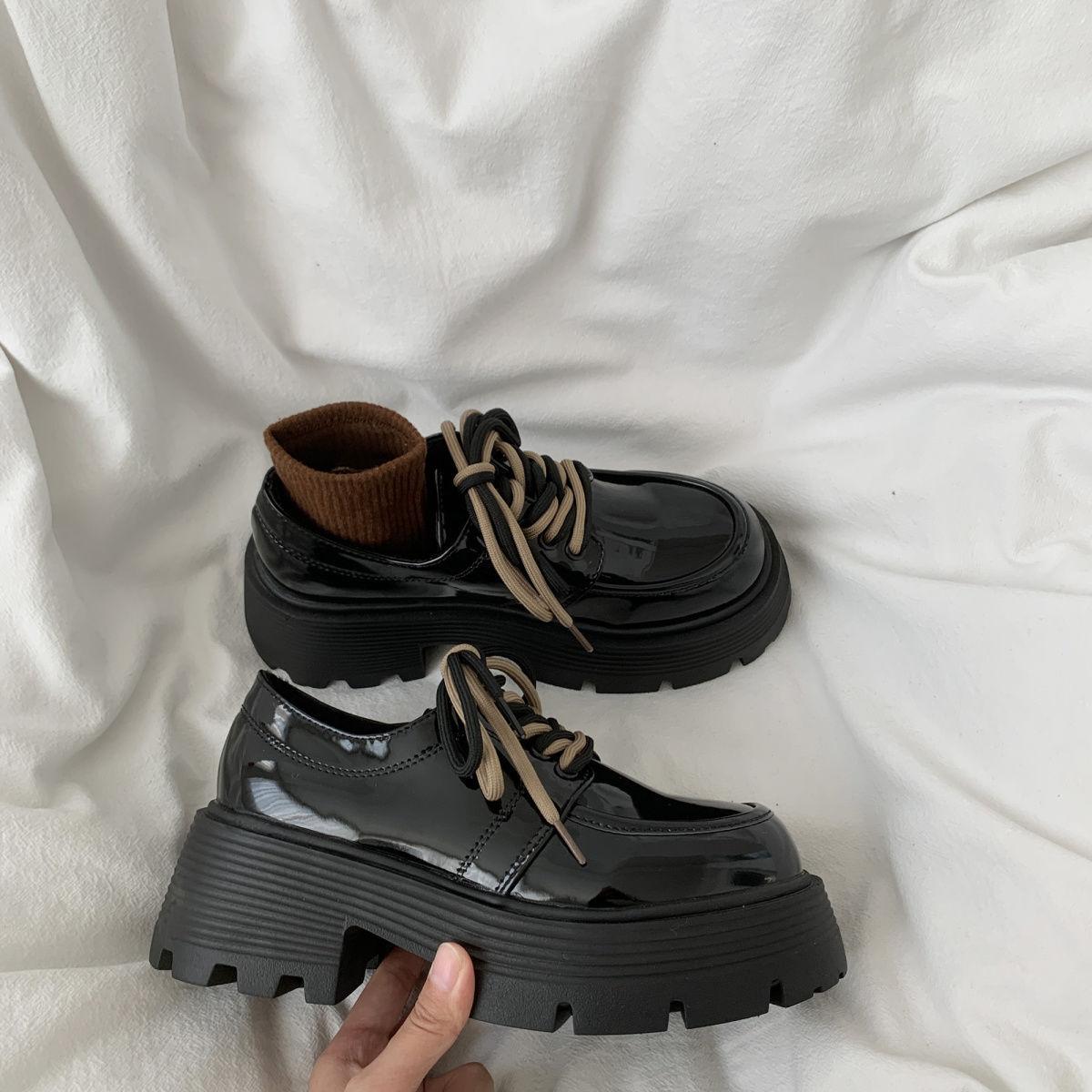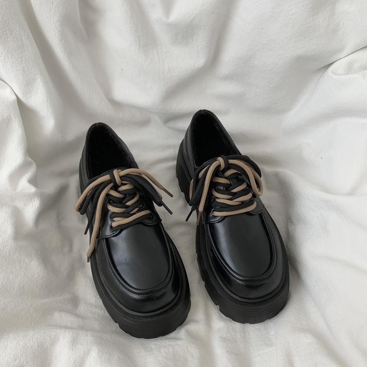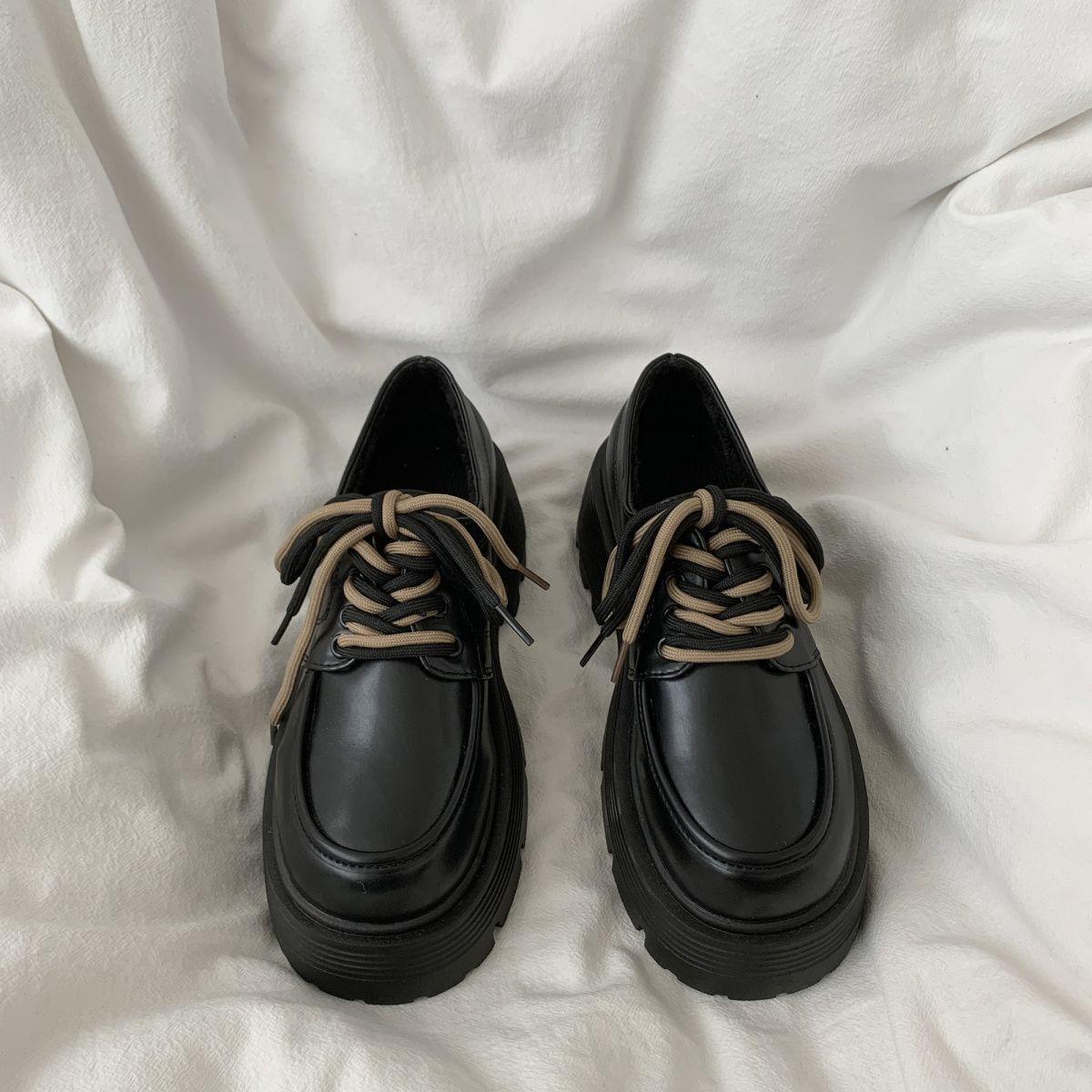 Zapatos negros pequeños de cuero con cordones y suela gruesa para mujer, otoño 2023, nuevos, estilo retro británico a juego.