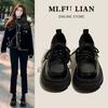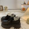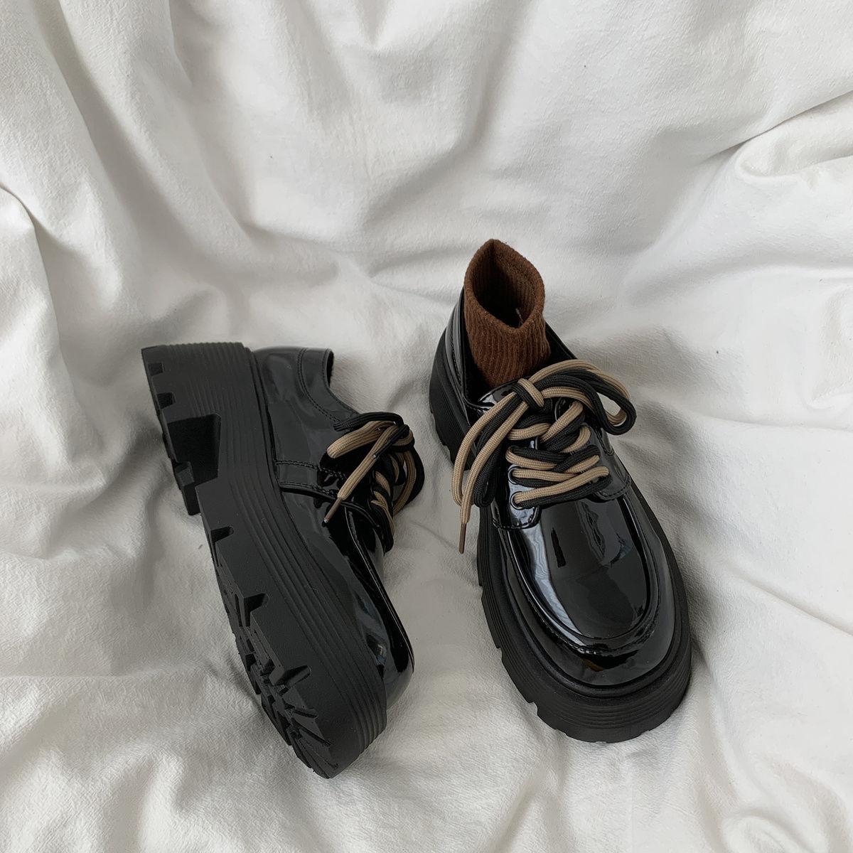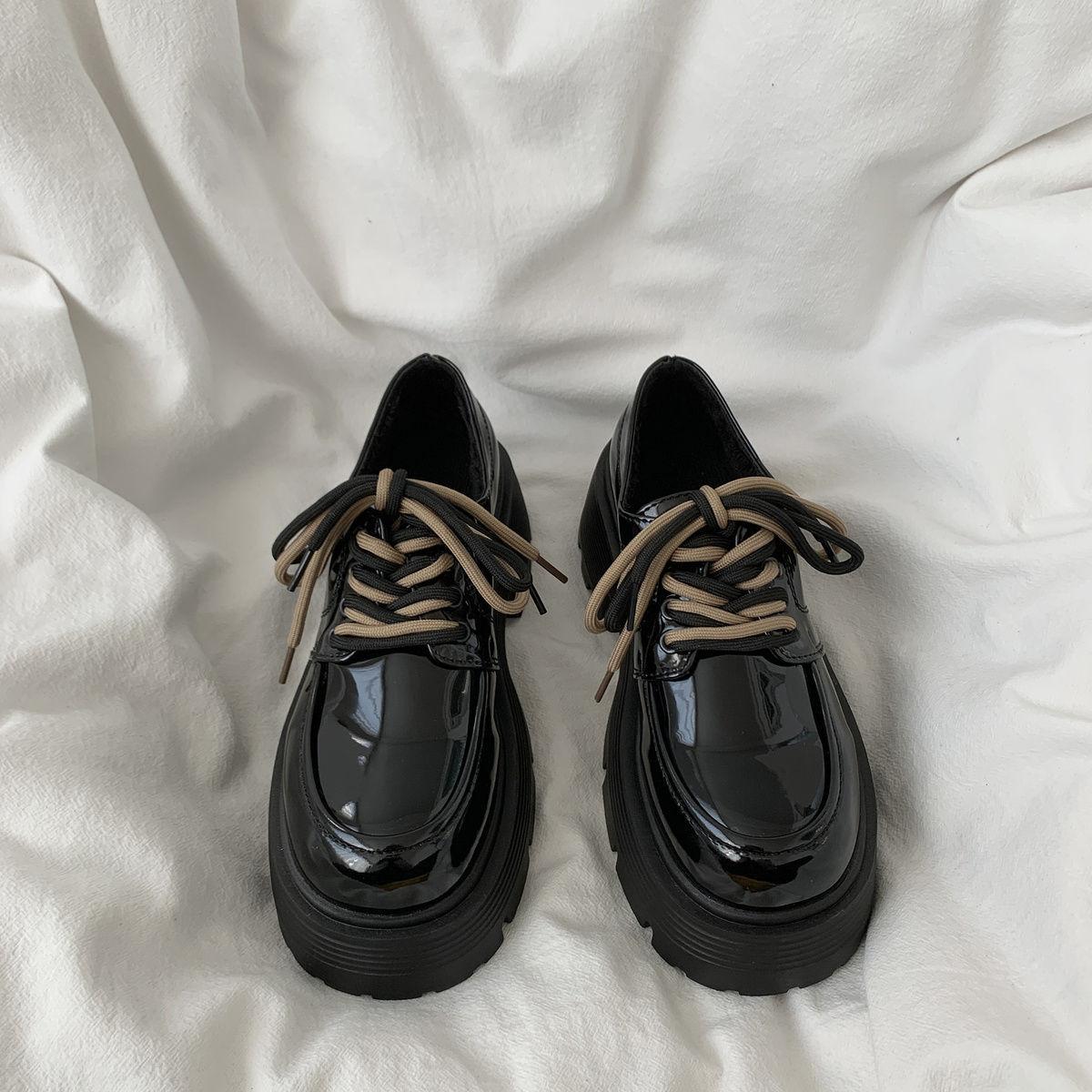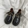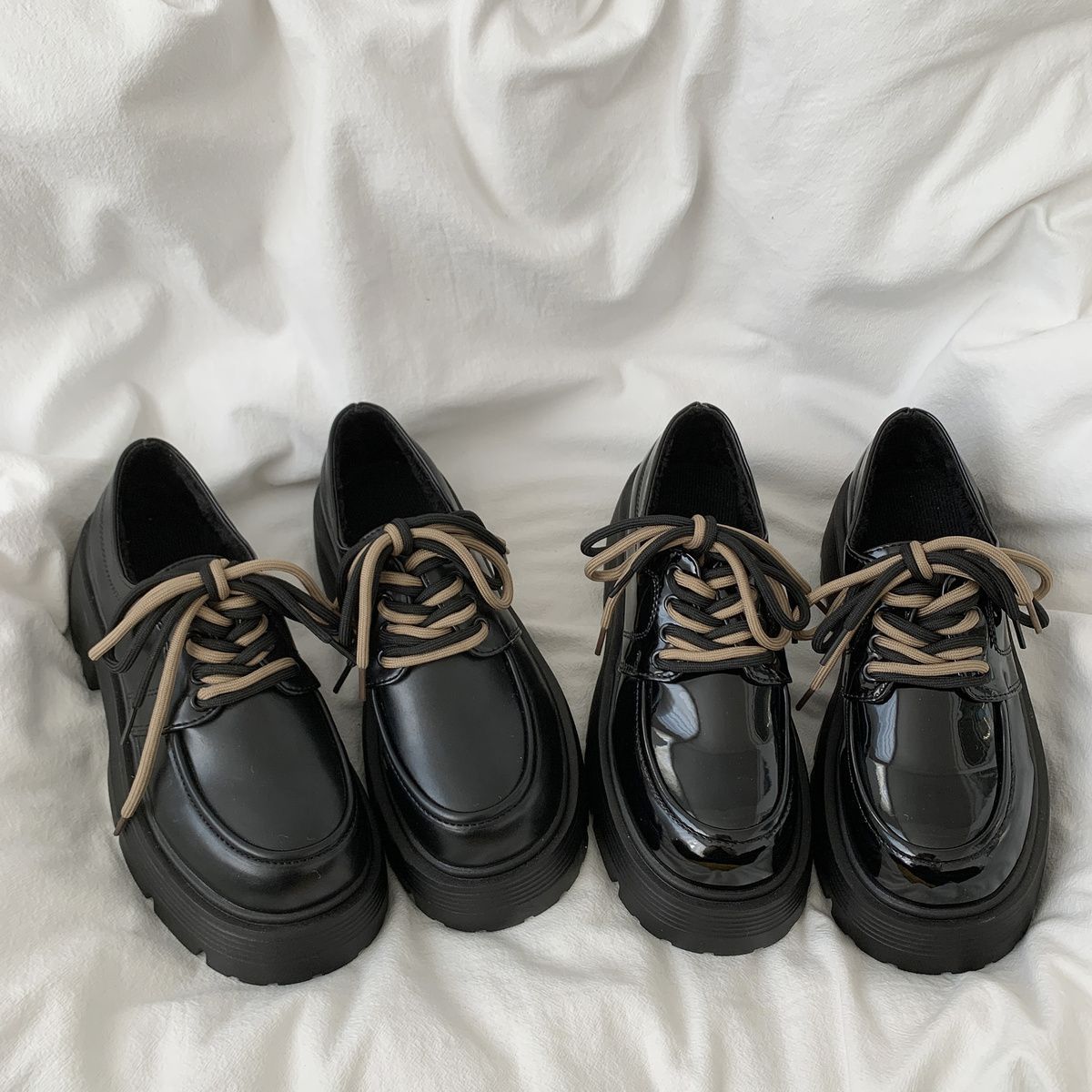 Zapatos negros pequeños de cuero con cordones y suela gruesa para mujer, otoño 2023, nuevos, estilo retro británico a juego.
