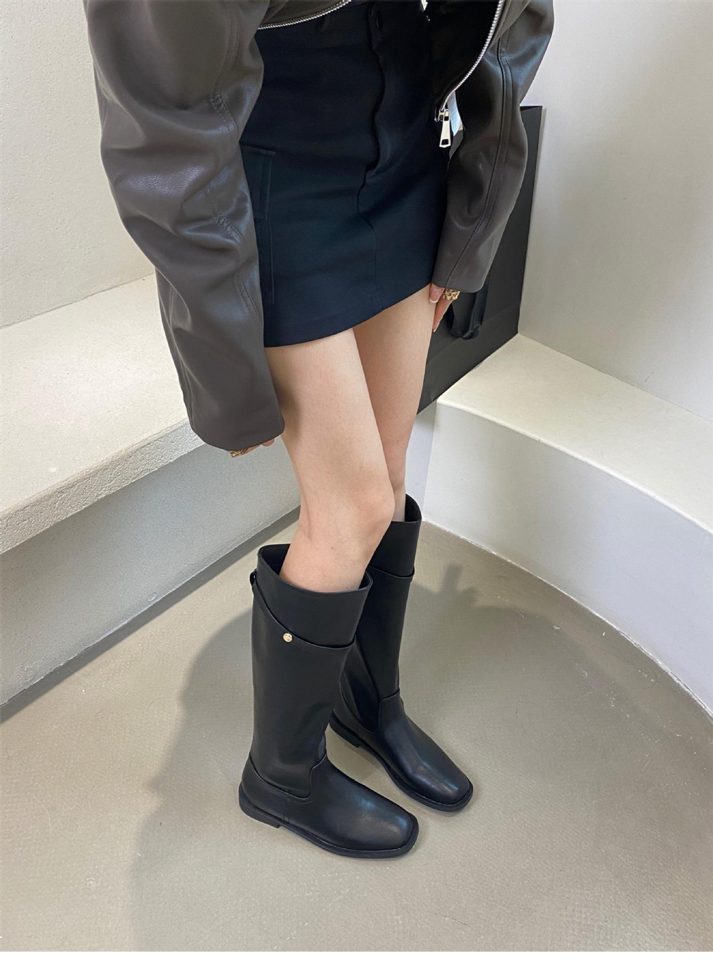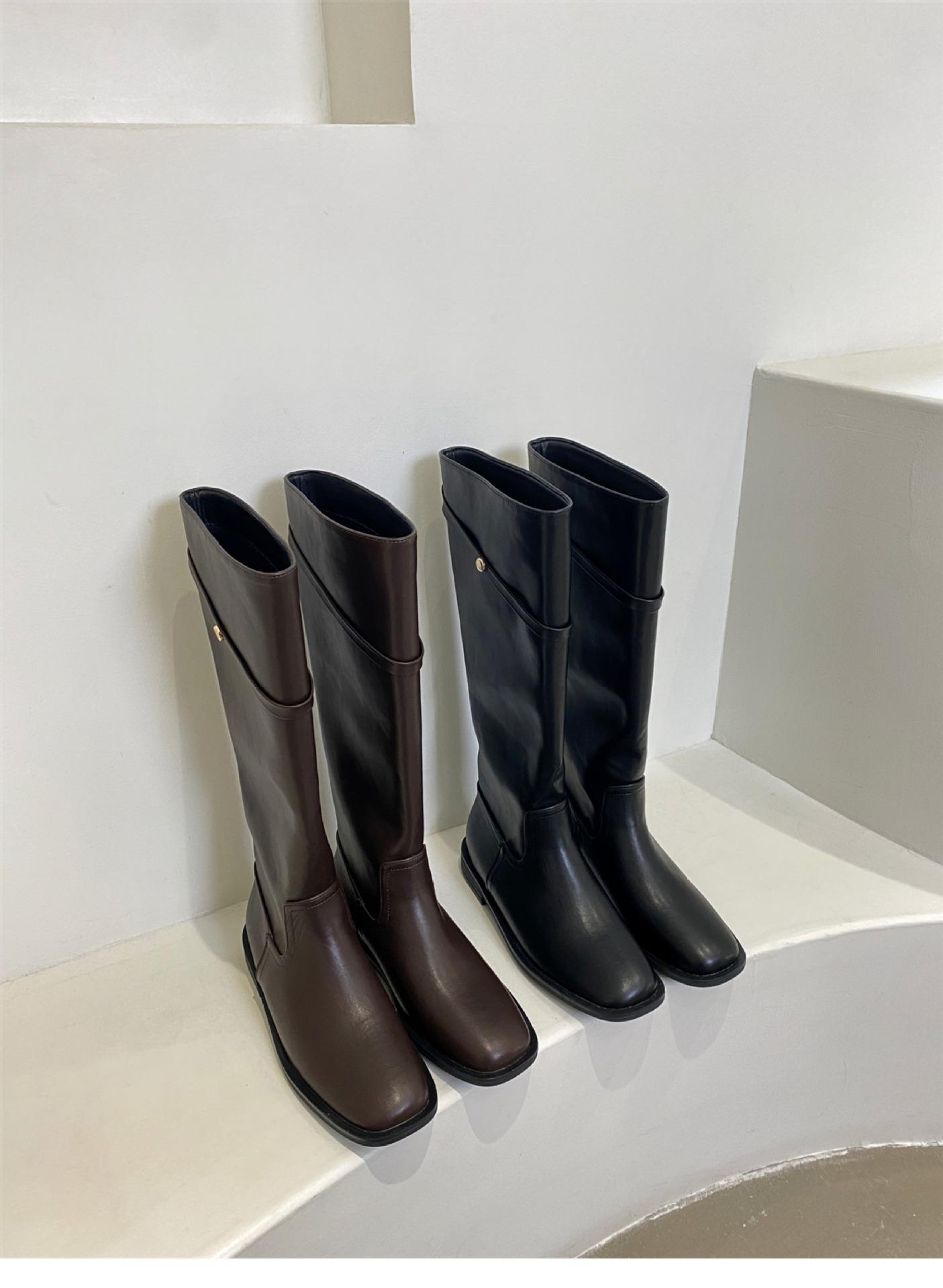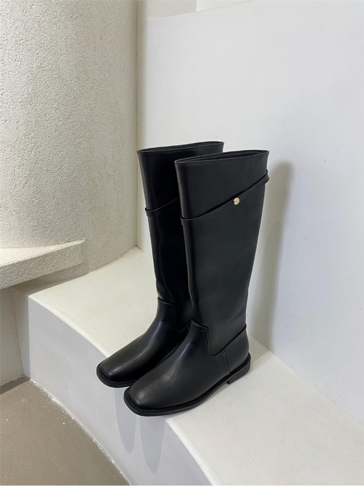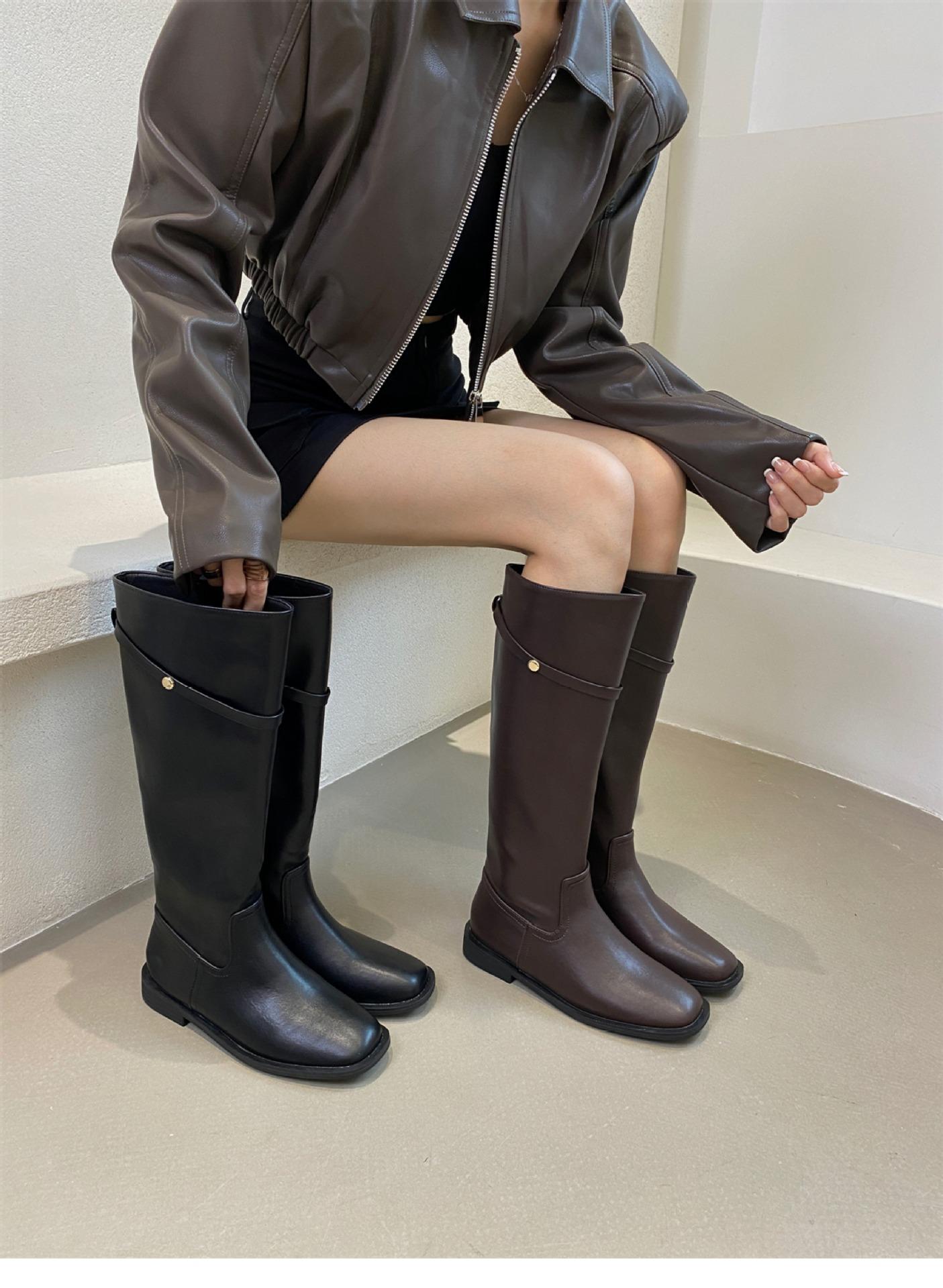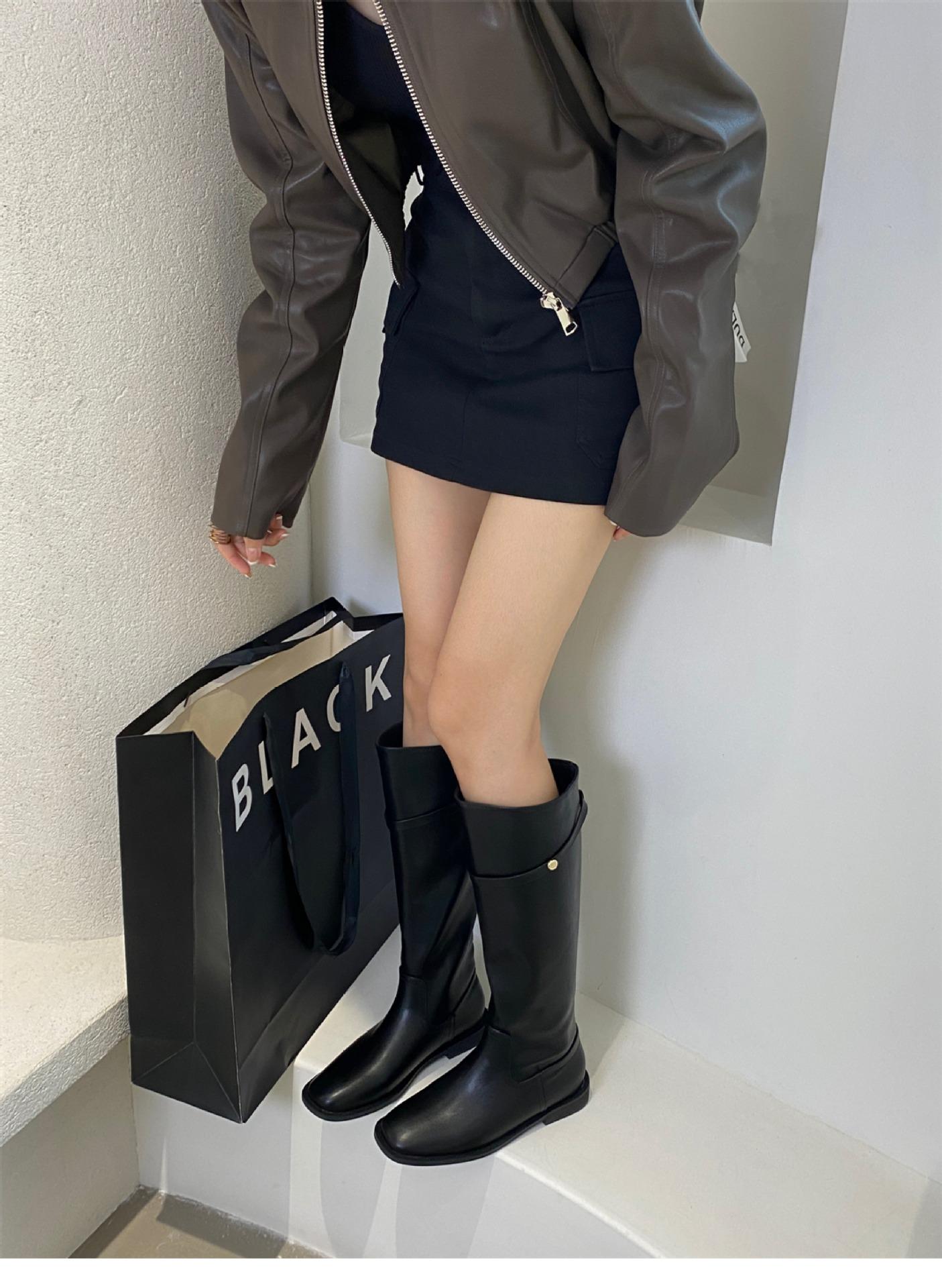 Botas Planas Slim de Caña Alta para Mujer, 2025 Nuevo Otoño e Invierno Negras de Pierna Recta por Encima de la Rodilla Botas Largas