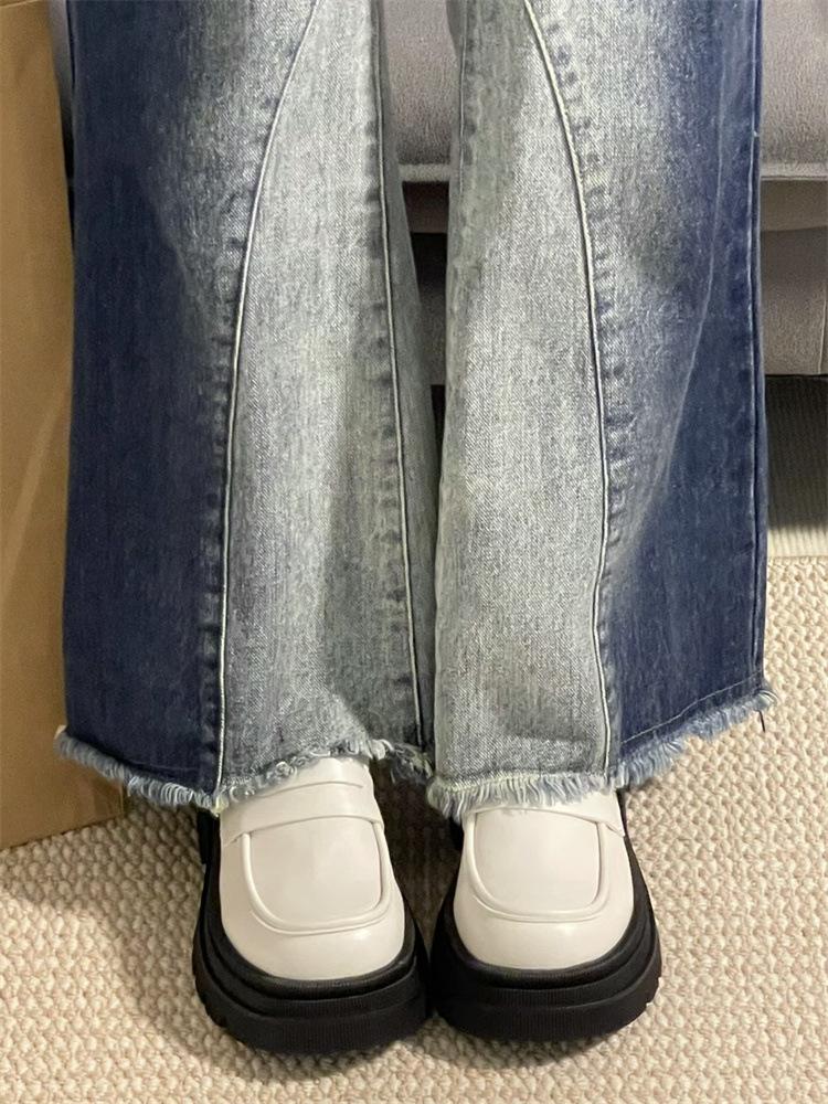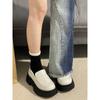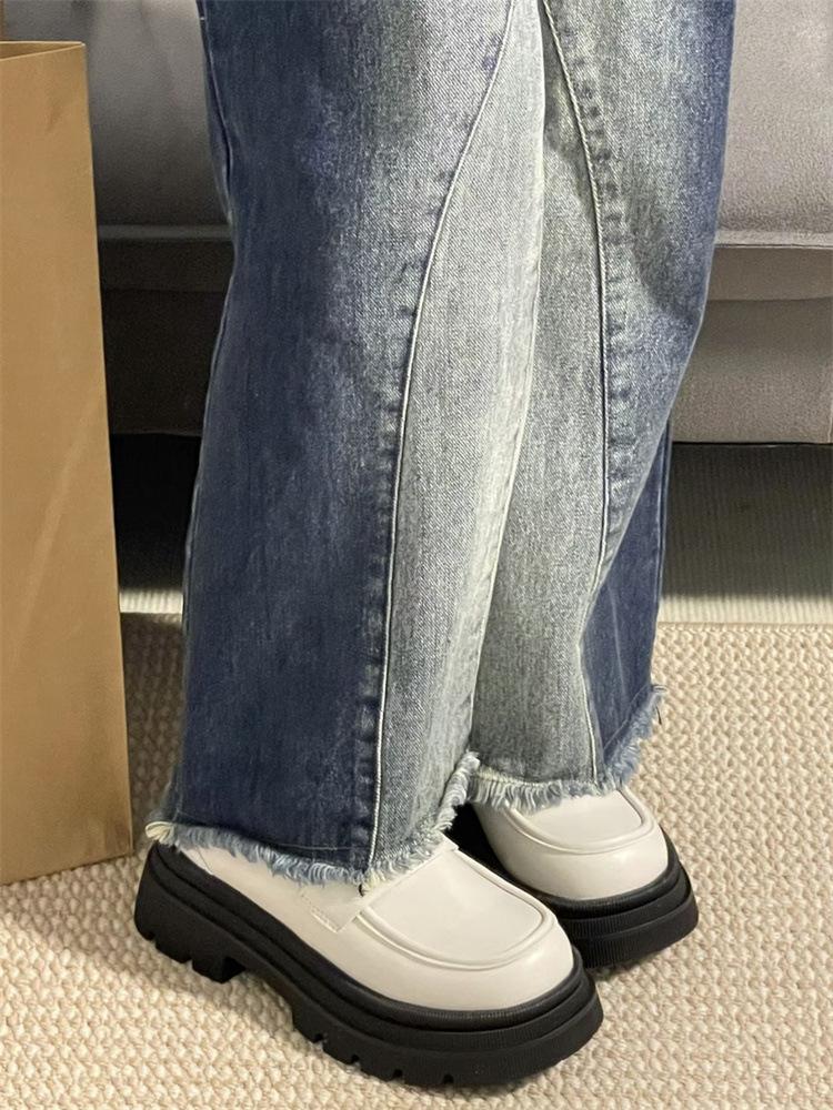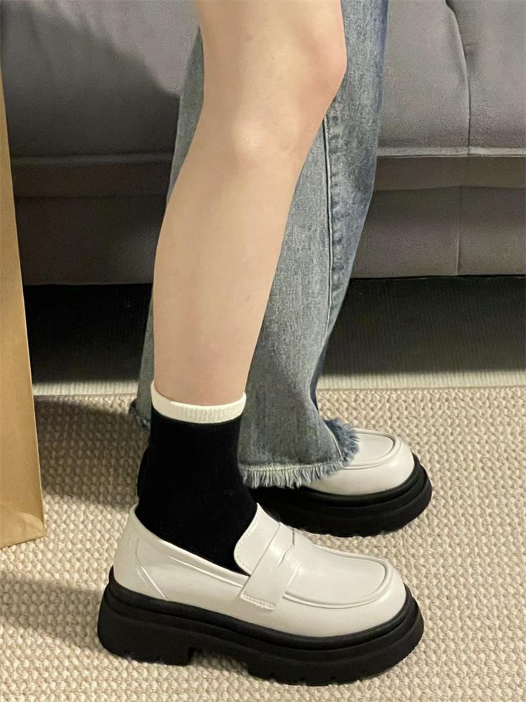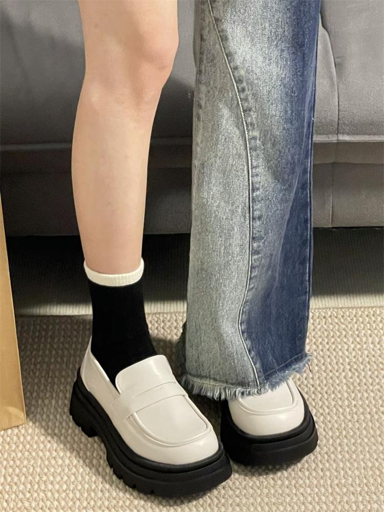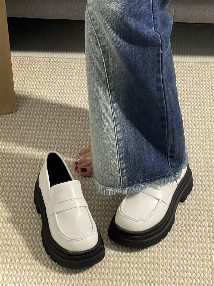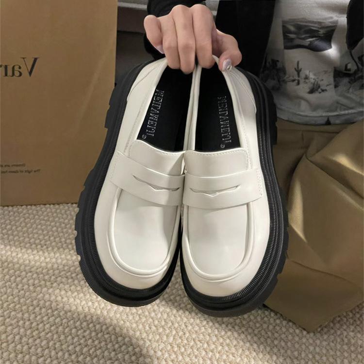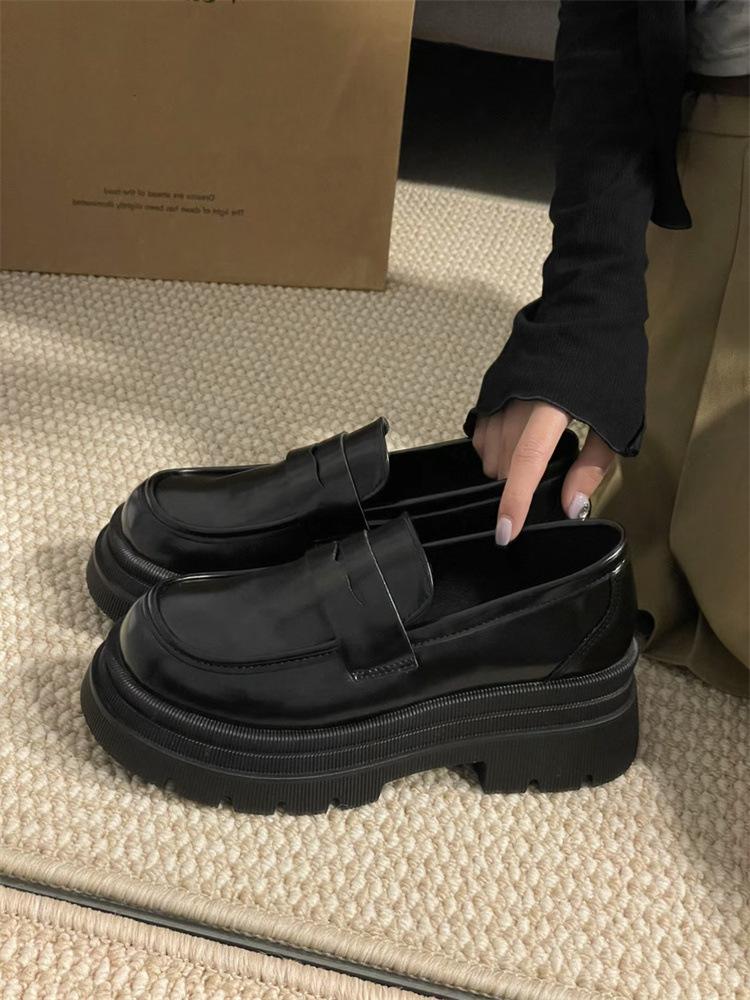Zapatos pequeños de cuero estilo británico para mujer, primavera nuevos, combinan con todo, retro, plataforma para aumentar la altura, zapatos de una sola capa, mocasines sin cordones