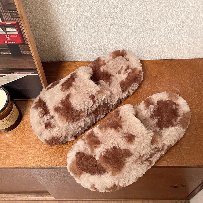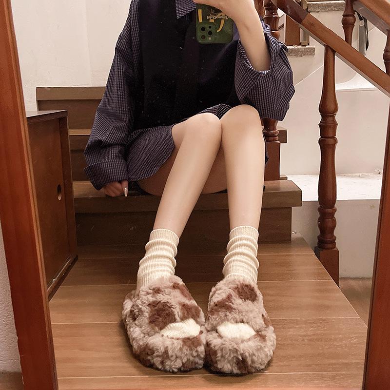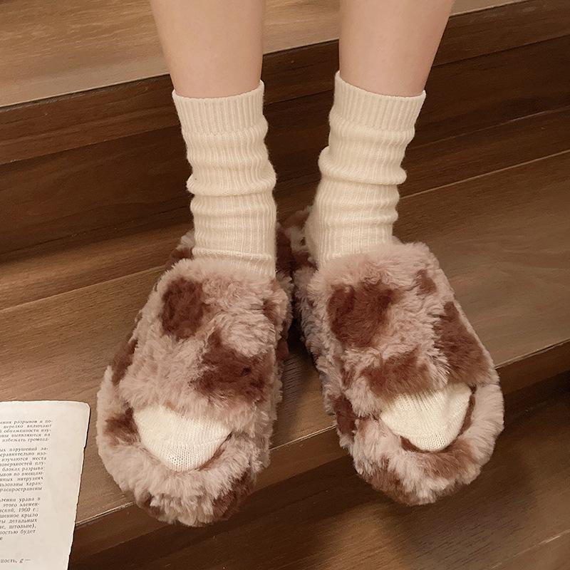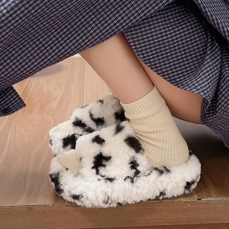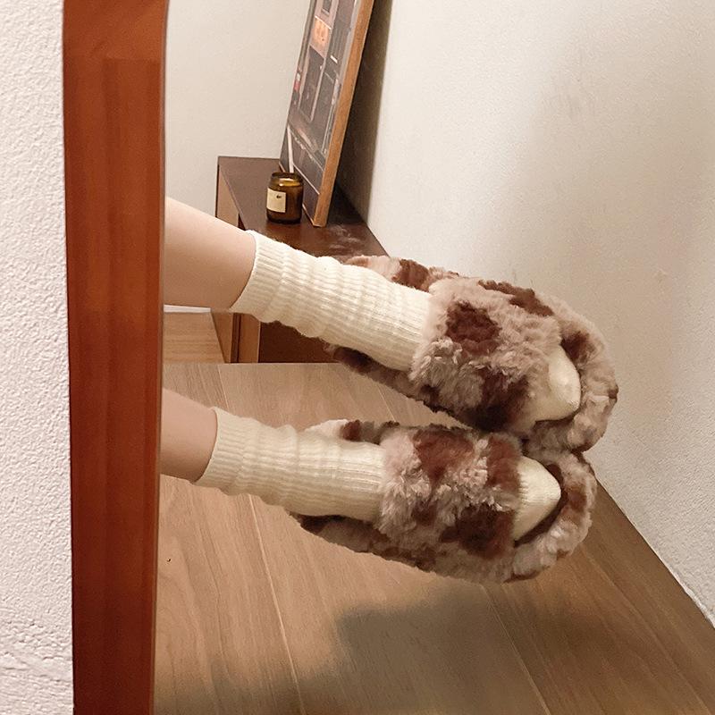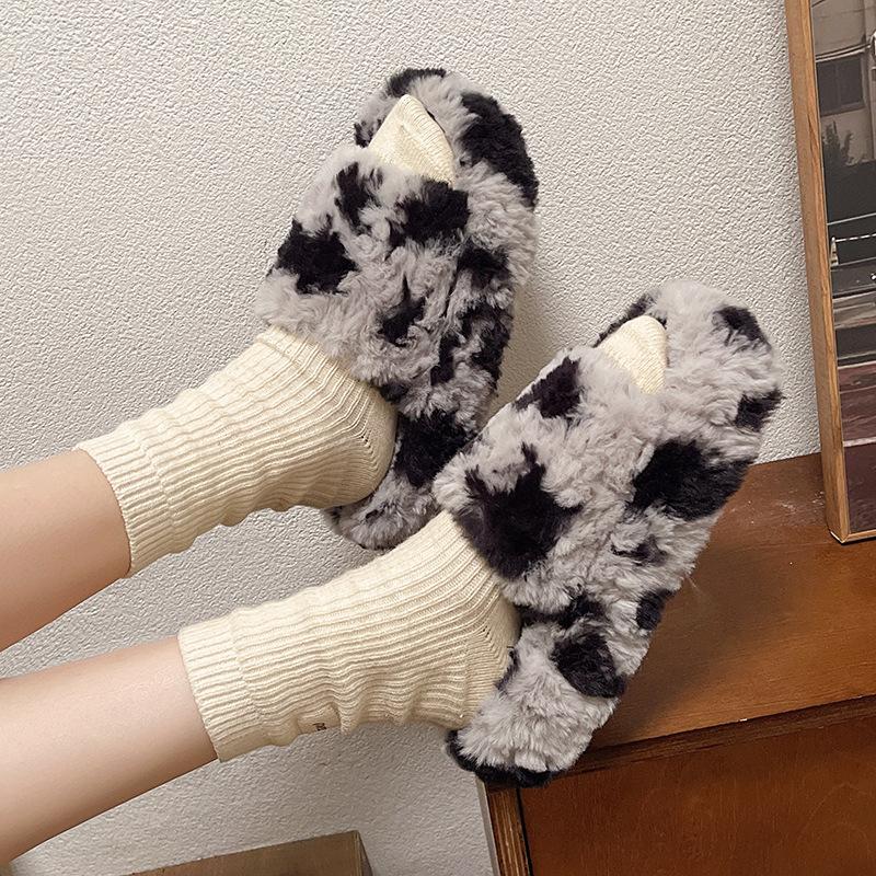 Cómodas zapatillas Mao Mao de suela blanda, cálidas, para mujer, otoño e invierno 2024, nuevas zapatillas de algodón antideslizantes de suela gruesa para interiores y hogares.