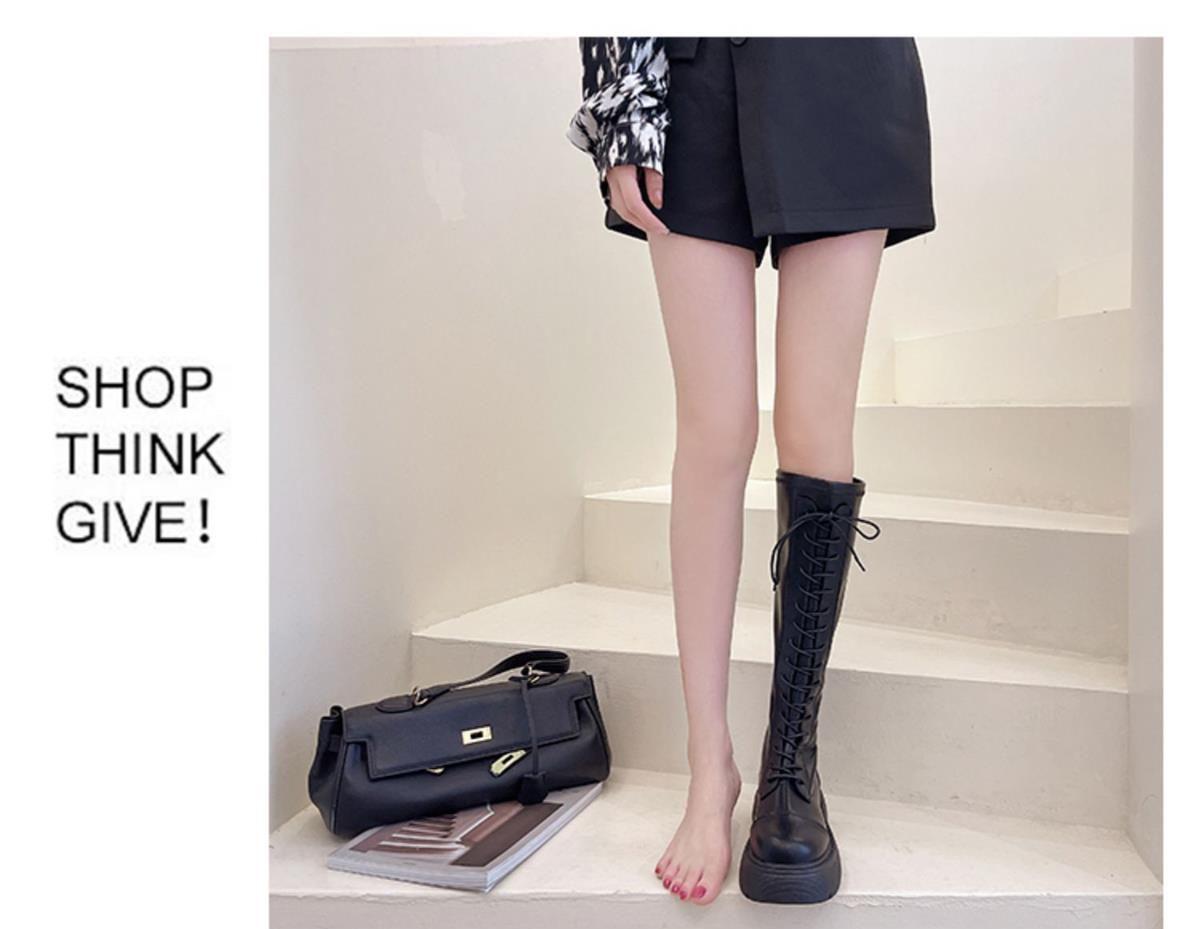 Botas Largas con Tiras para Mujer Otoño e Invierno 2024 Nuevo Estilo Sobre la Rodilla de Suela Gruesa Botas Altas para Caballeros Pequeños y Delgados