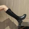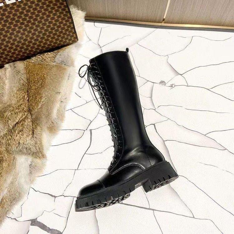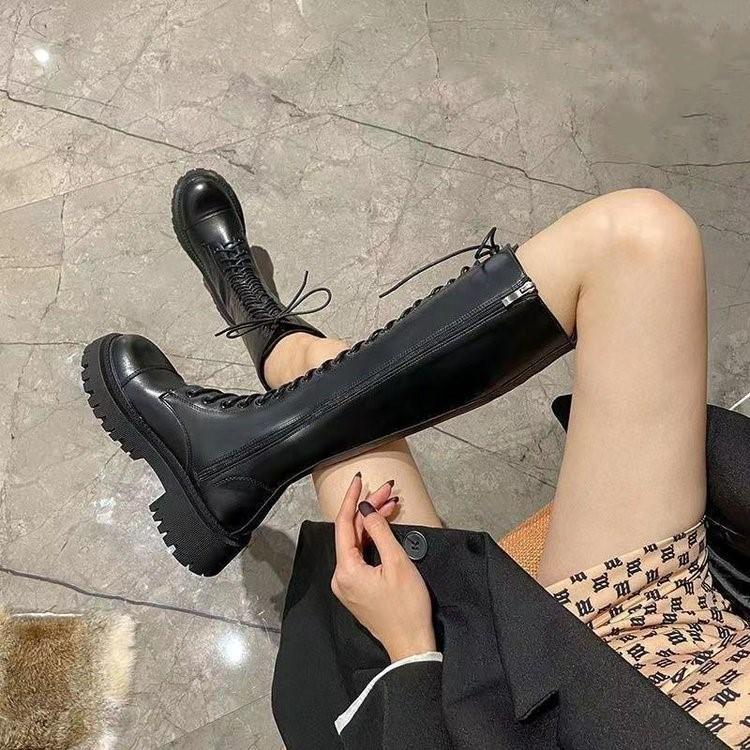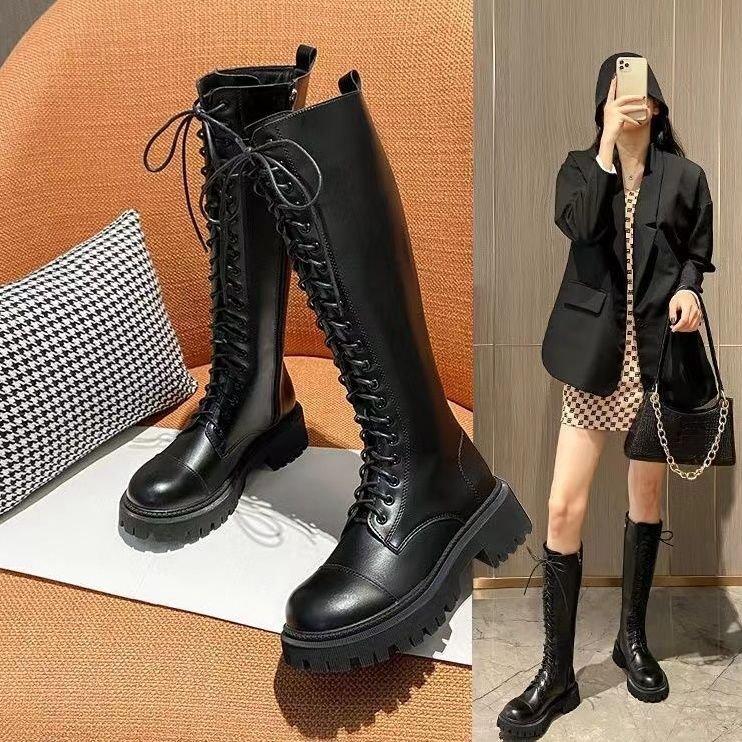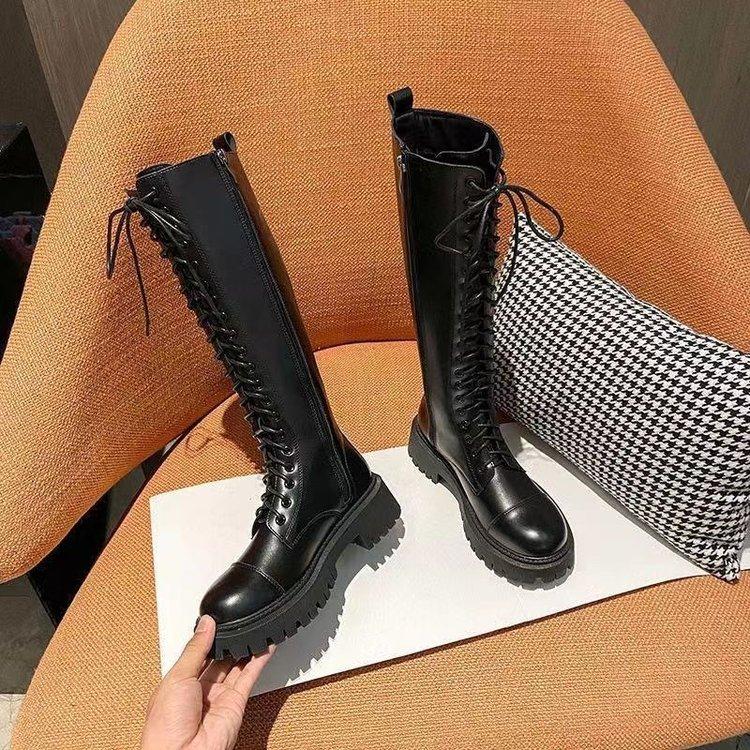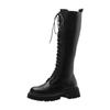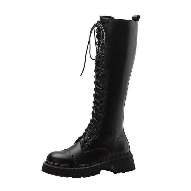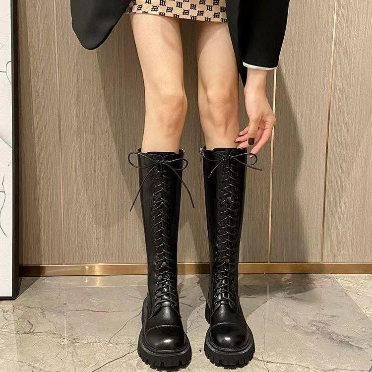 Botas de caballero de suela gruesa para otoño e invierno de 2024, botas de mujer de estilo británico, botas altas con cabeza grande y cordones hasta la rodilla.