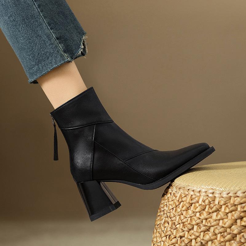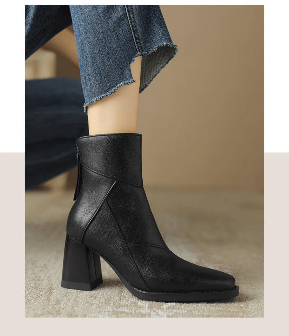Botas cortas de tacón grueso para mujer, novedad de 2024, botas finas marrones de tacón alto para invierno, botas retro de estilo británico.