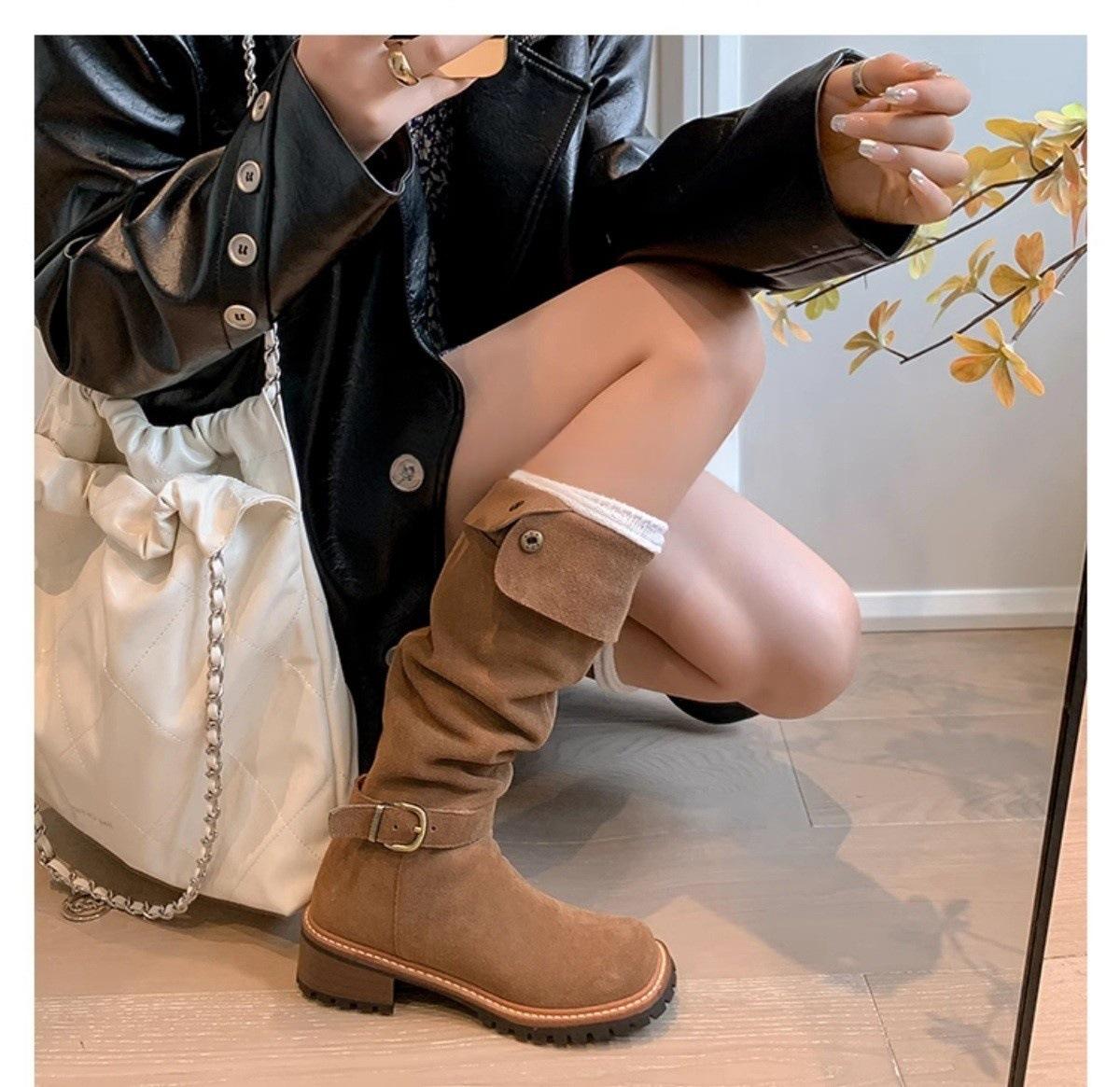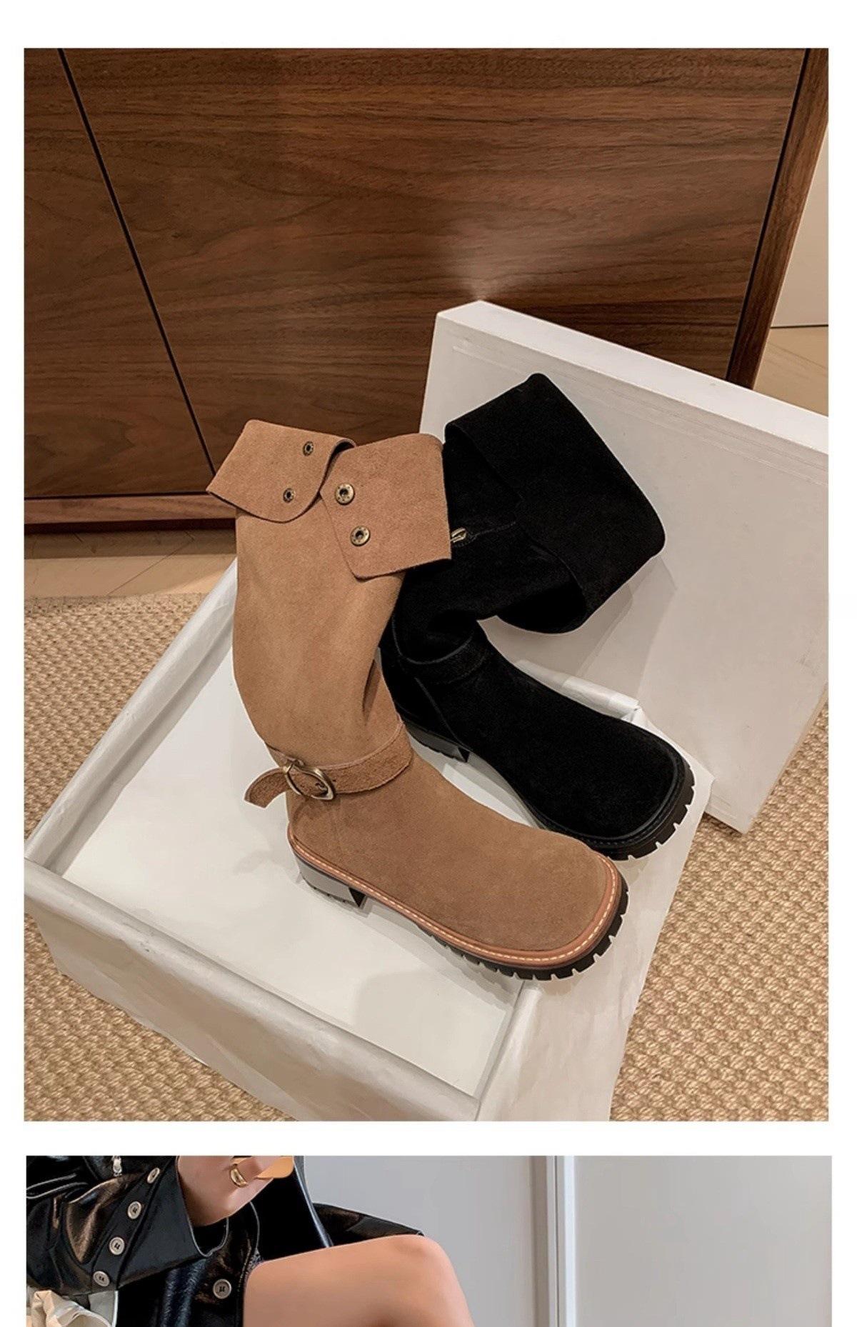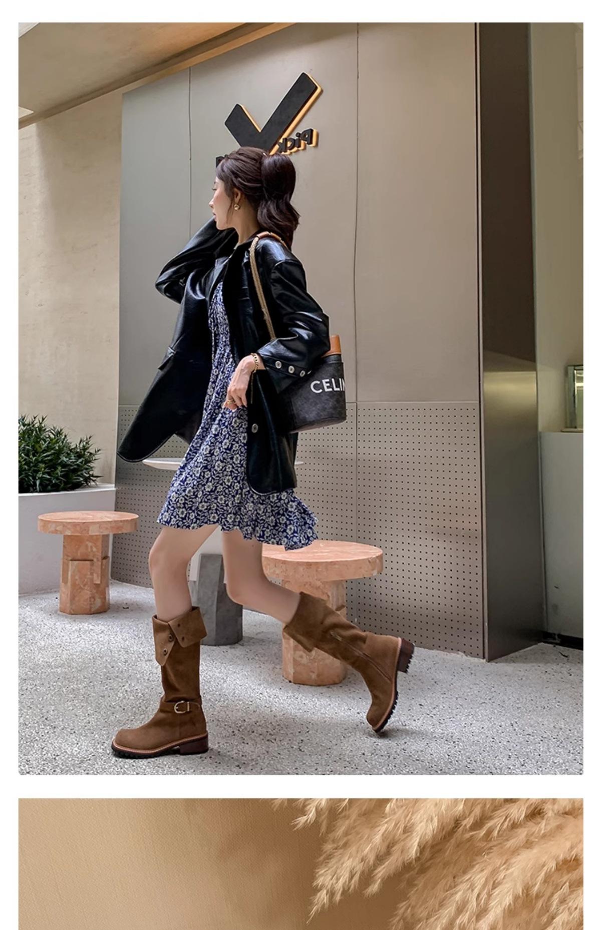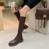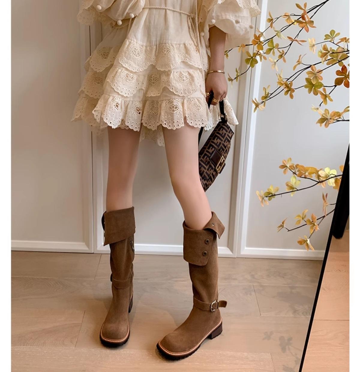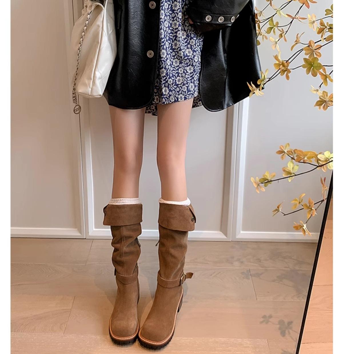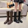 Botas largas marrones para mujer, botas de plataforma que combinan con todo, botas altas esmeriladas, botas de caballero nuevas de 2024, botas pequeñas.