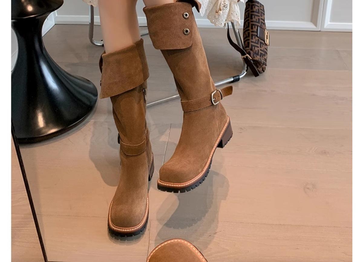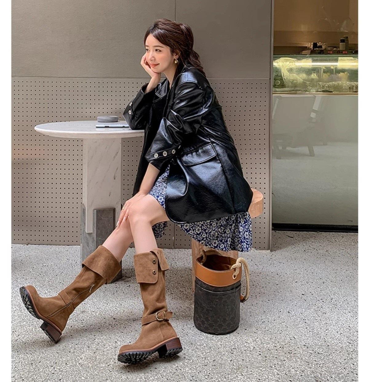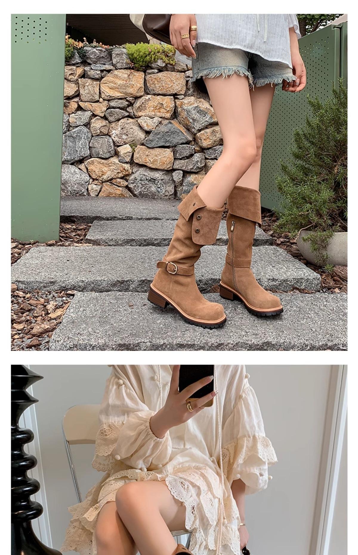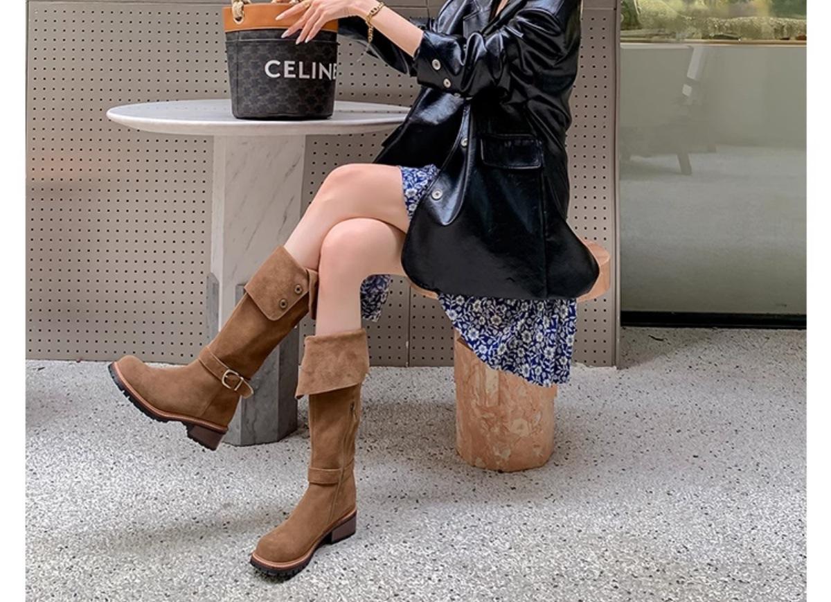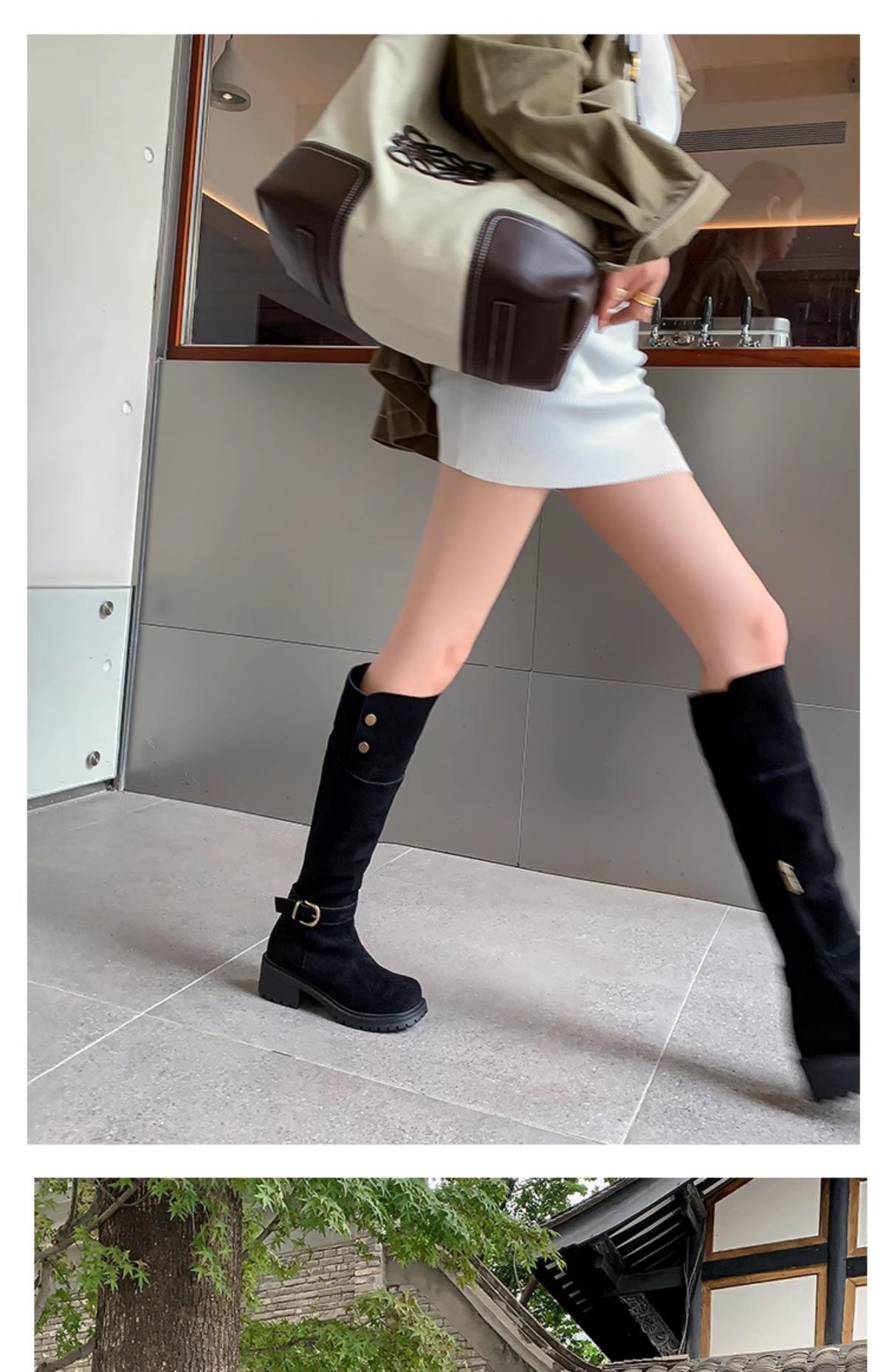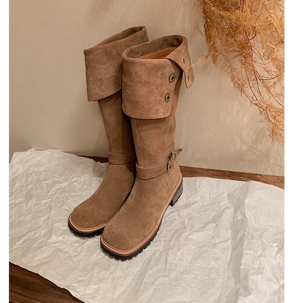 Botas largas marrones para mujer, botas de plataforma que combinan con todo, botas altas esmeriladas, botas de caballero nuevas de 2024, botas pequeñas.