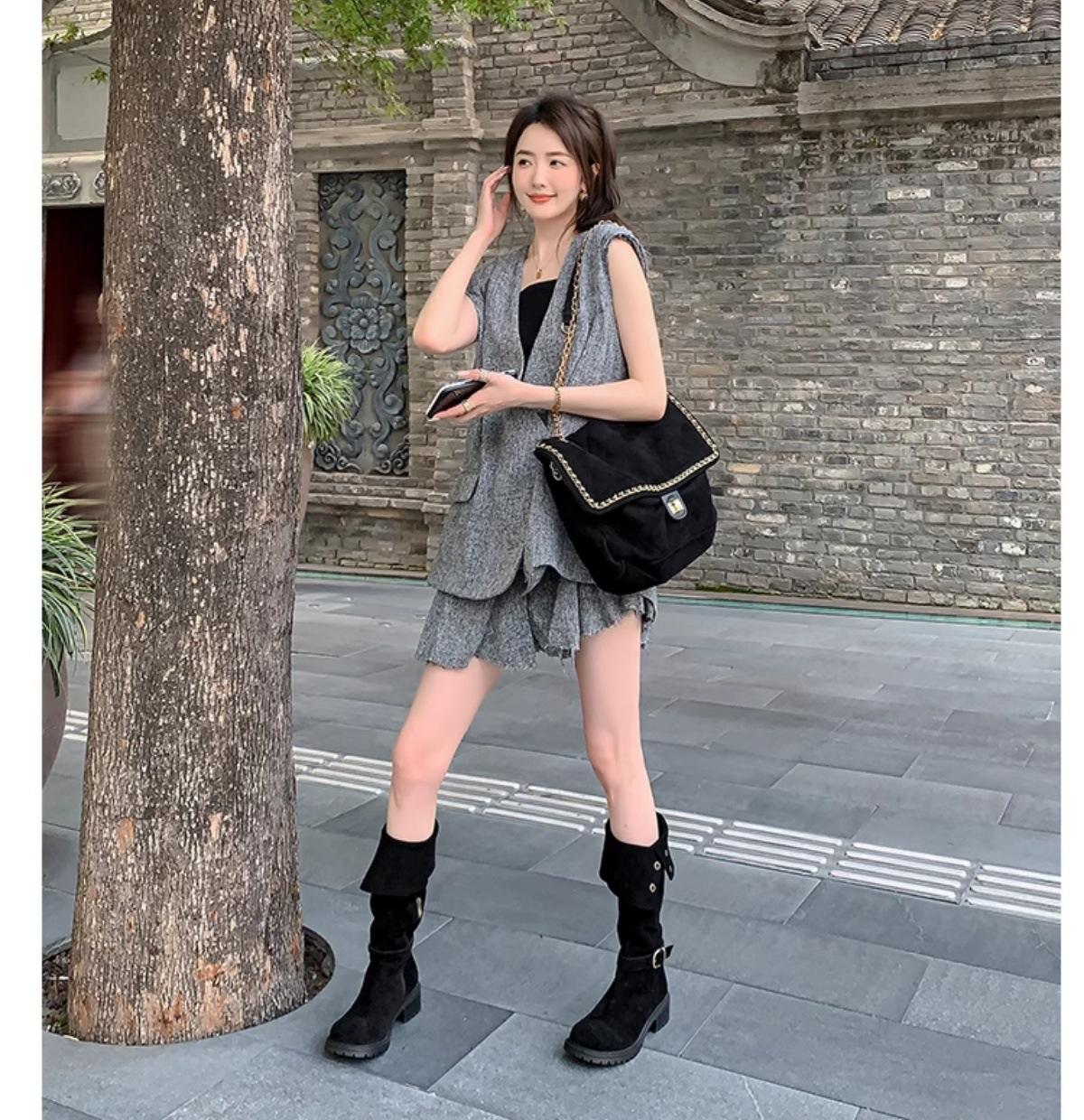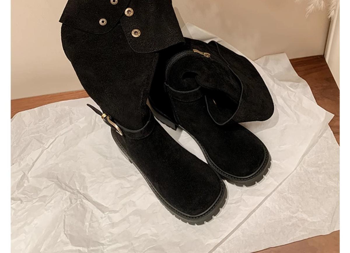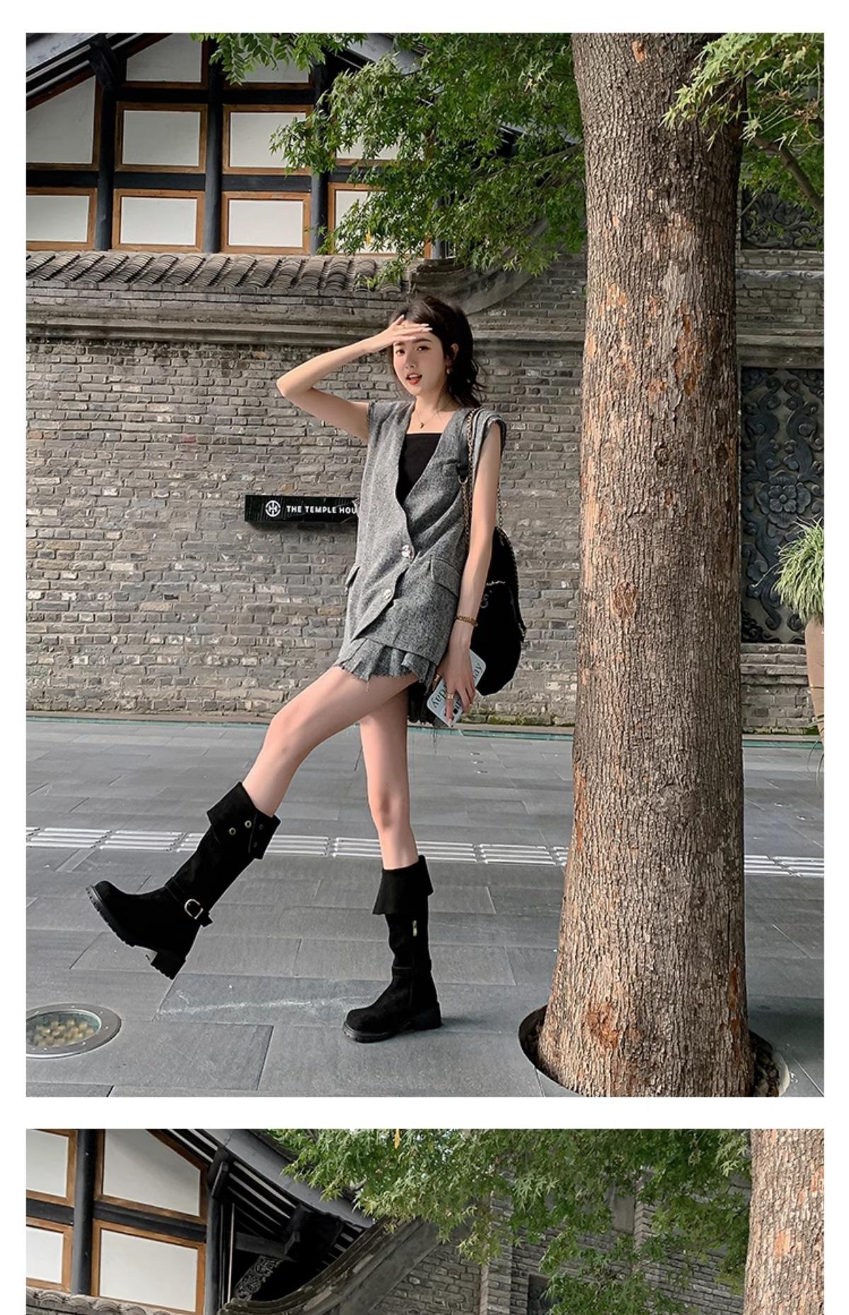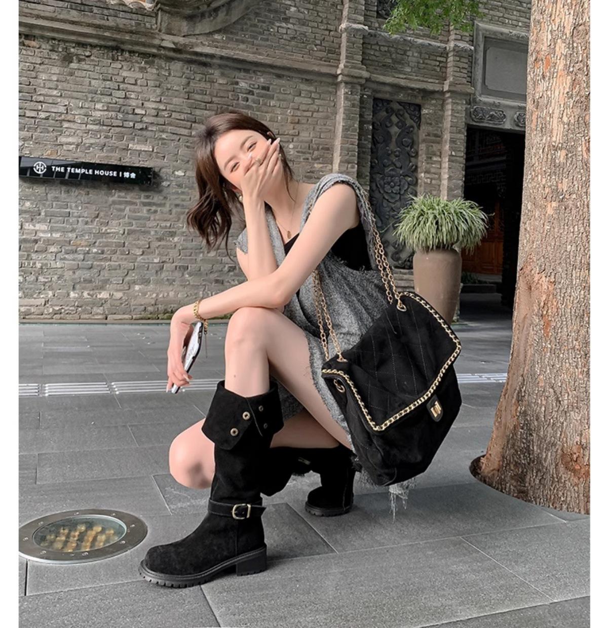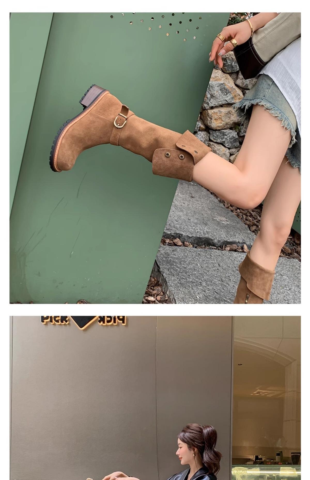 Botas largas marrones para mujer, botas de plataforma que combinan con todo, botas altas esmeriladas, botas de caballero nuevas de 2024, botas pequeñas.