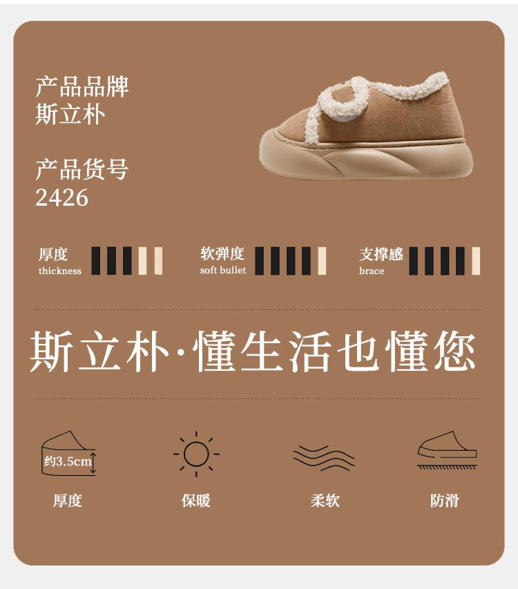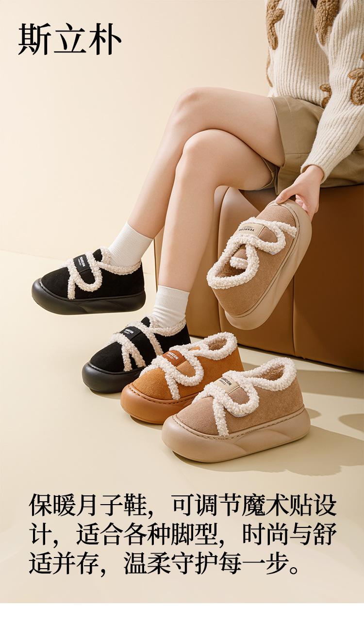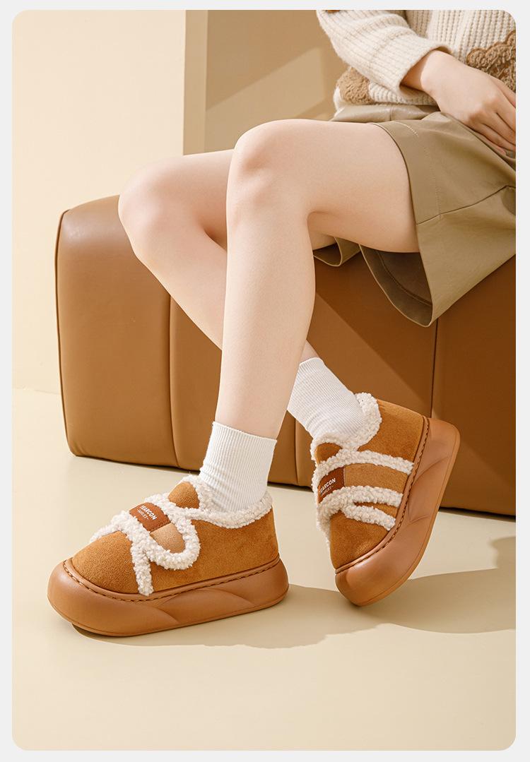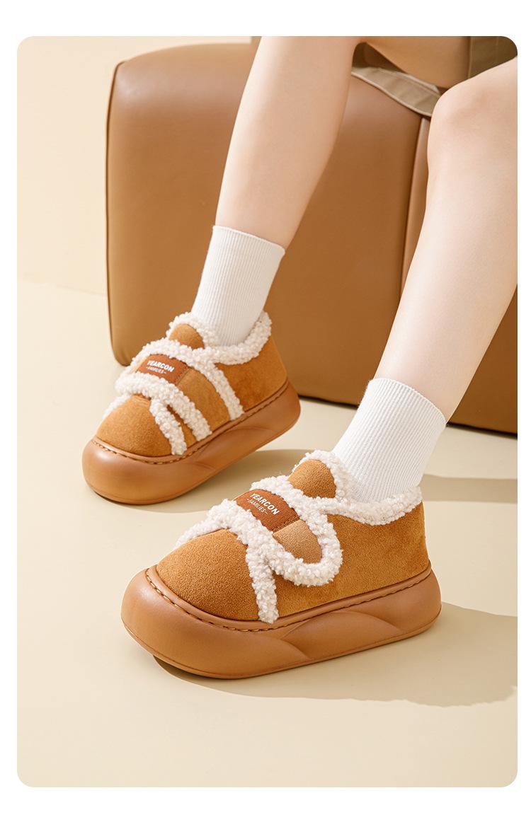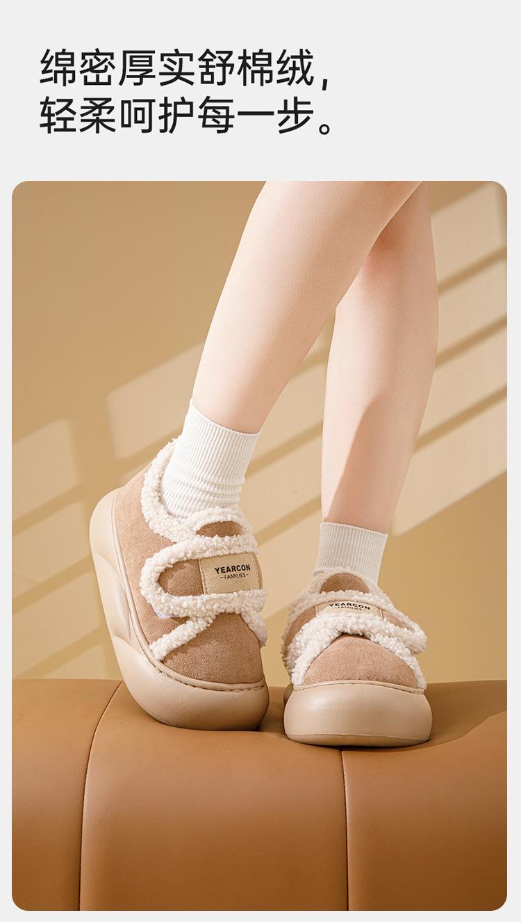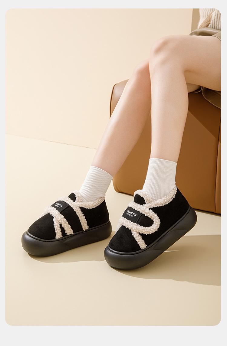 Pantuflas de Algodón con Forro Polar Engrosadas Sensación de Estiércol Antideslizantes Pantuflas de Invierno Algodón para Mujer Felpa para el Hogar Zapatos de Luna Otoño Tacón
