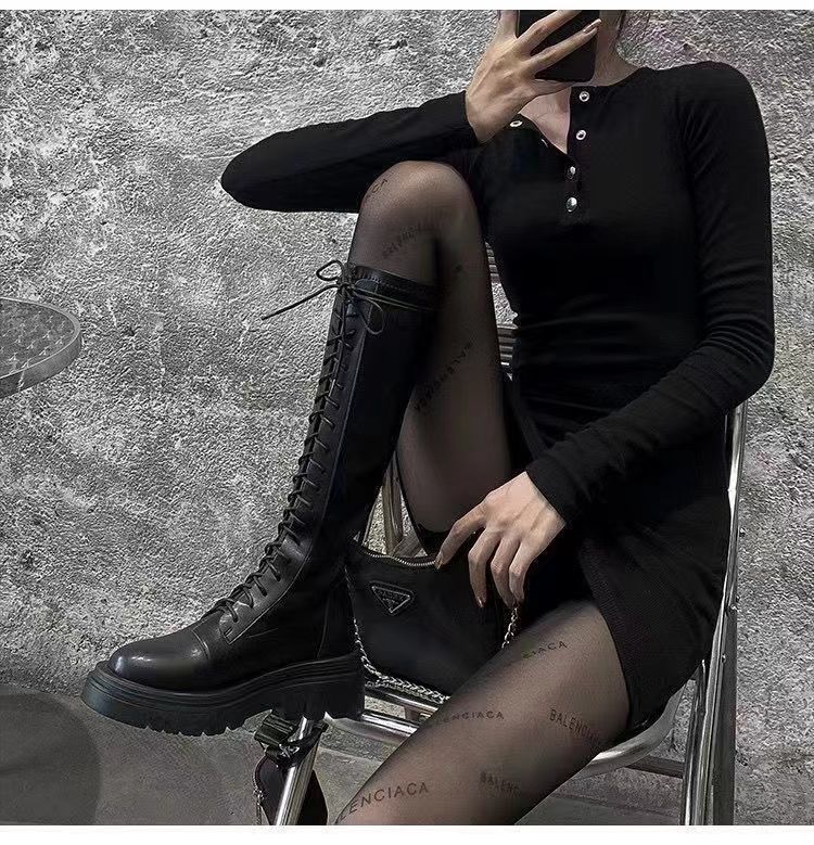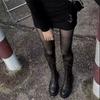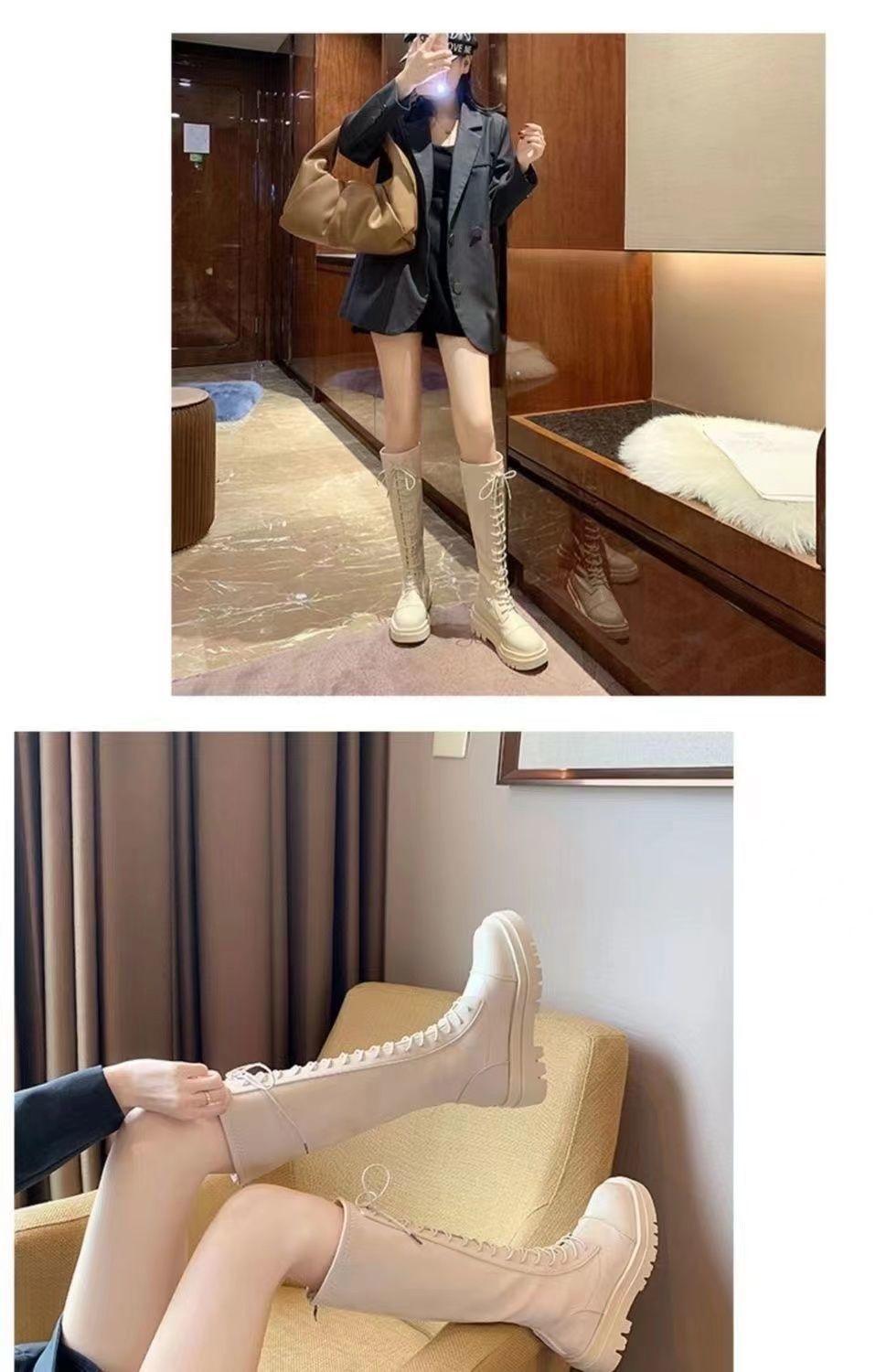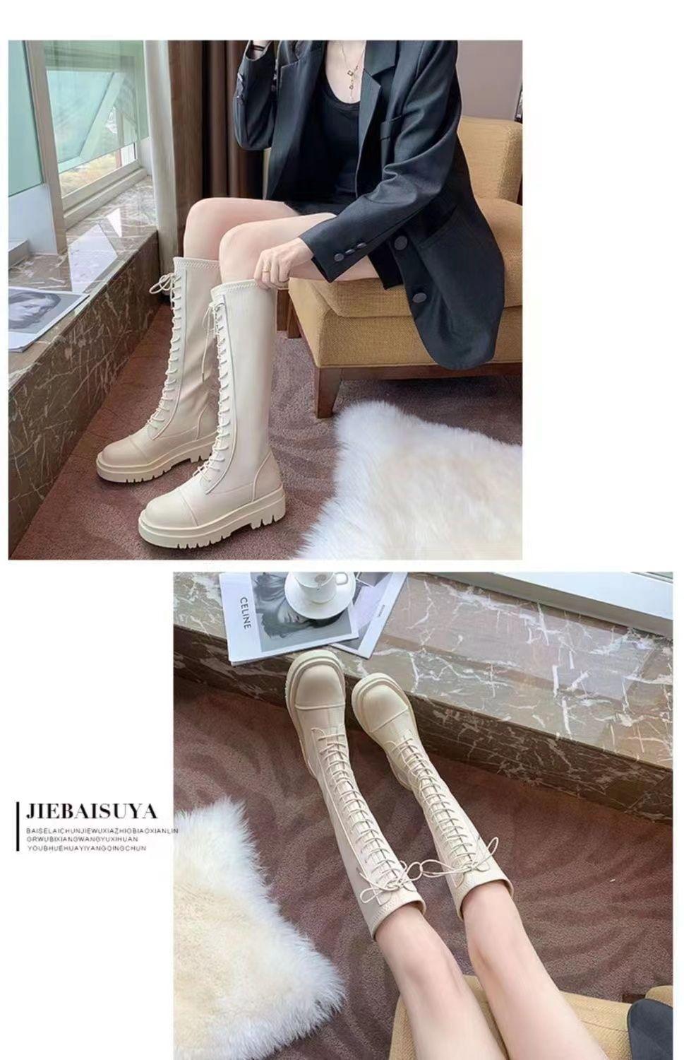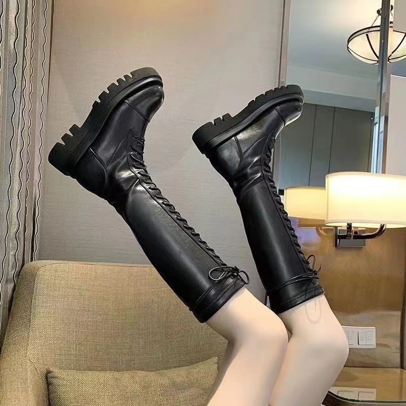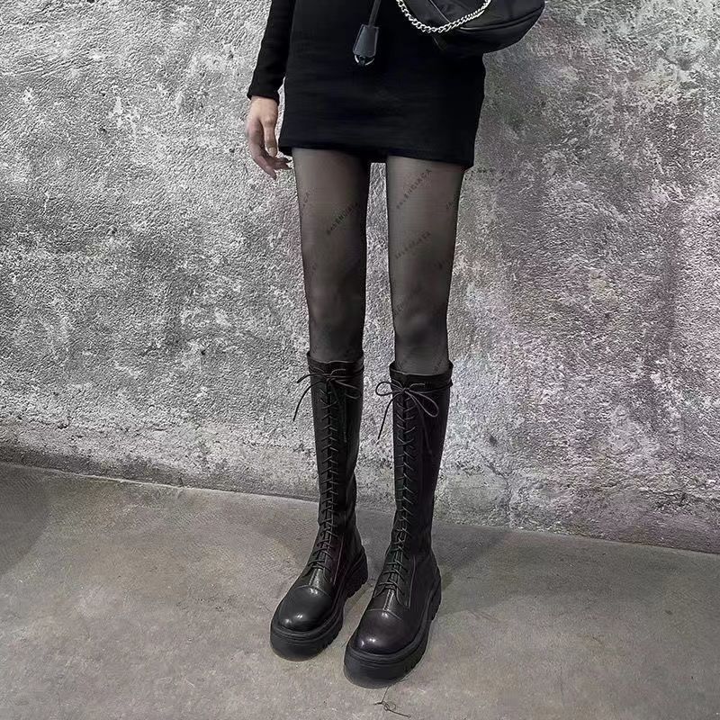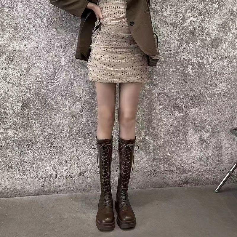 Botas de caballero estilo británico para mujer 2022, nuevas botas hasta la rodilla, botas marrones de plataforma alta adelgazantes, botas elásticas