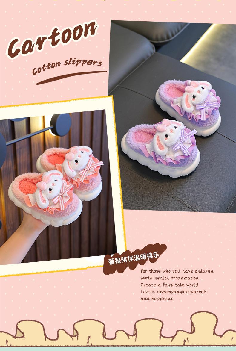 Nuevas pantuflas de algodón para niños, forradas con vellón de invierno, gruesas, cálidas, de fondo suave, cómodas, con dibujos animados para el hogar, lindas zapatillas de algodón para hombres y mujeres.