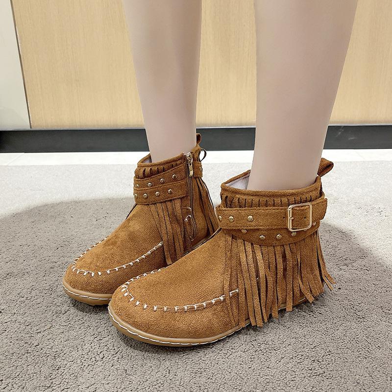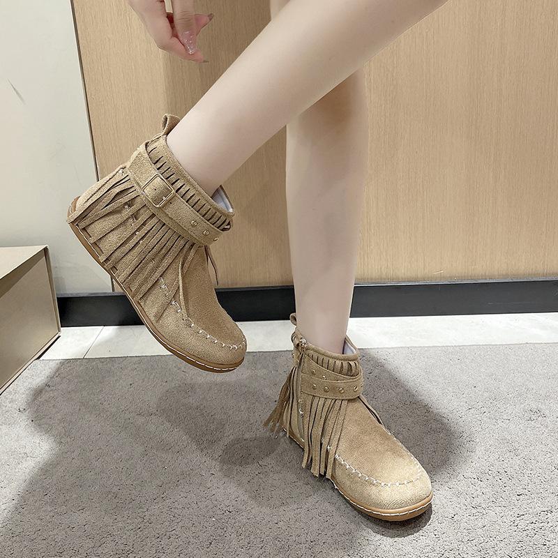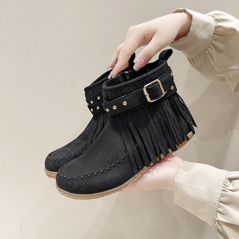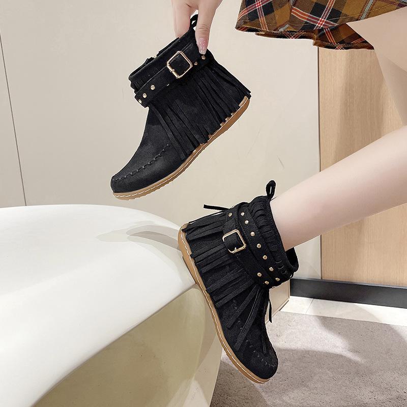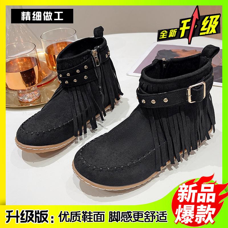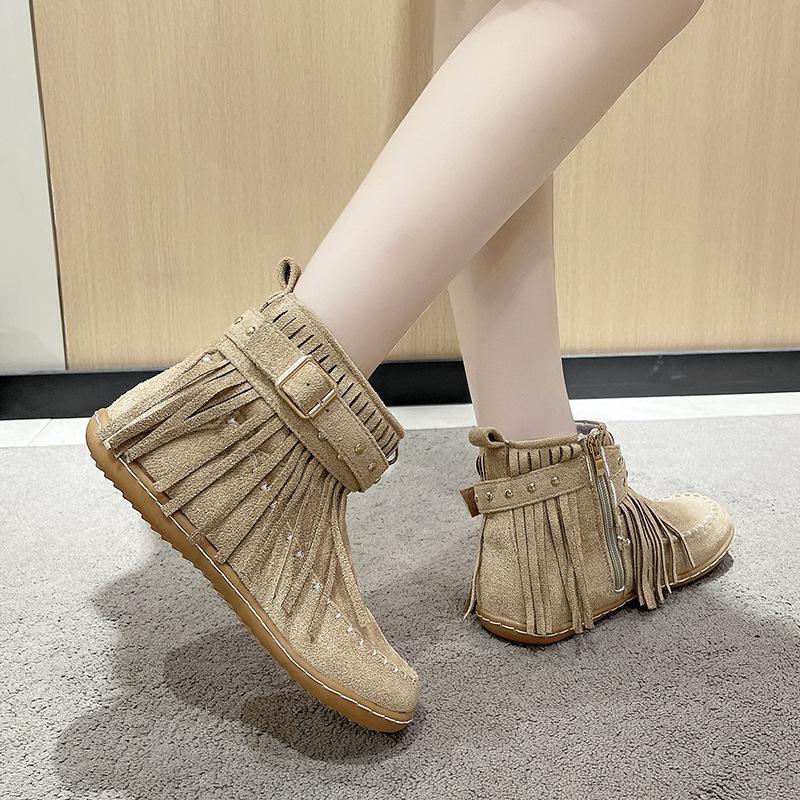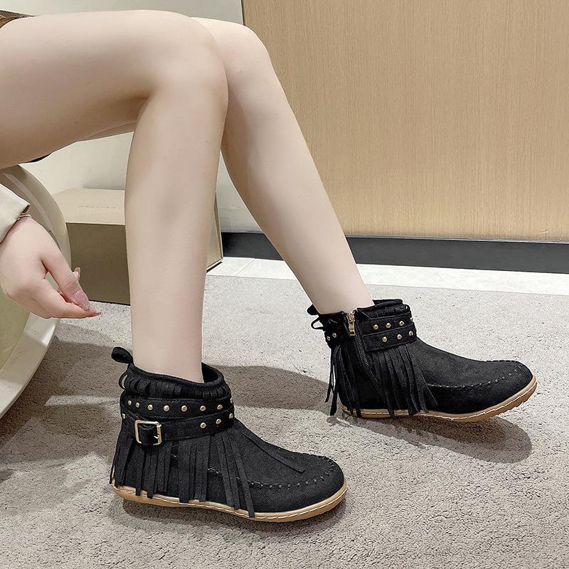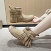 Botas planas con borlas retro, estilo europeo y americano, para otoño e invierno, 2024