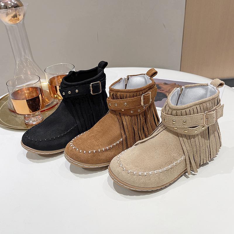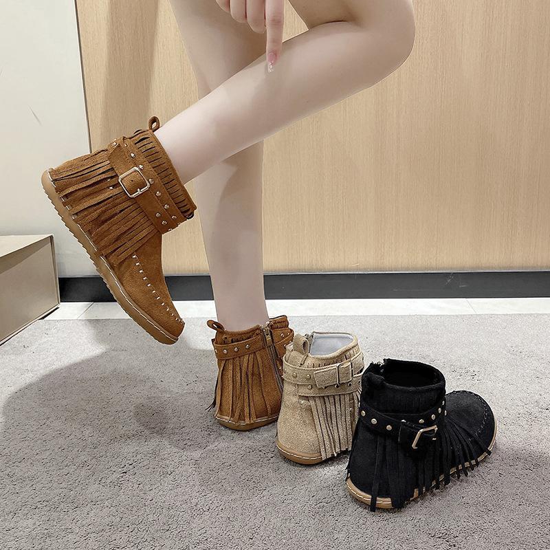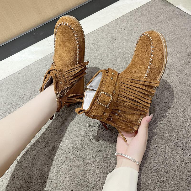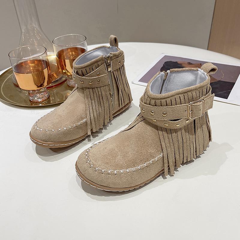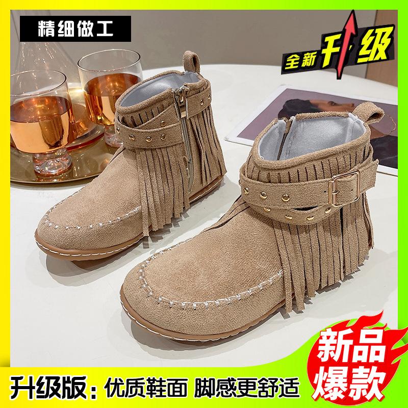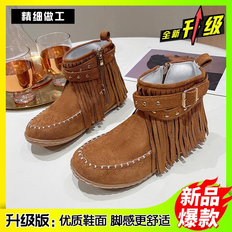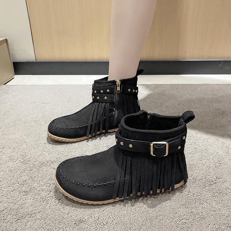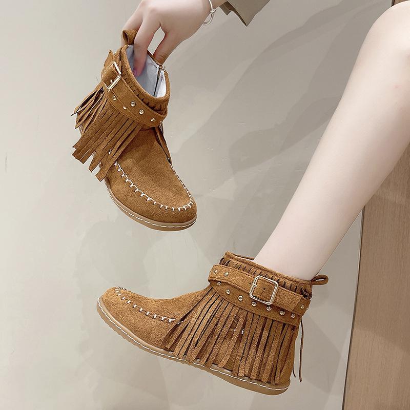 Botas planas con borlas retro, estilo europeo y americano, para otoño e invierno, 2024