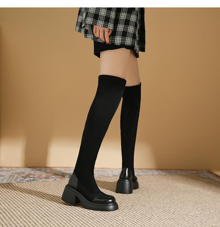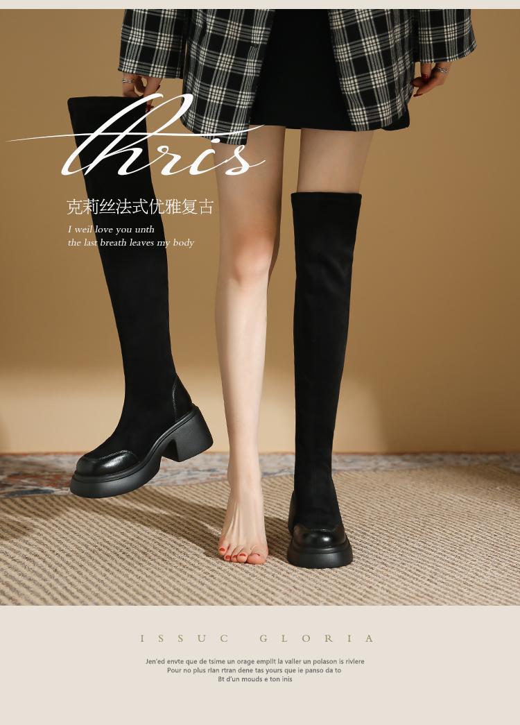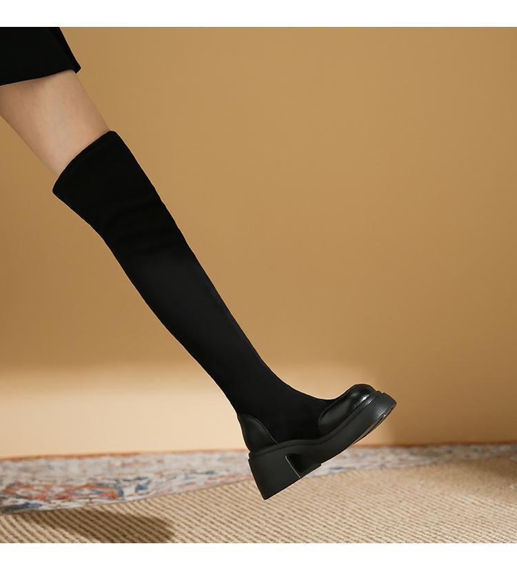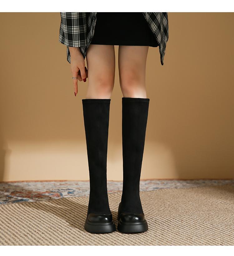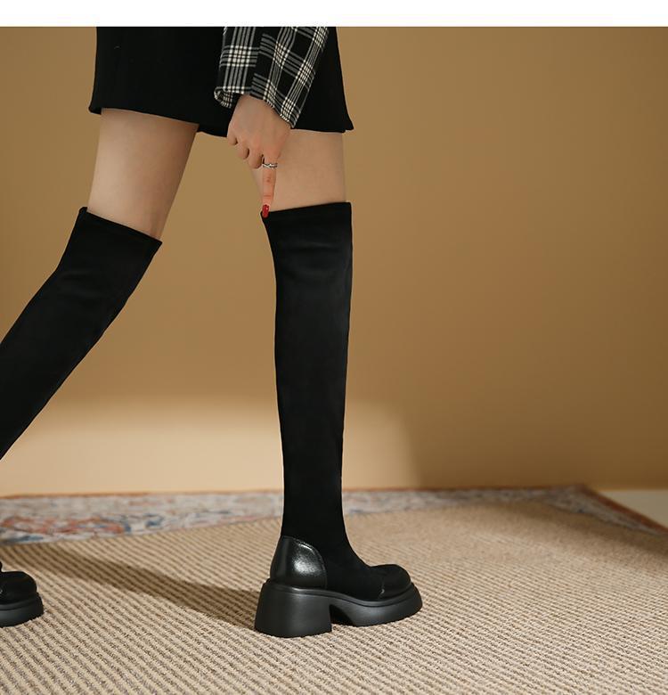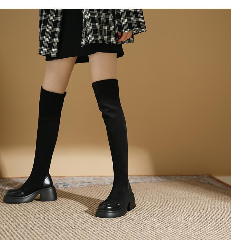Botas altas por encima de la rodilla con suela gruesa para mujer, otoño e invierno, nuevas, de tacón alto, versátiles, con forro polar, elásticas y finas.