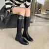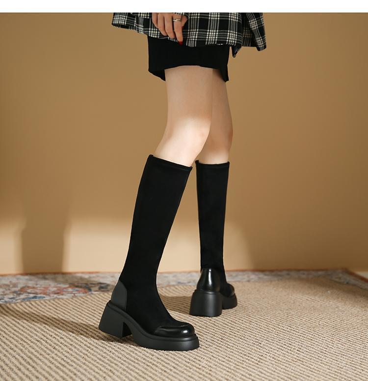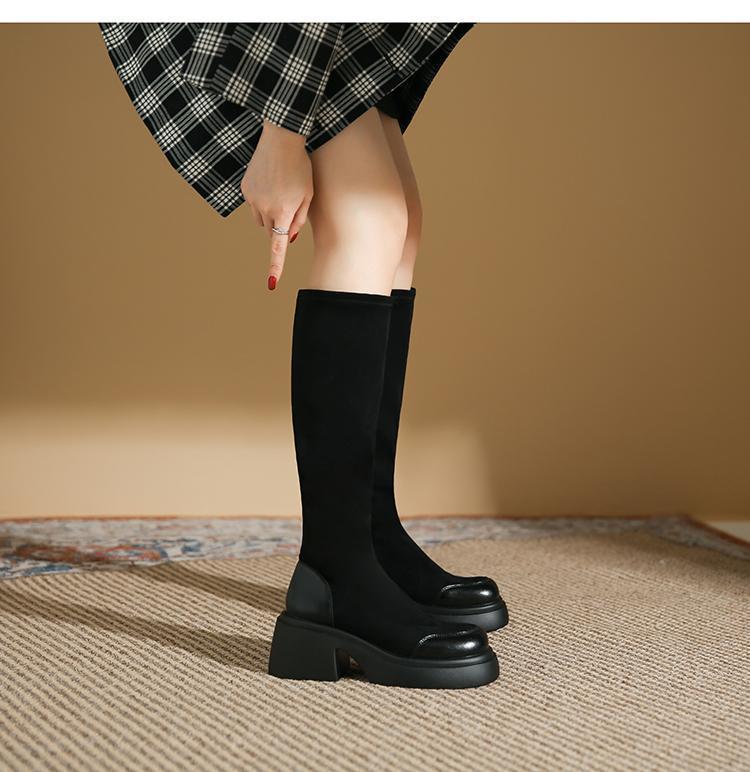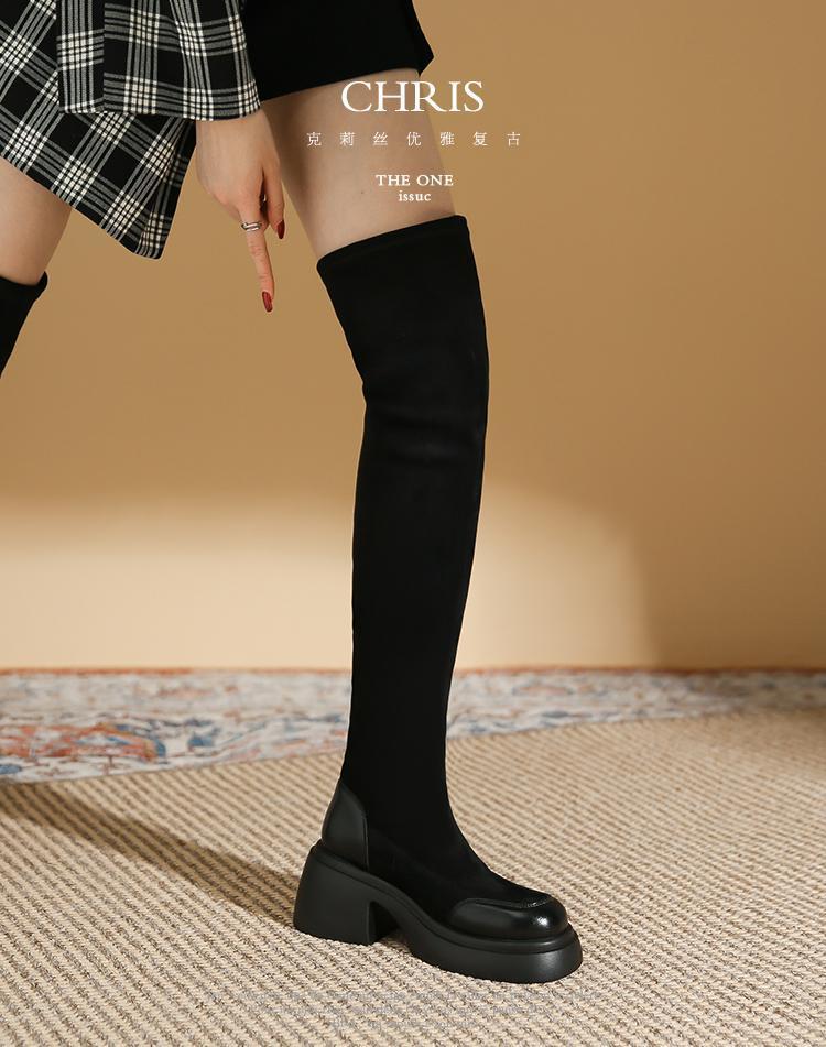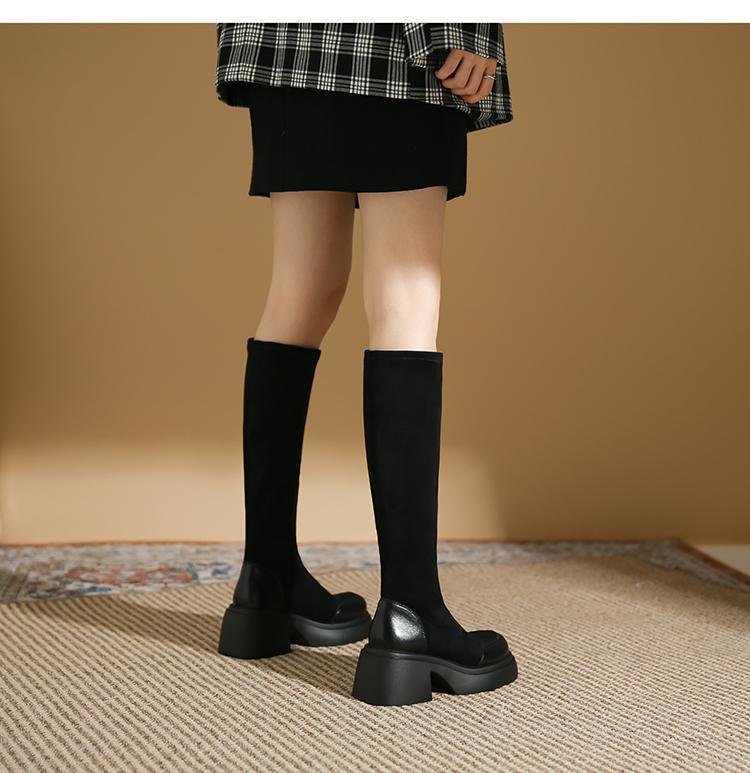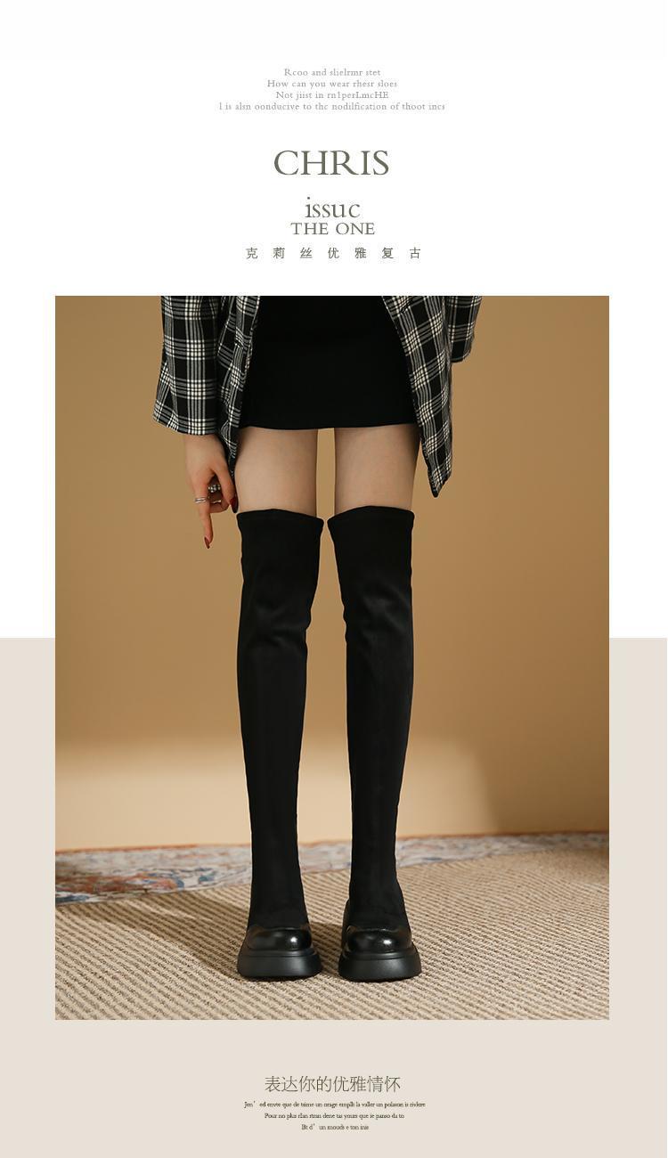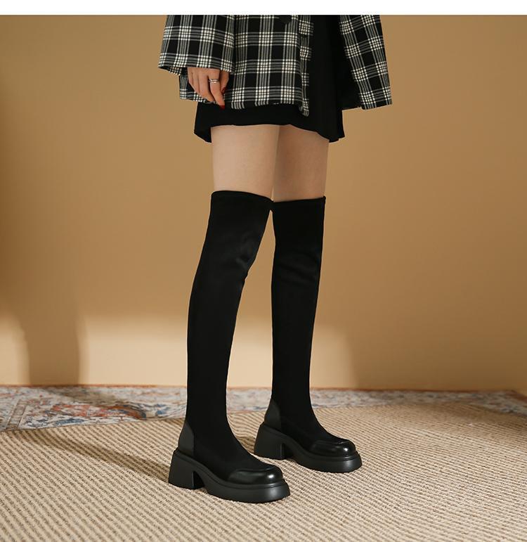 Botas altas por encima de la rodilla con suela gruesa para mujer, otoño e invierno, nuevas, de tacón alto, versátiles, con forro polar, elásticas y finas.