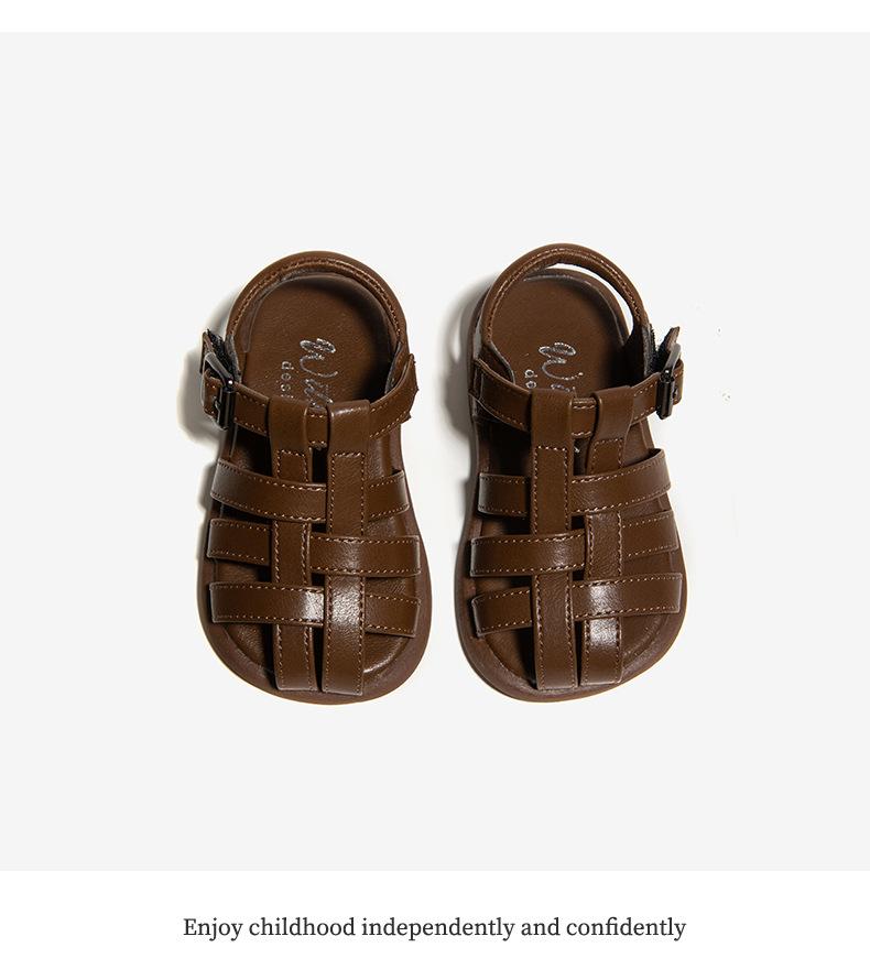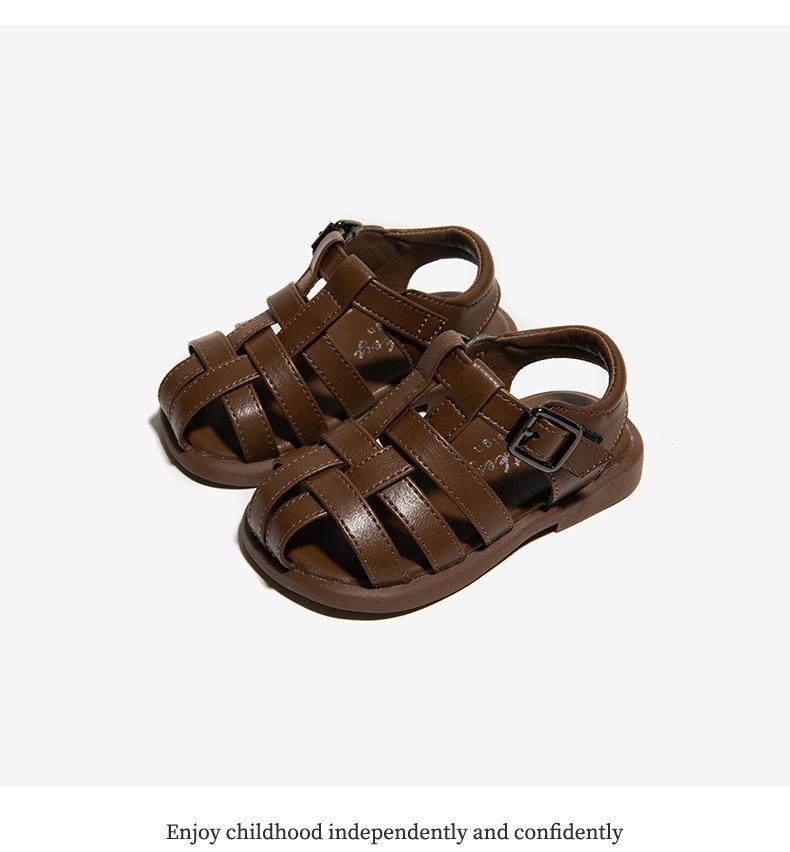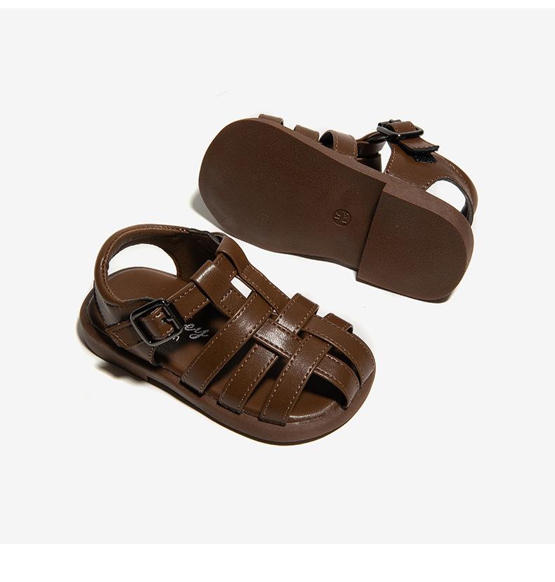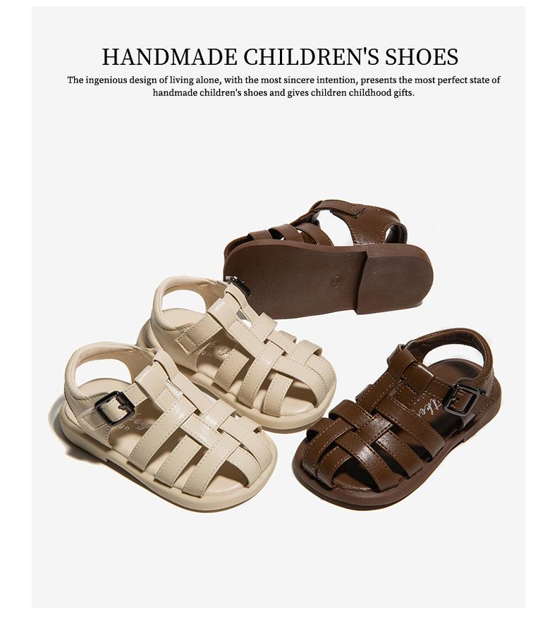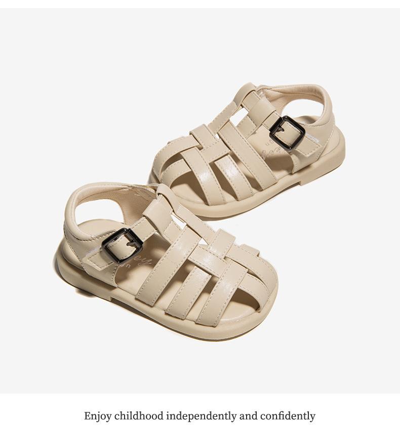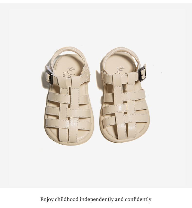 Sandalias 2025 Verano Nuevo Estilo Niñas Bebé Niñas Pequeñas Retro Cruz Zapatos de Playa Estilo Británico Antideslizantes Venta al por Mayor