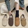 Zapatos pequeños de cuero planos forrados de vellón para mujer 2024 Otoño e Invierno Nuevos Retro Combinables Zapatos individuales Slip-on Mocasines suaves
