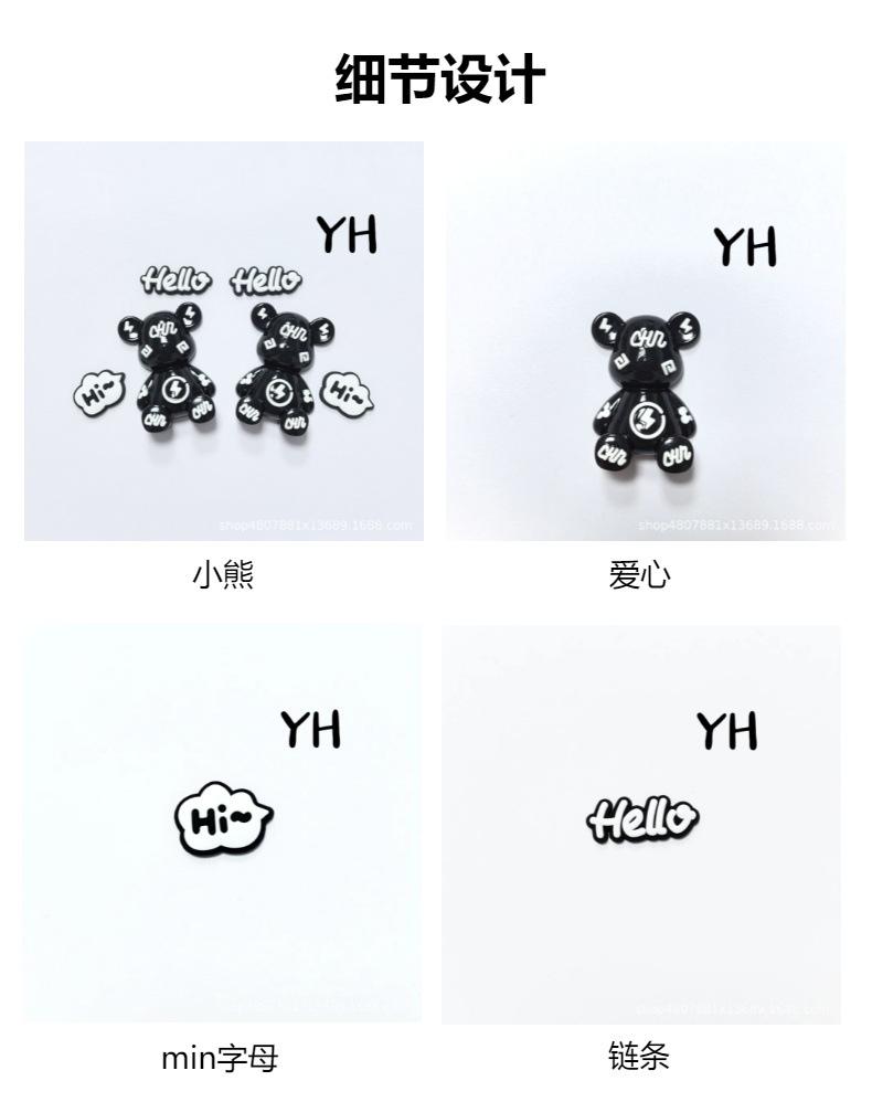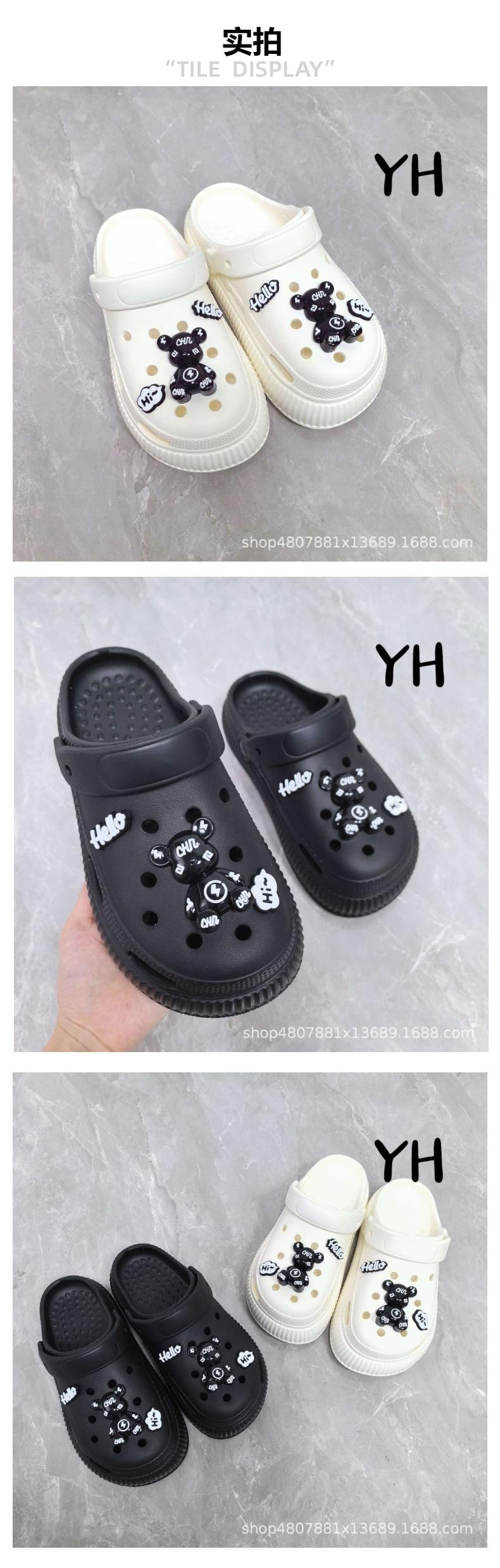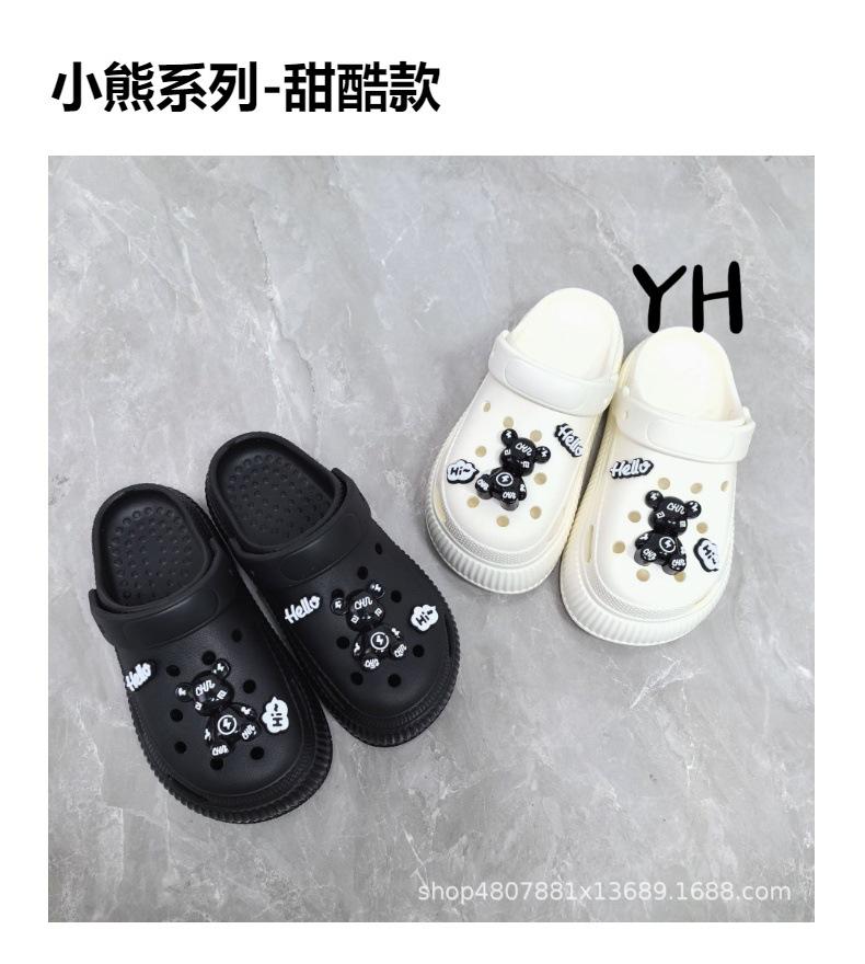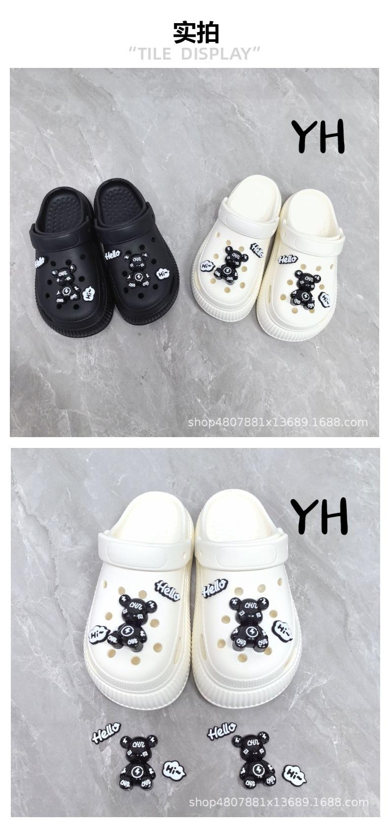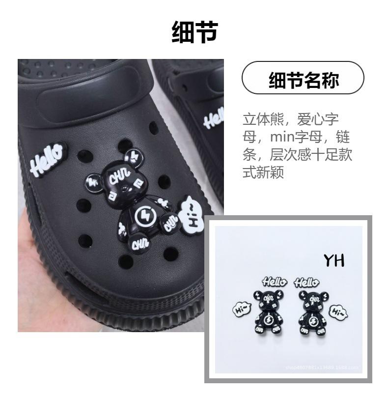 Nuevos y versátiles zapatos con agujeros de oso negro, joyería DIY, lindo zapato de dibujos animados, hebilla de zapato con flor, accesorios para zapatos de jardín, hebilla transfronteriza