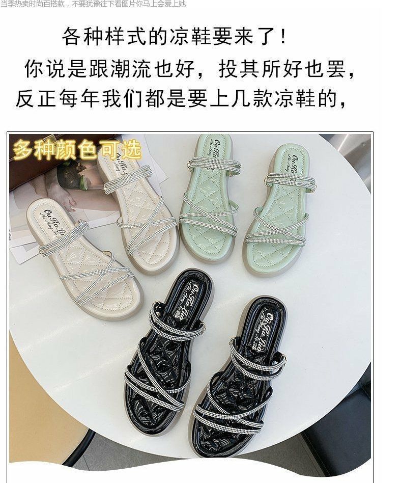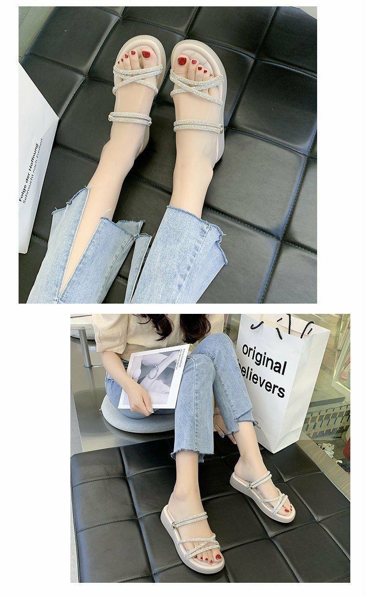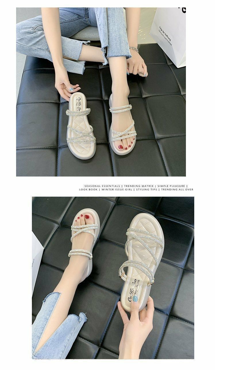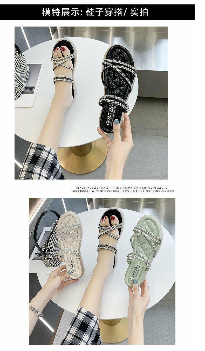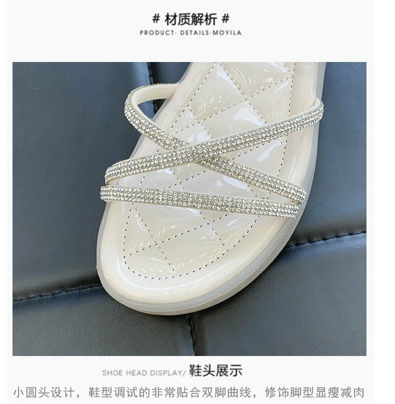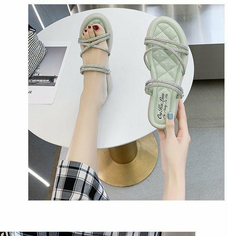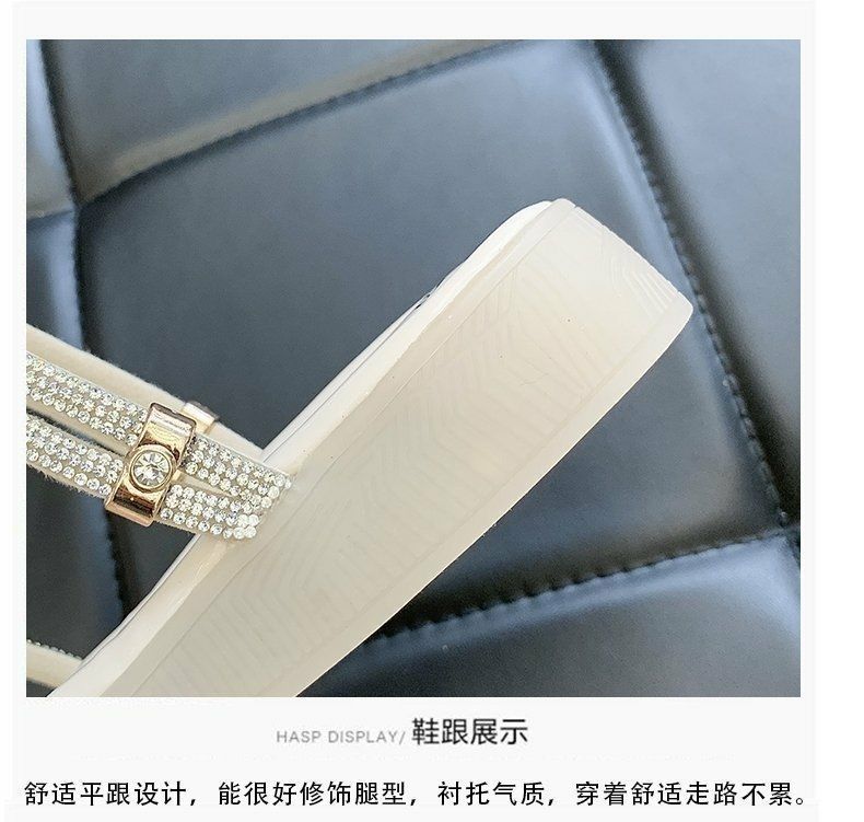 Sandalias de pedrería de suela blanda de dos vías 2023 nuevos zapatos versátiles de celebridad de internet de primavera y verano banda elástica plana zapatos romanos