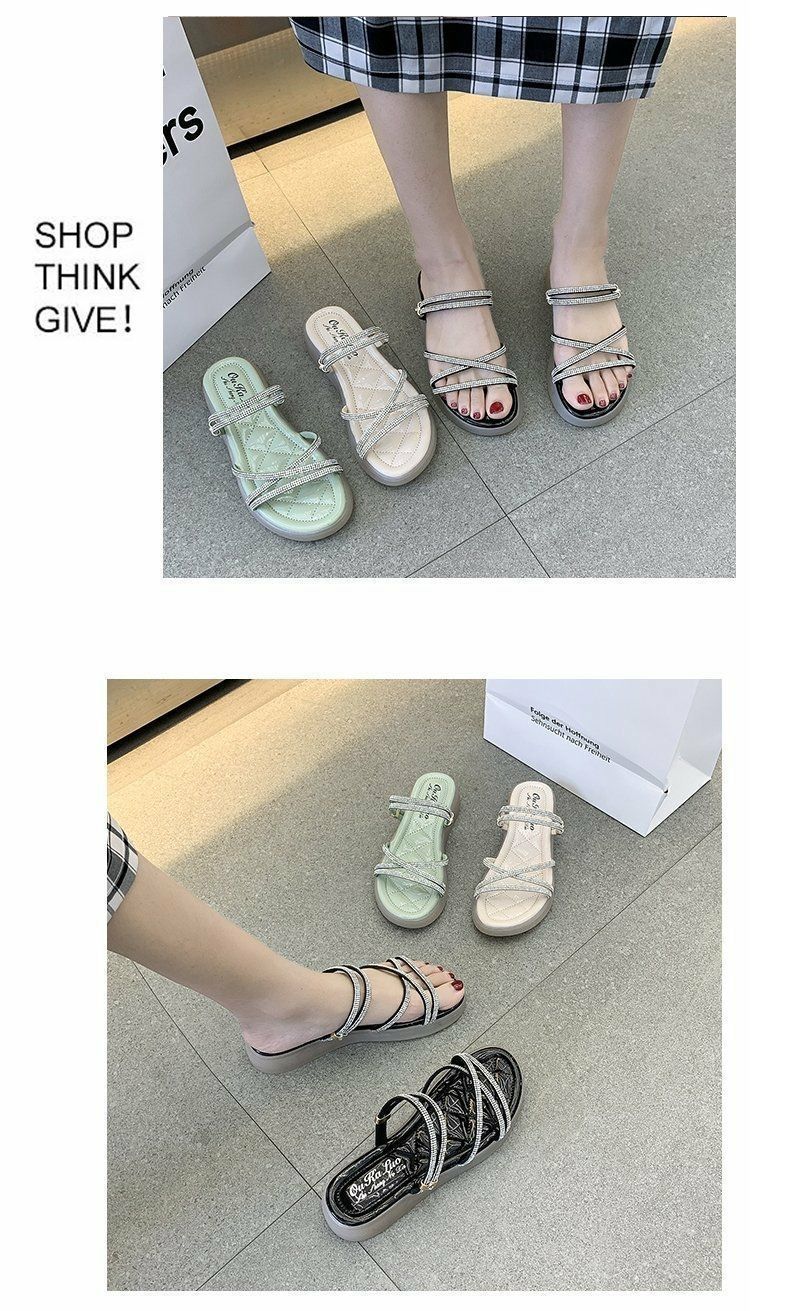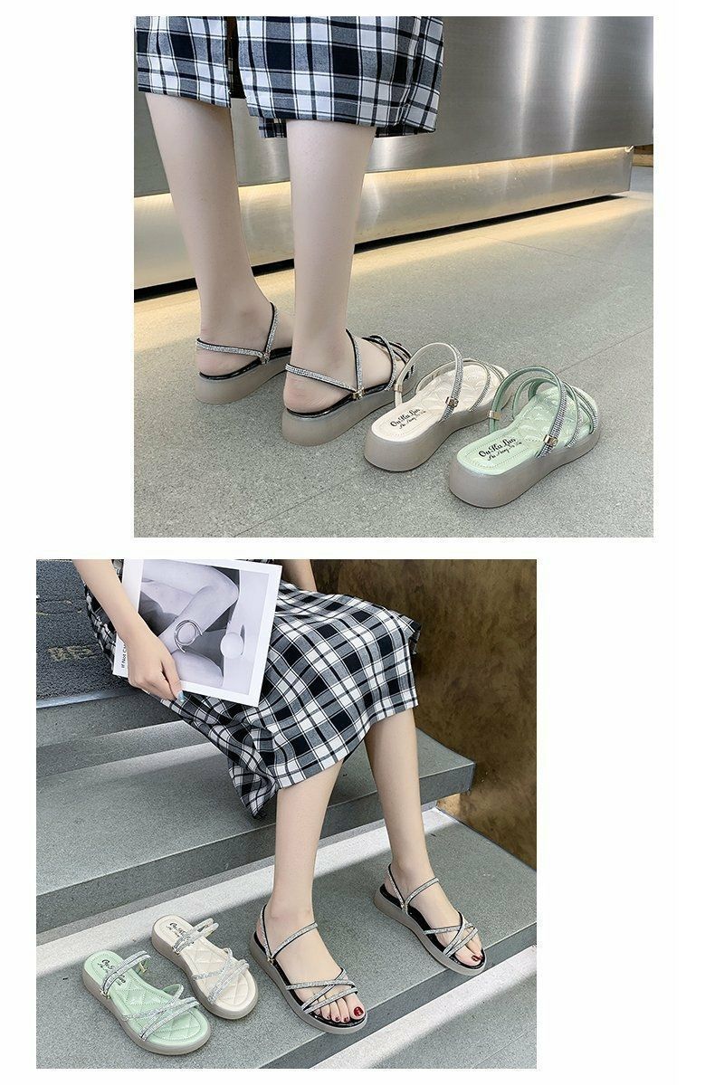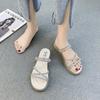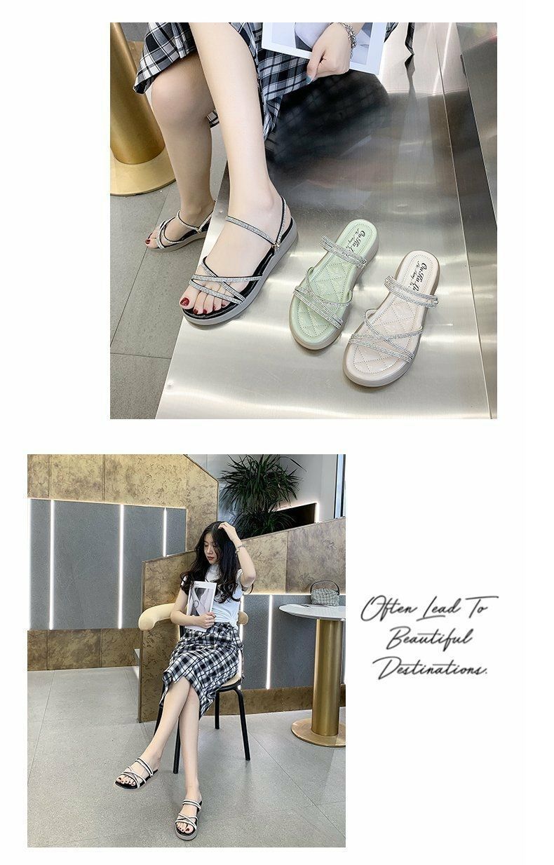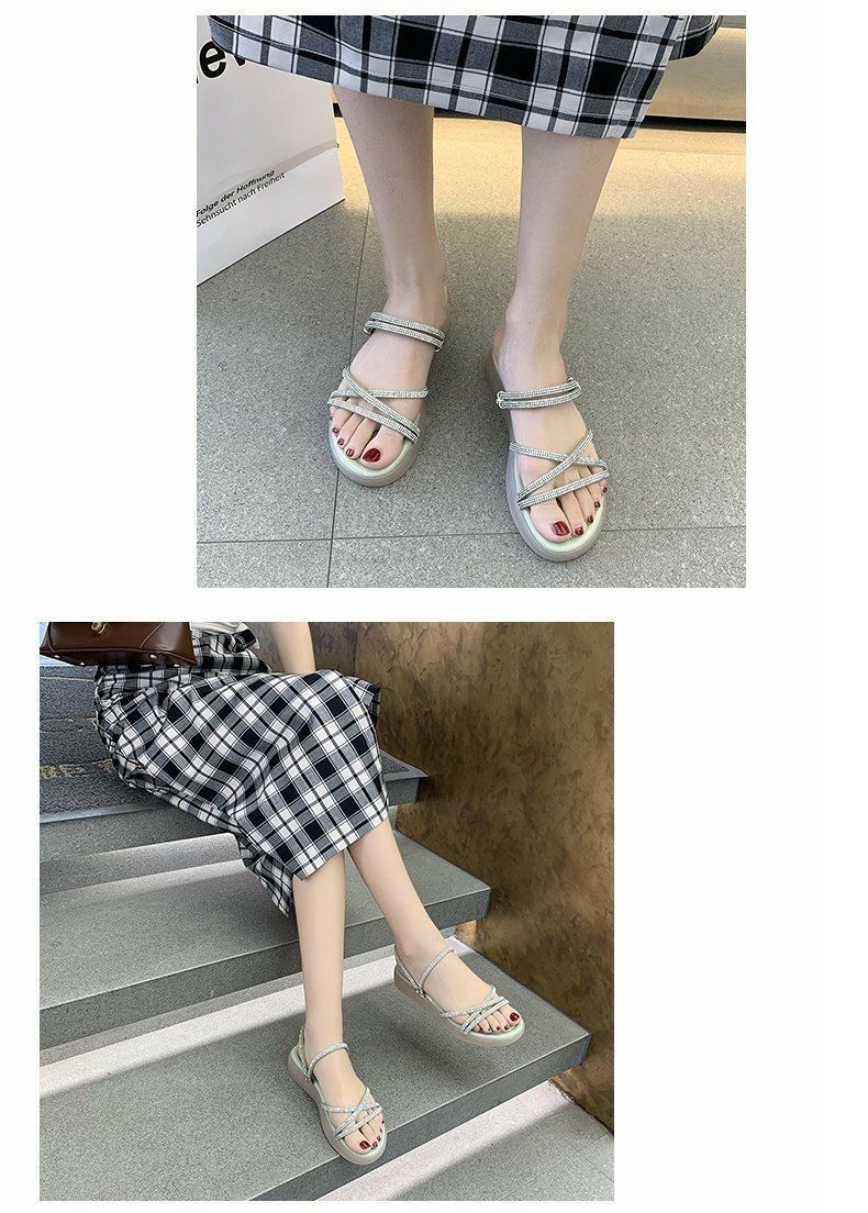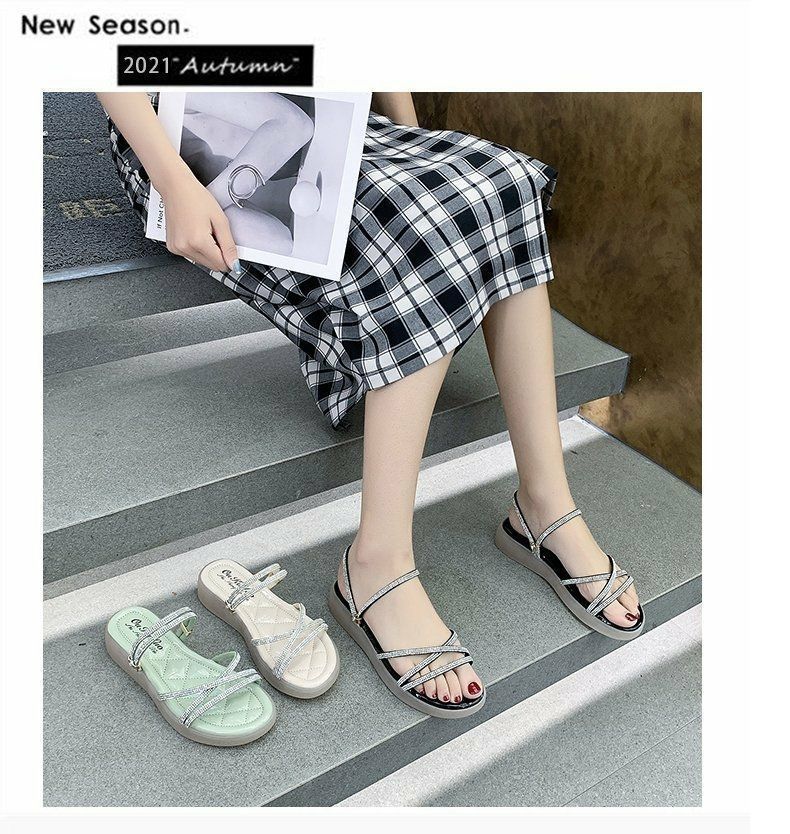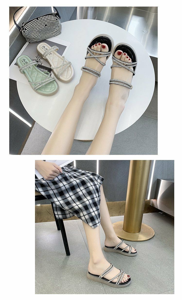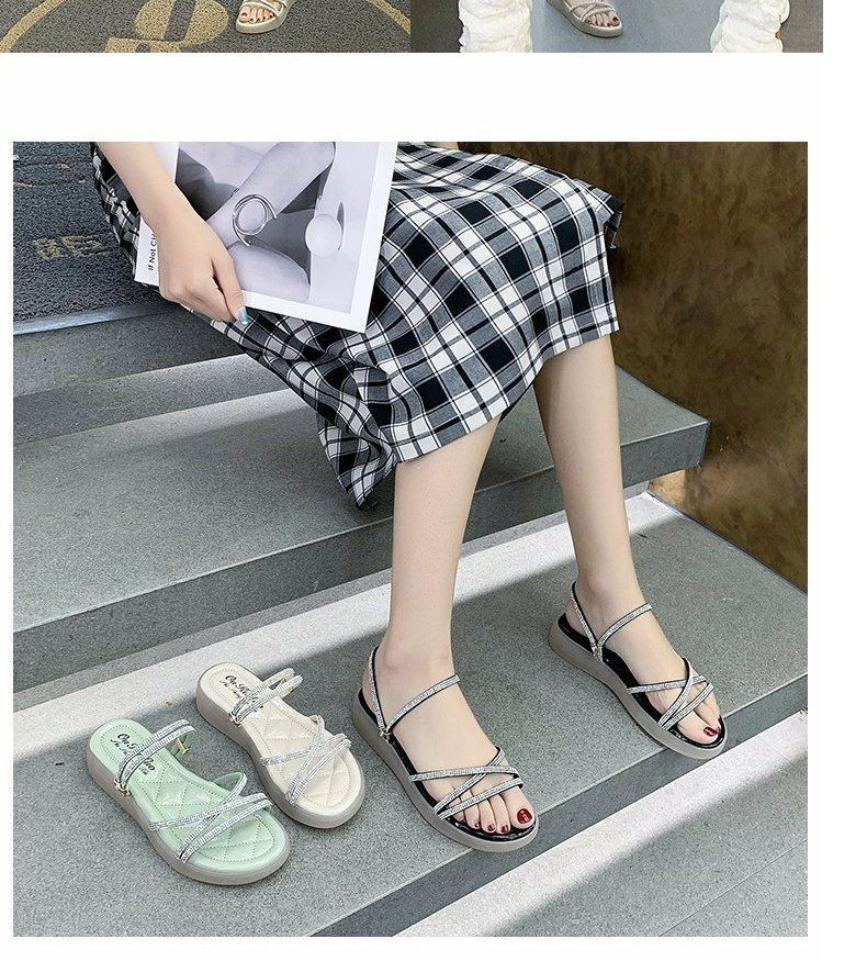 Sandalias de pedrería de suela blanda de dos vías 2023 nuevos zapatos versátiles de celebridad de internet de primavera y verano banda elástica plana zapatos romanos