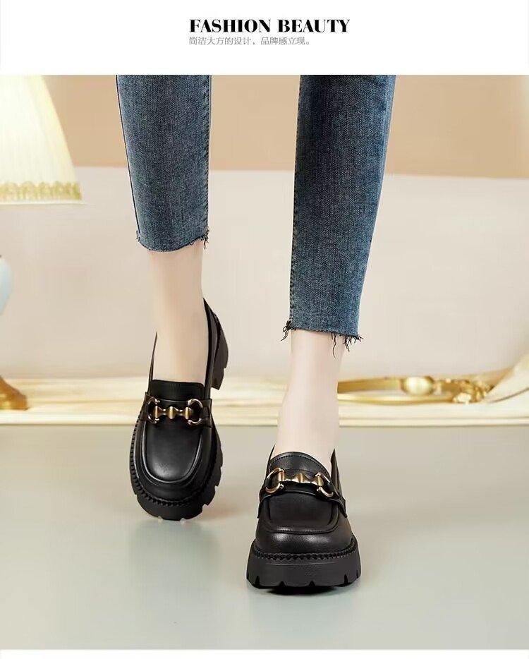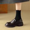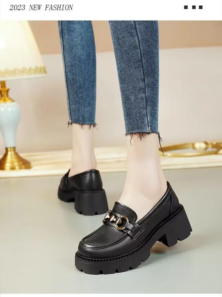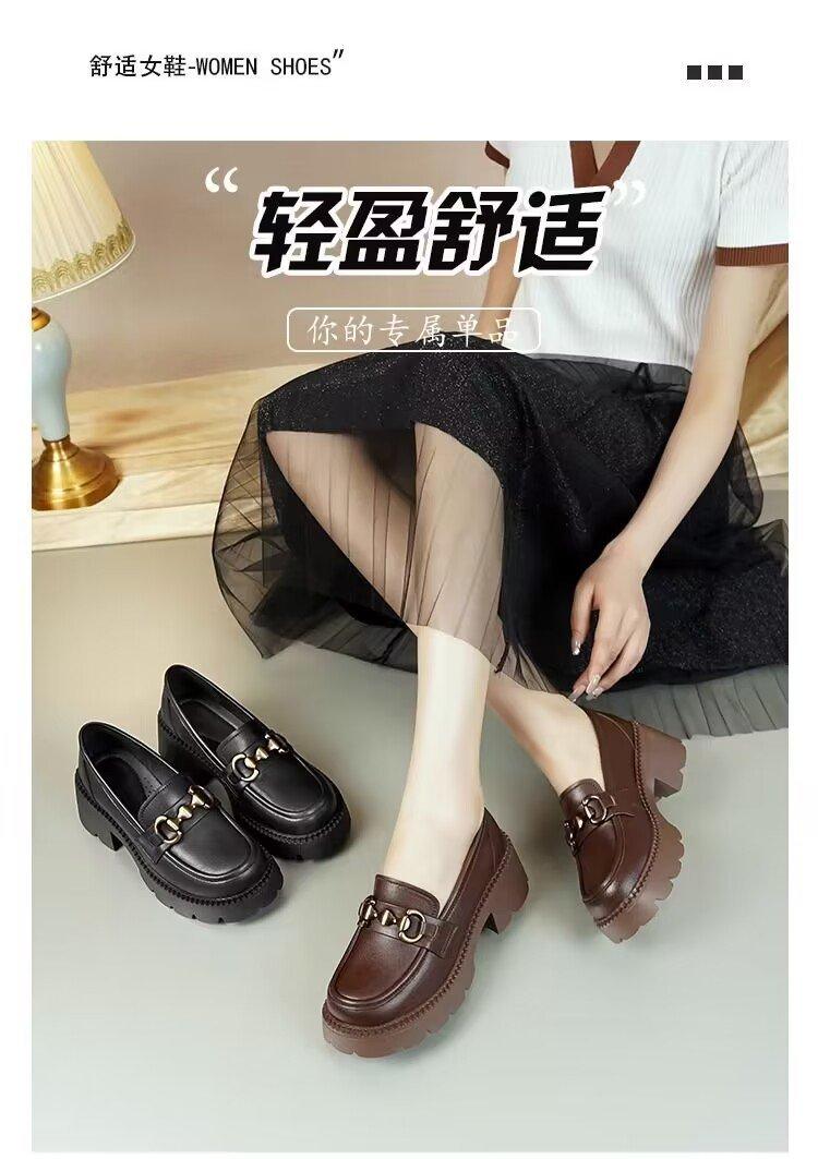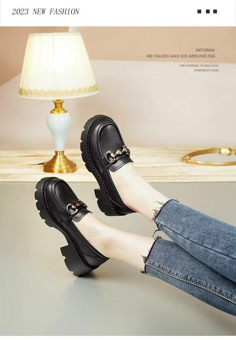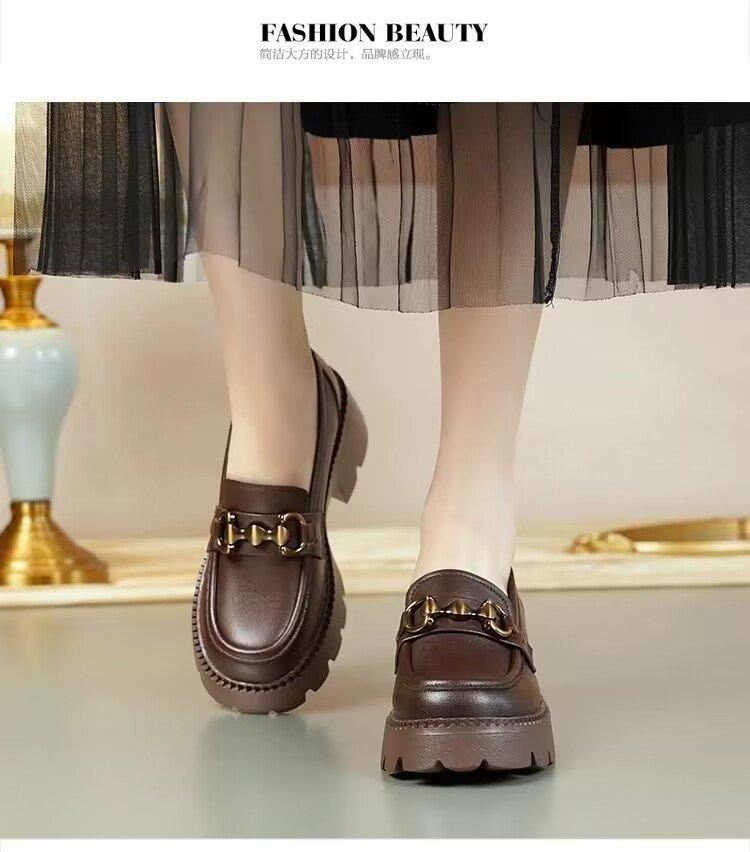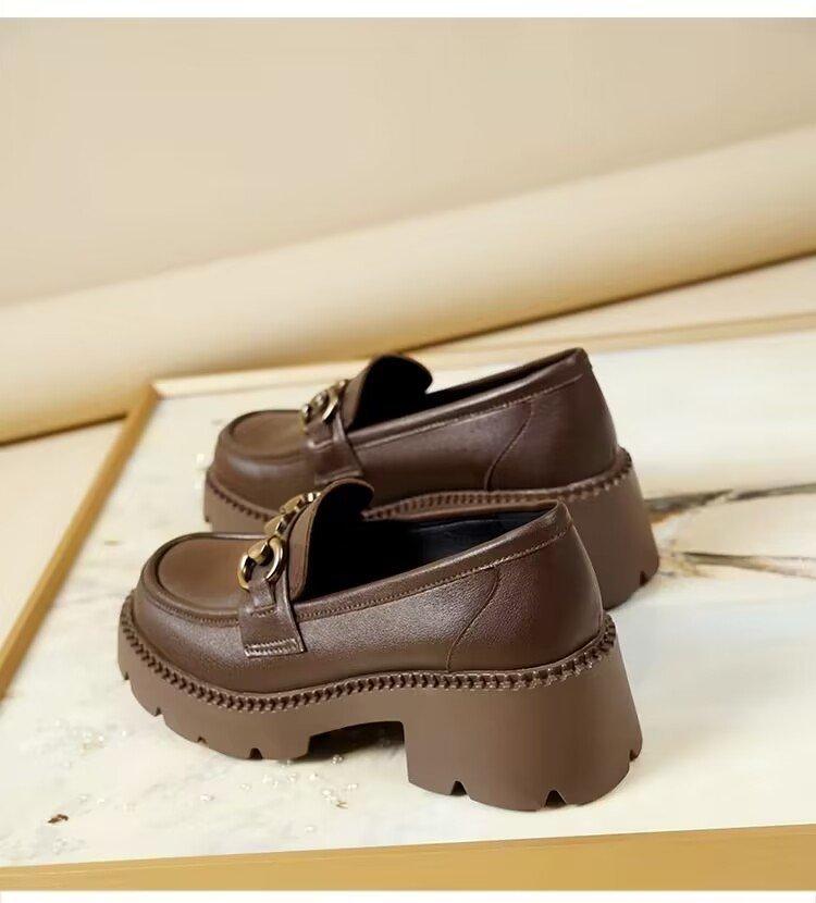 Zapatos de mujer de suela blanda de una sola capa, de cuero y tacón grueso, para otoño de 2024