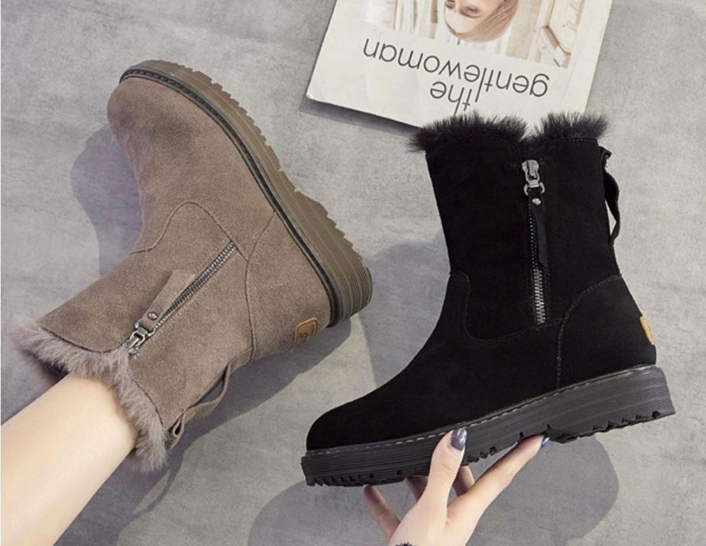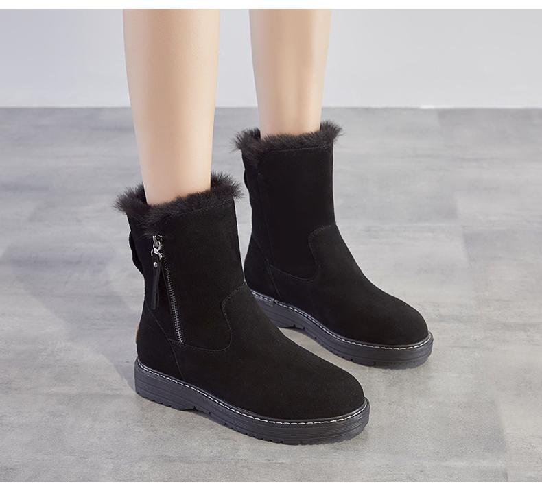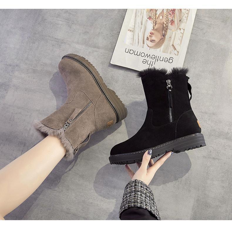 Botas de Nieve para Mujer Invierno Nuevo Botas Combinables Piel Una Invierno del Noreste con Forro Polar Engrosadas Cálidas Zapatos de Algodón