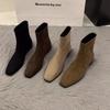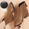 Botas cortas para mujer 2023 otoño e invierno Nuevas botas de mujer de piel suave, botas de tacón grueso para mujer con suela suave y todo a juego, forradas de vellón