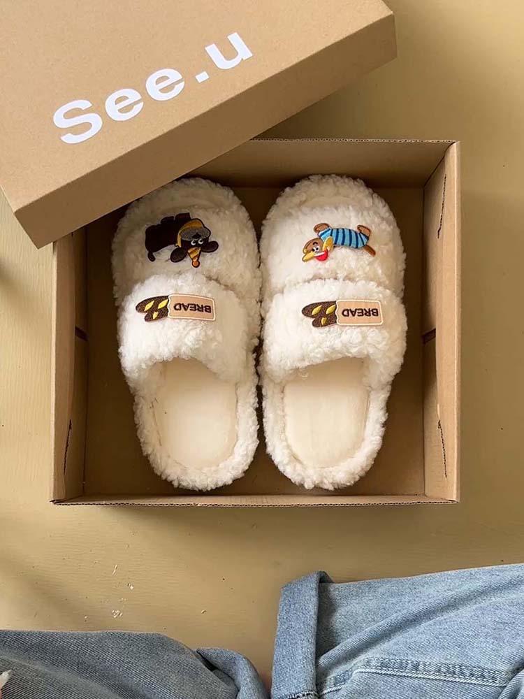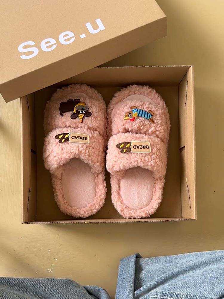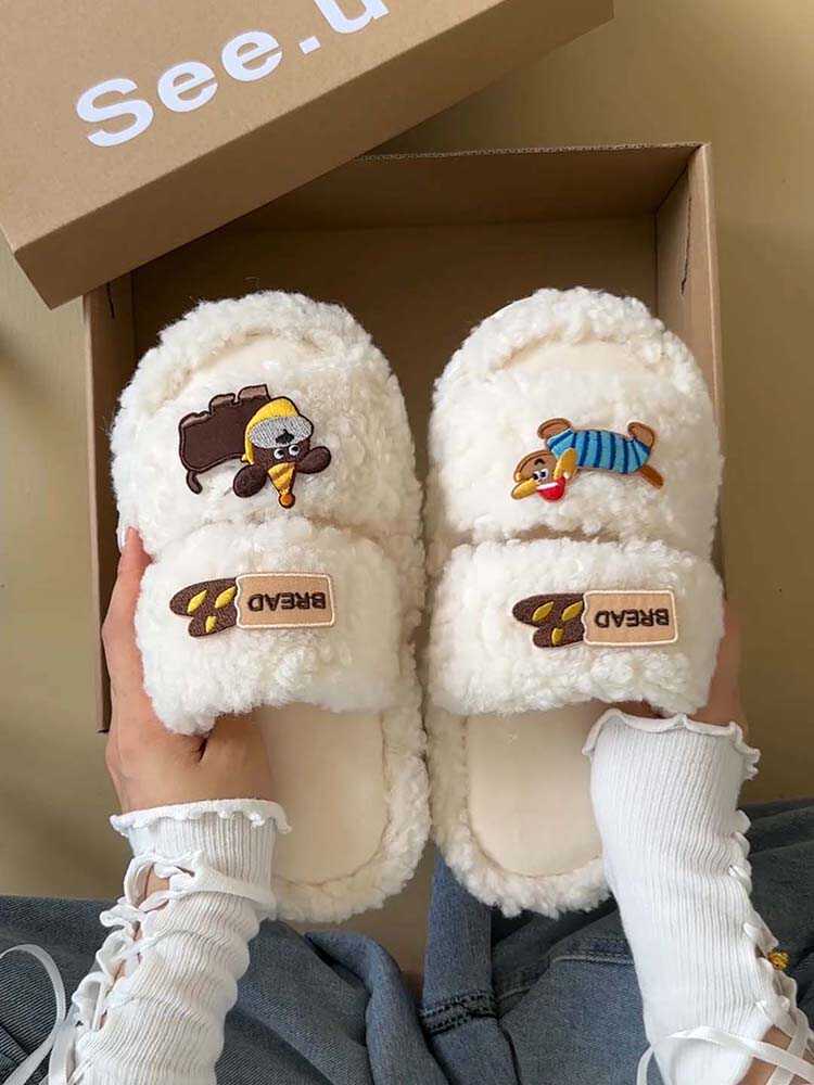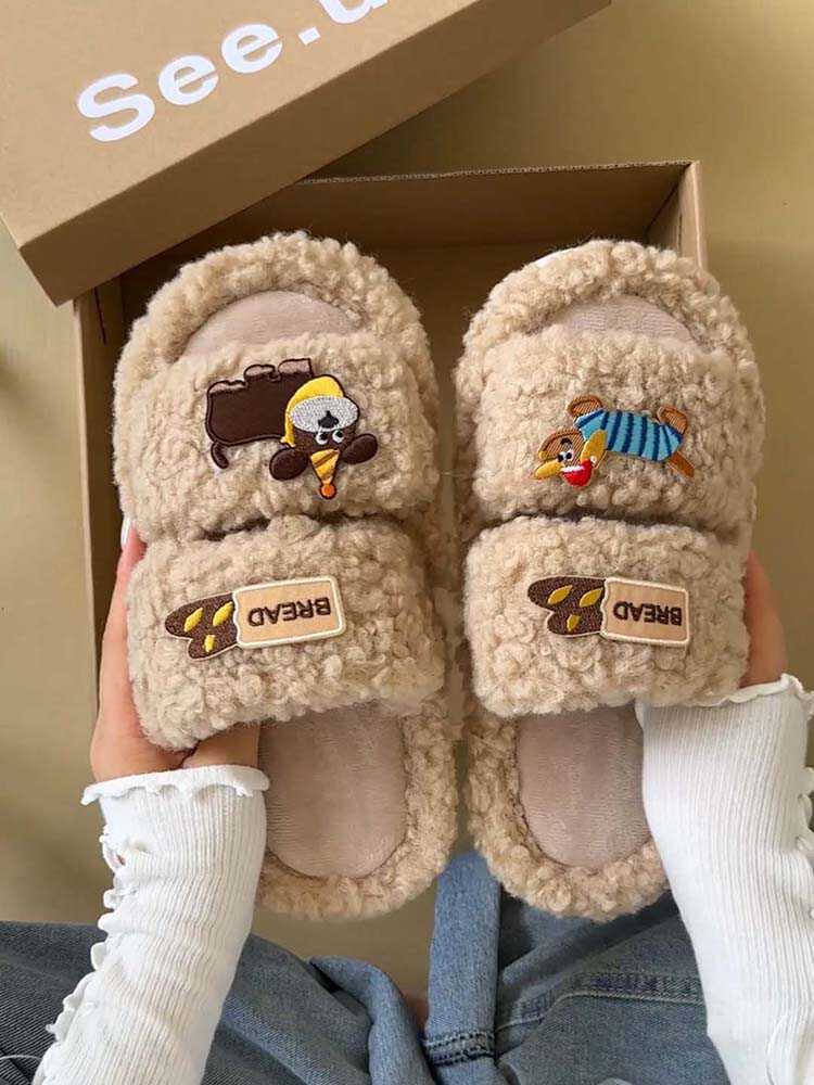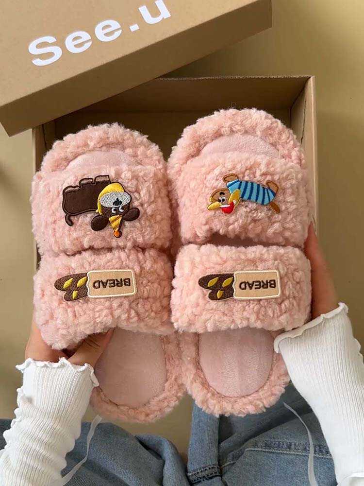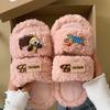 Pantuflas de Algodón de Dibujos Animados Lindas Ropa de Exterior para Mujer 2024 Otoño e Invierno Nuevas Más Fáciles de Combinar Moda Pantuflas Peludas Pantuflas Planas Zapatos de Mujer