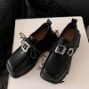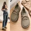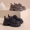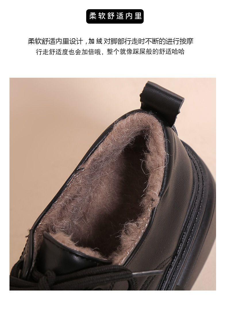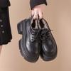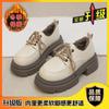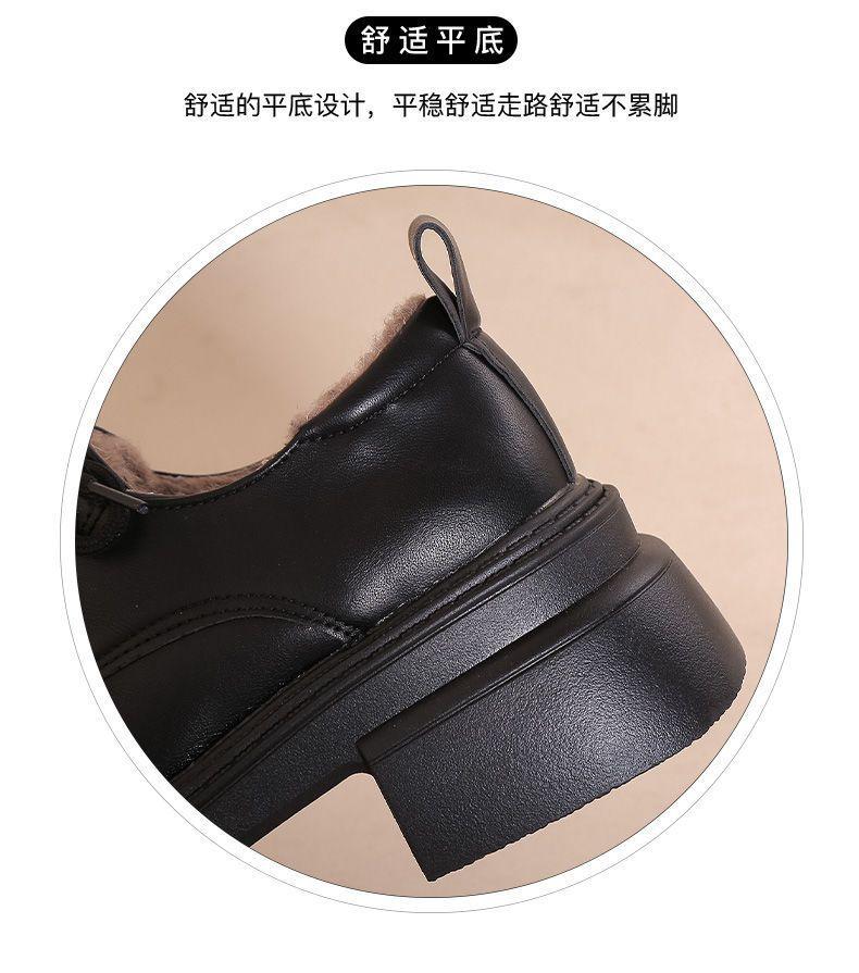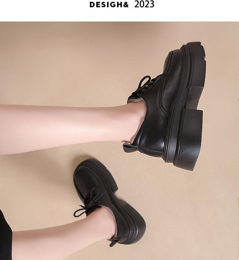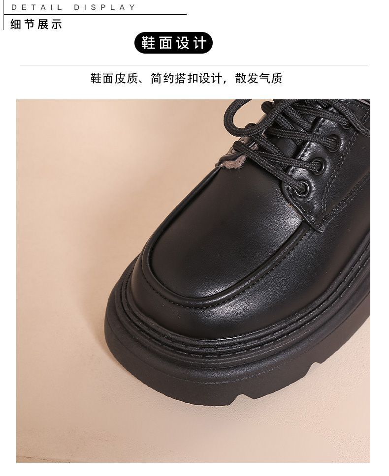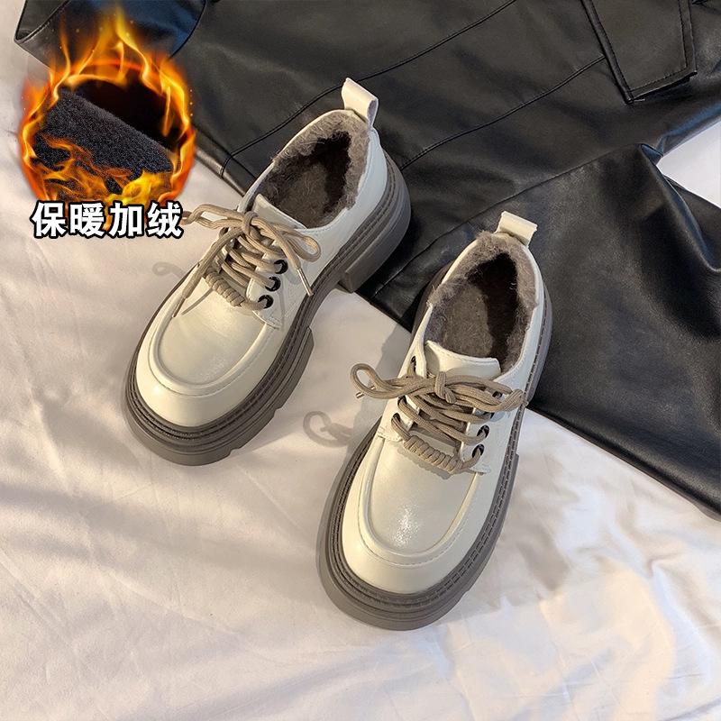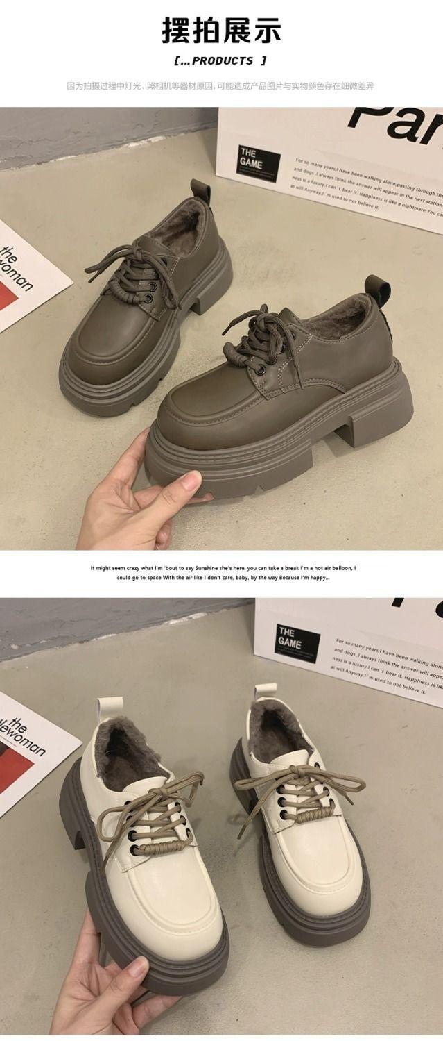 Zapatos de cuero con cordones estilo británico para mujer, invierno 2023, nuevos mocasines de plataforma con forro polar retro versátiles que aumentan la altura