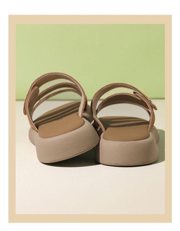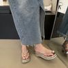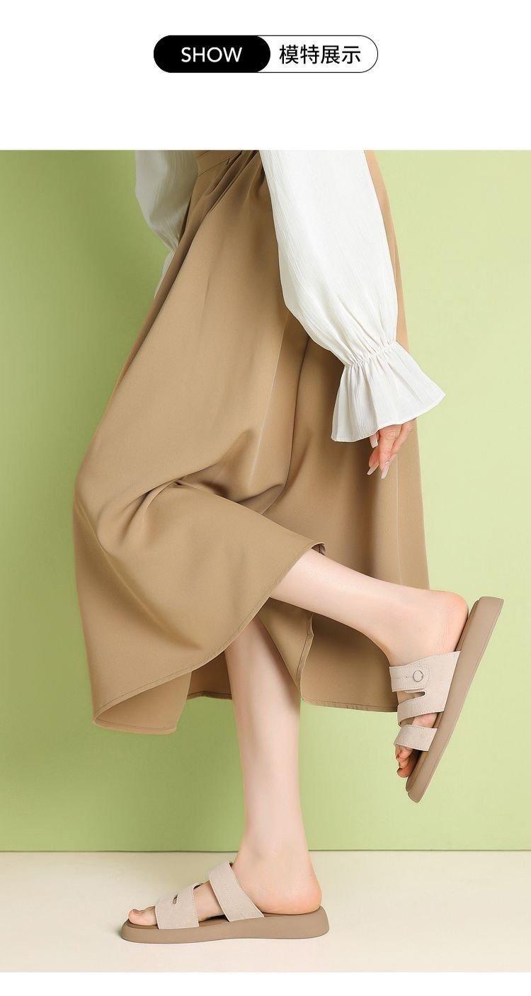 Sandalias y pantuflas de suela gruesa para mujer, ropa de exterior de verano 2024, zapatillas casuales de suela plana de moda con falda, zapatos de playa