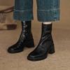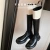 Botas largas de piel auténtica Grape Mom del mismo estilo para mujer, otoño e invierno, nuevas botas largas y ajustadas de barril pequeño, botas de caballero planas con suela gruesa