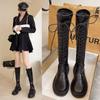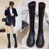 Botas de caballero para mujer, otoño e invierno, 21, nuevas, versátiles, elásticas, finas, con cordones, altas, planas, sin rodilla.
