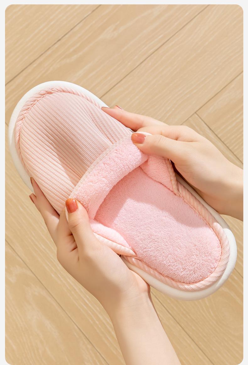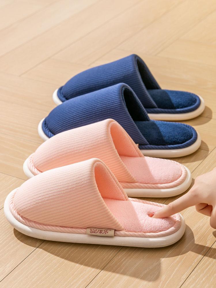 2024 pantuflas de algodón engrosado para mujer otoño e invierno para interior de casa antideslizantes con forro polar cálidas de punta cerrada pantuflas de piso para hombre al por mayor