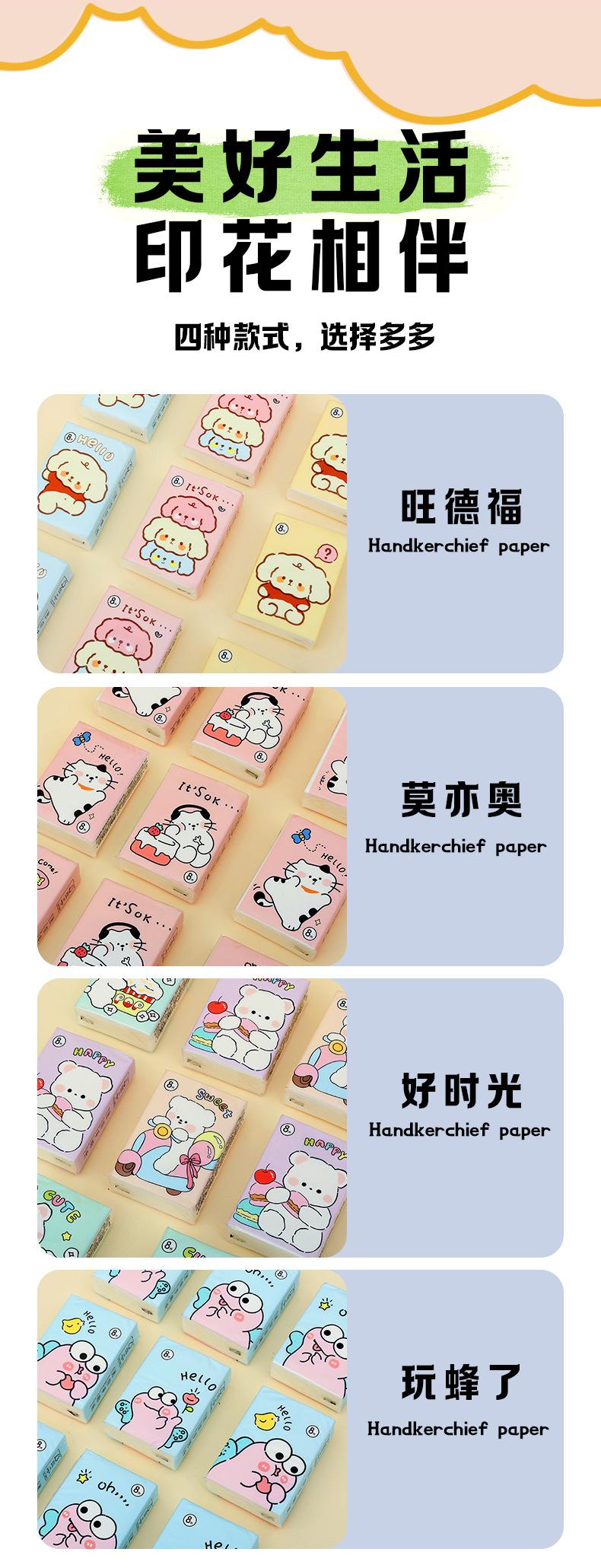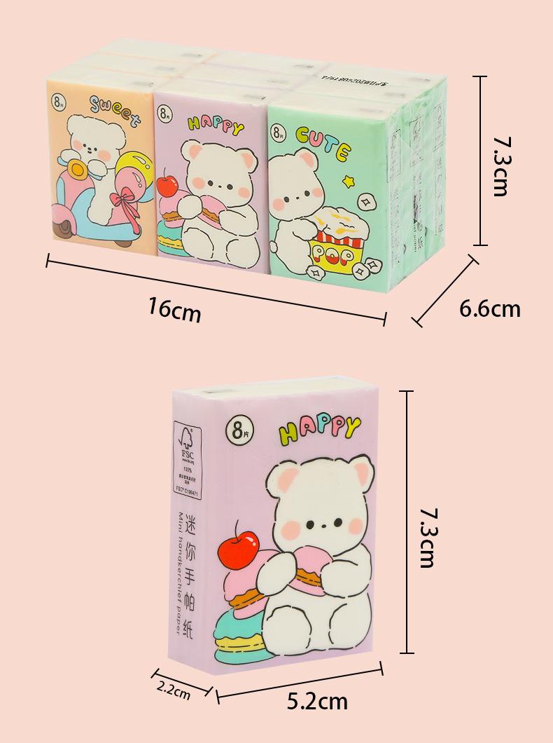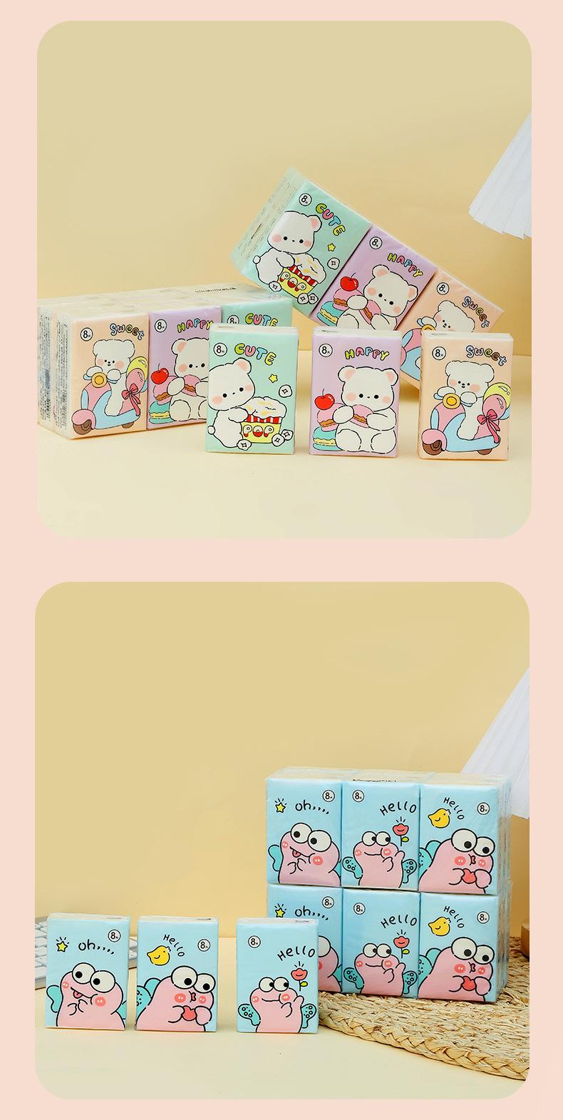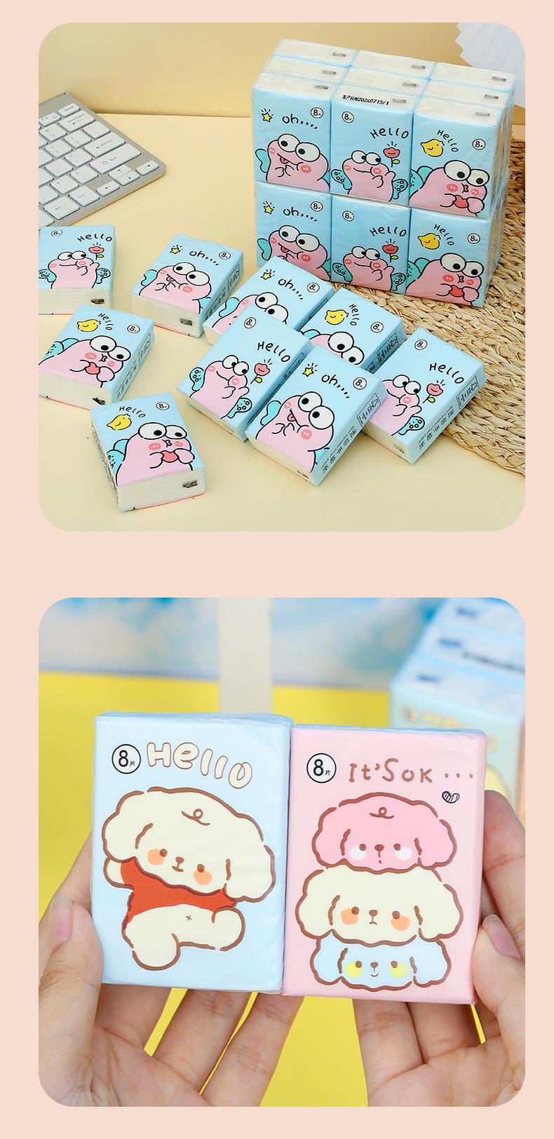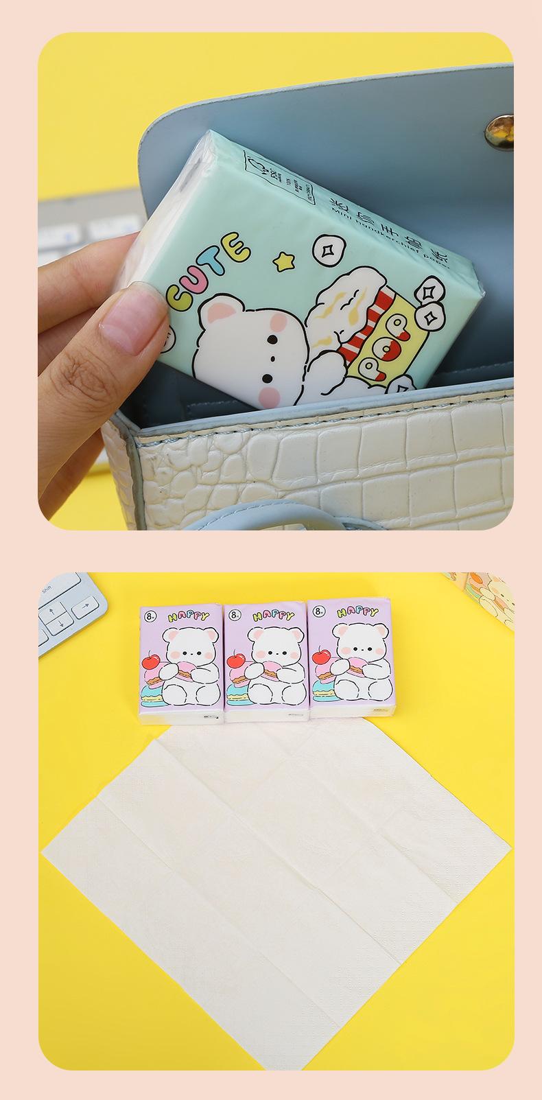 Pañuelo de papel con dibujos animados, portátil, pequeño, para bolso, toalla de papel, para estudiantes, de bolsillo, pañuelo facial