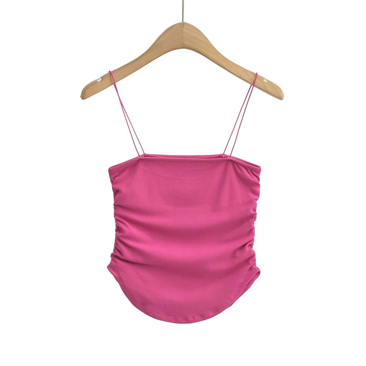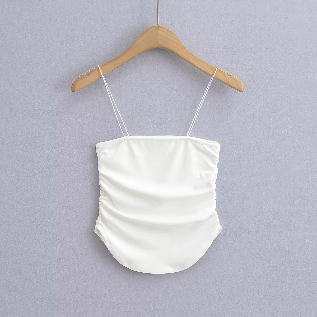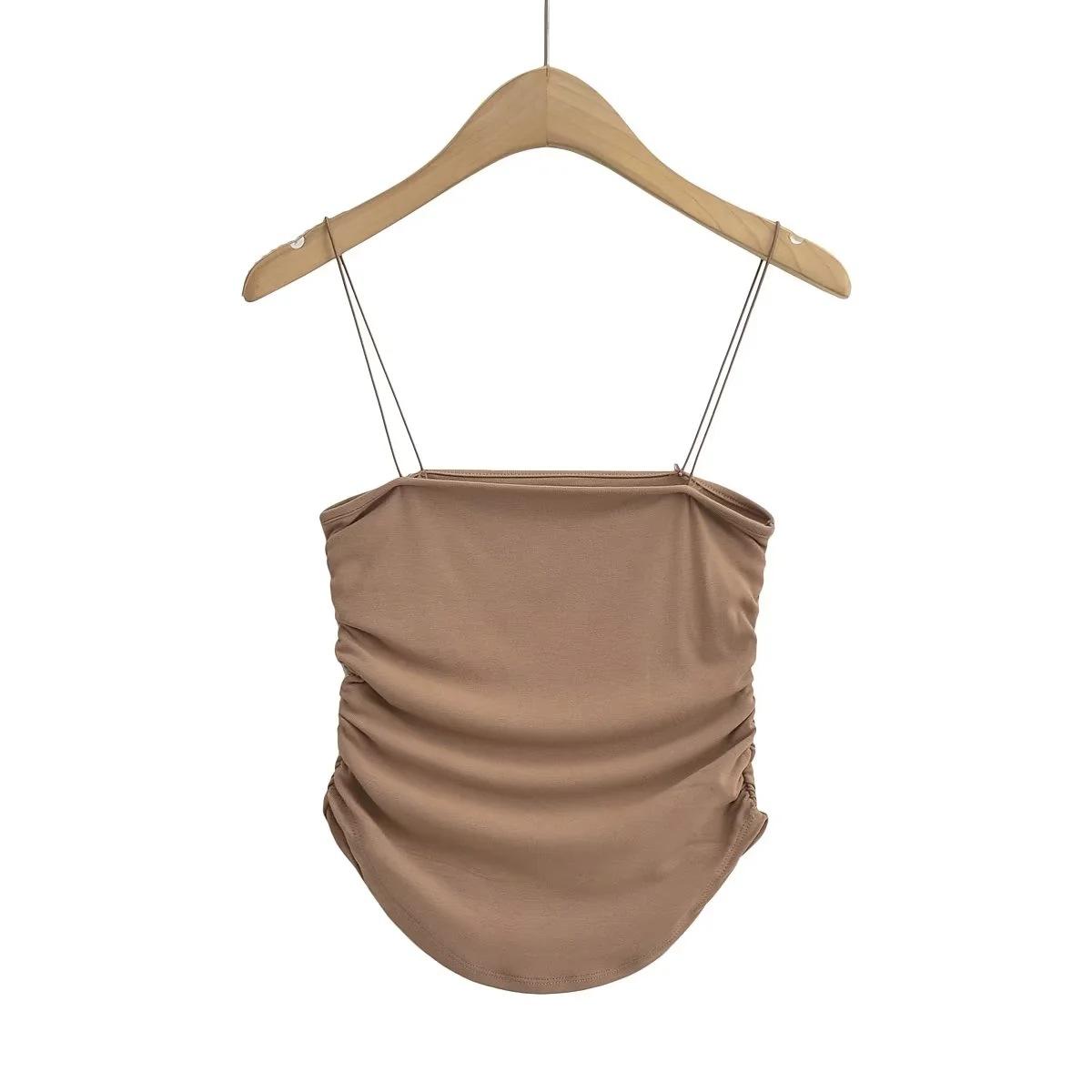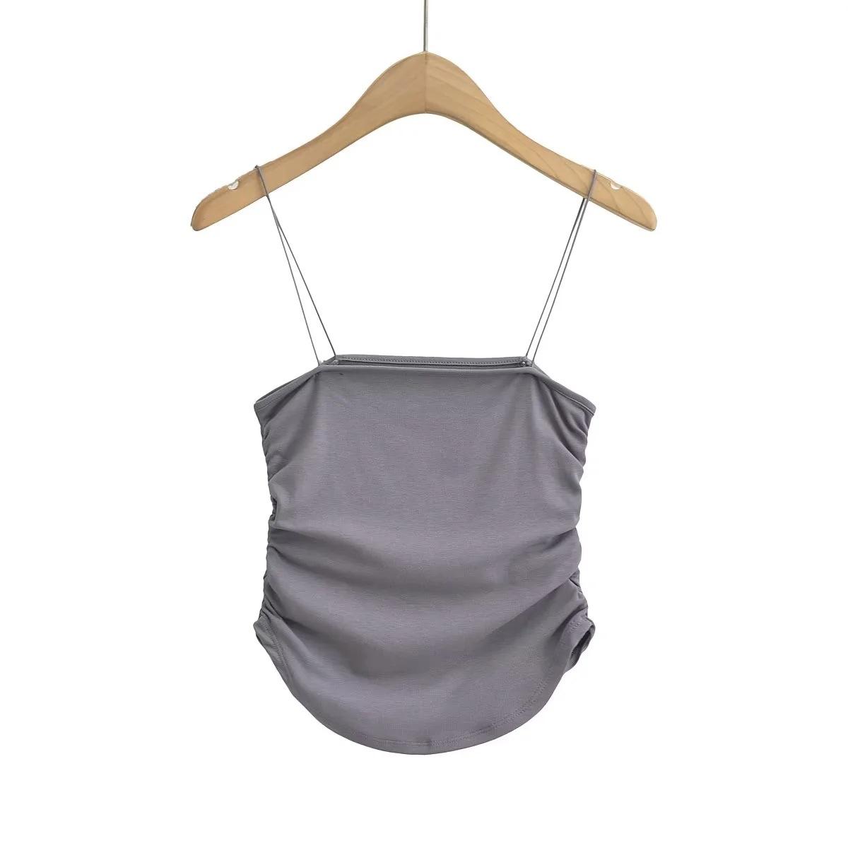 Chaleco de ducha sexy y cómodo para mujer, estilo europeo y americano, con tirantes plisados laterales, de verano, nuevo, femenino y atractivo.