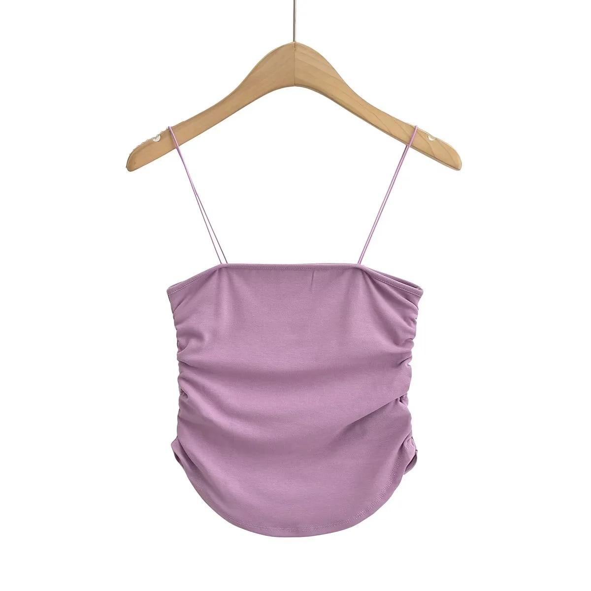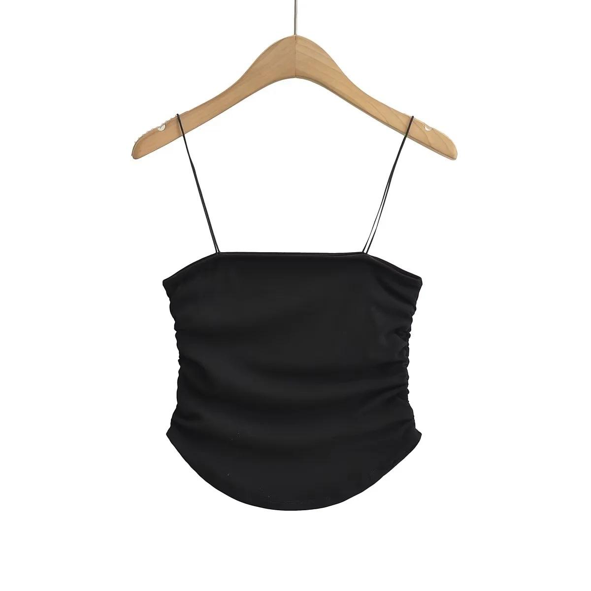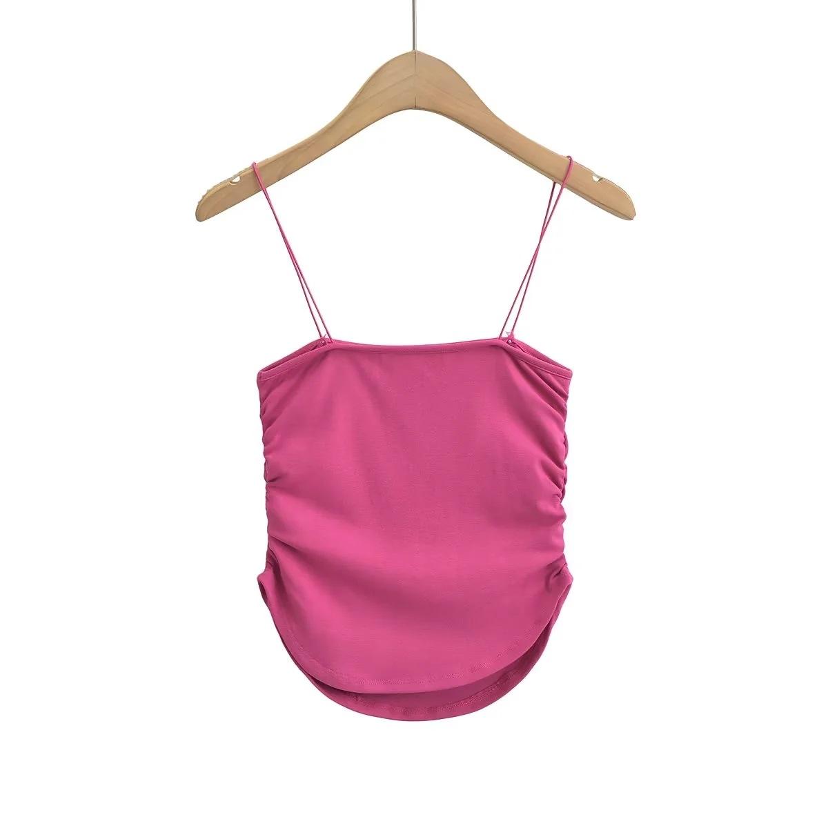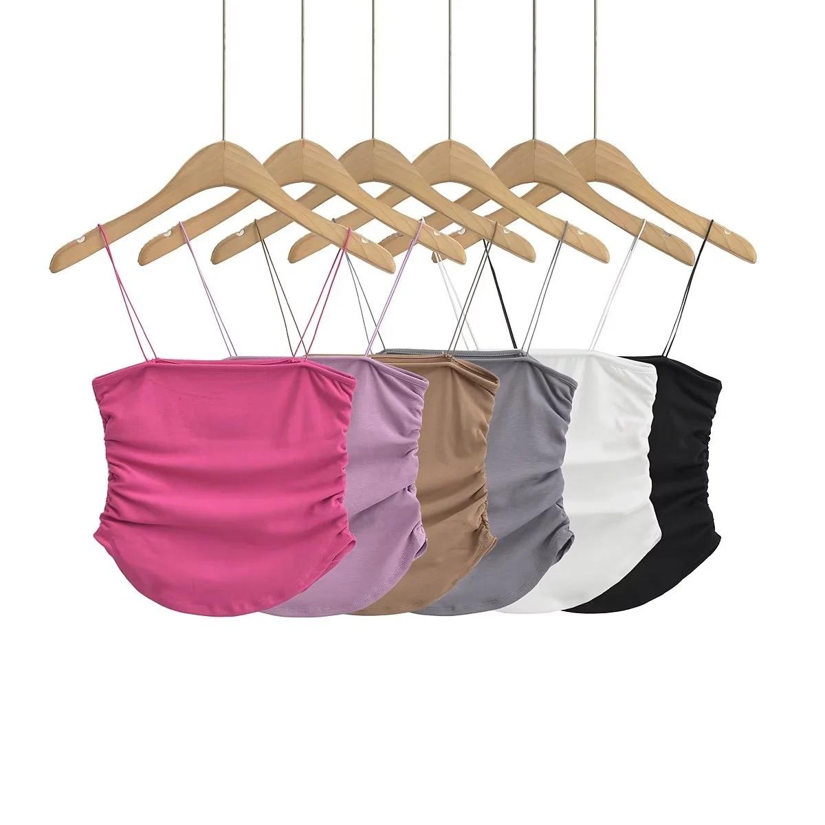 Chaleco de ducha sexy y cómodo para mujer, estilo europeo y americano, con tirantes plisados laterales, de verano, nuevo, femenino y atractivo.