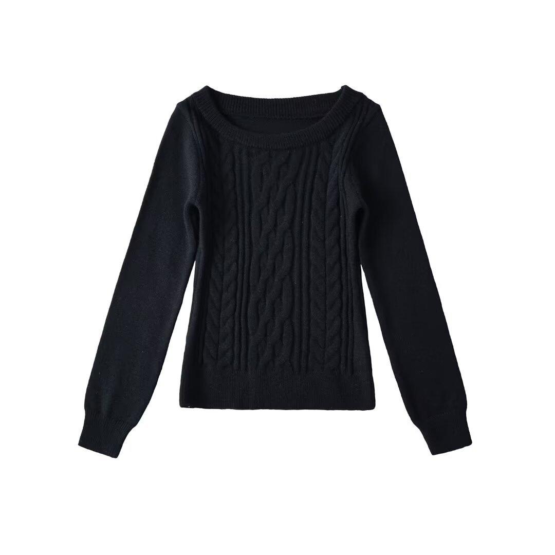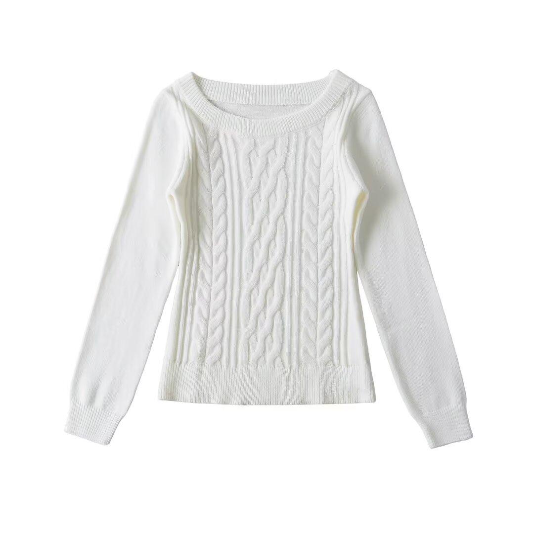 Estilo Americano 2024 Otoño Nuevo Spice Girl Suéter Tejido de Hombro Inclinado para Mujer Estilo Europeo y Americano Color Sólido Ajustado Top Jersey Delgado