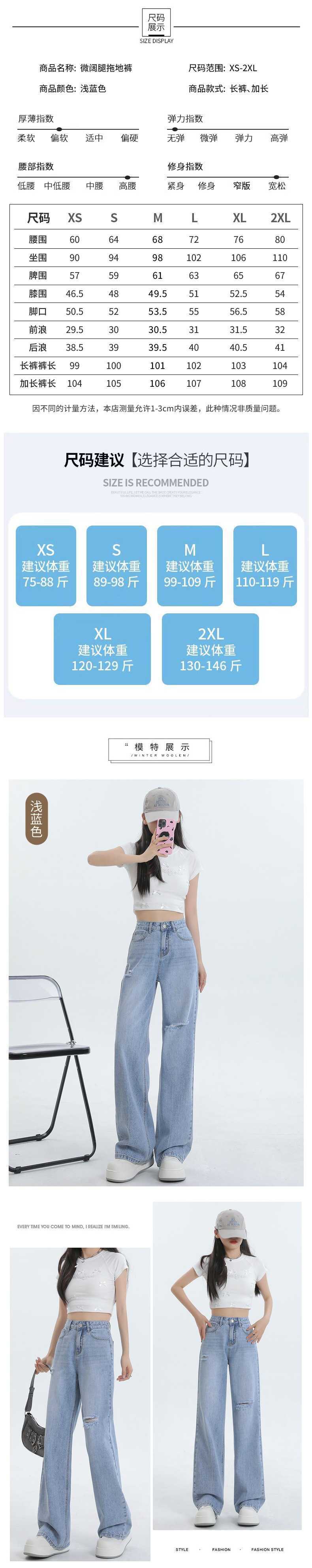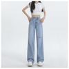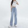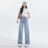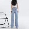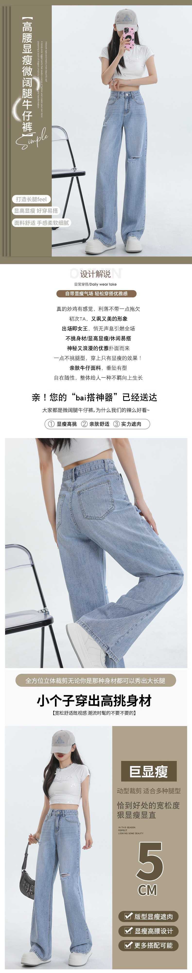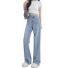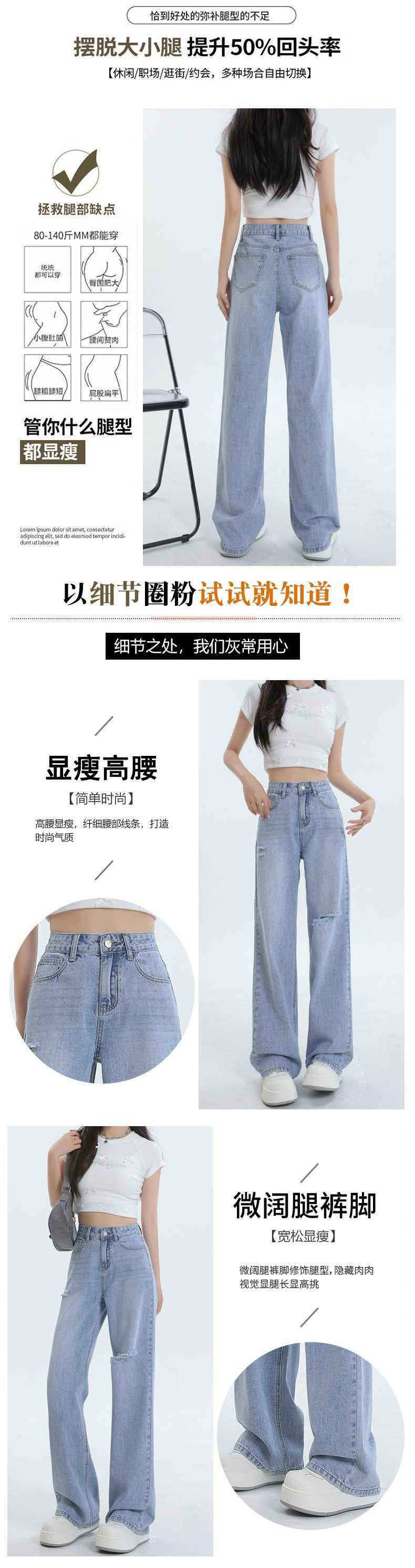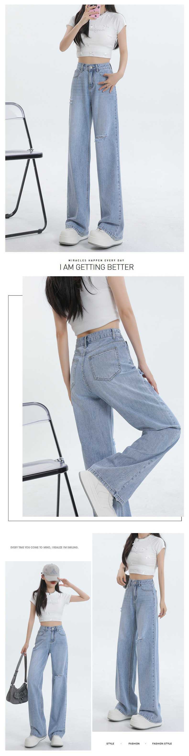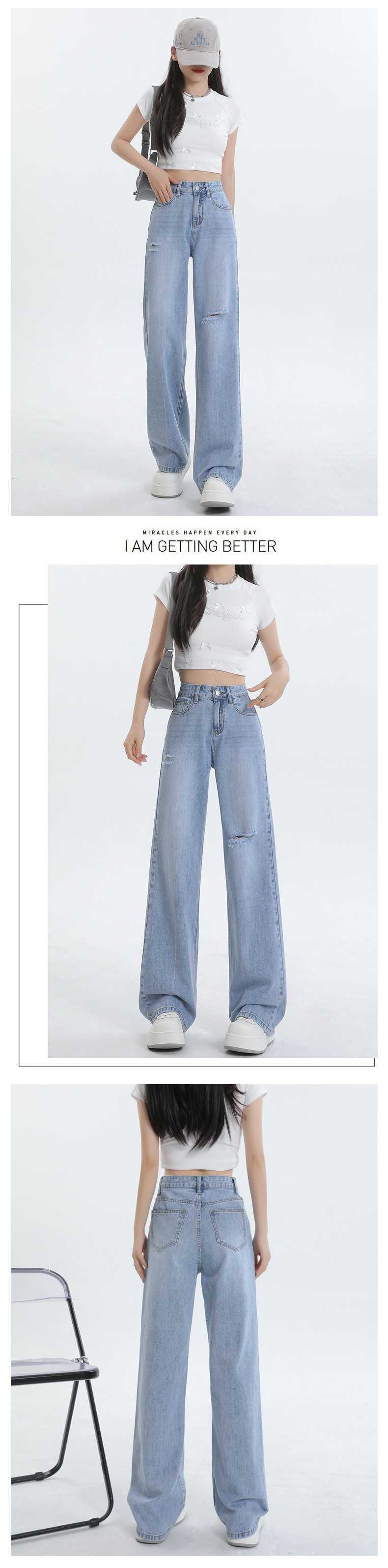 Diseño de color claro jeans largos de piso rotos de cintura alta para mujer