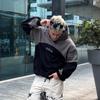 Suéter con capucha de manga larga, estilo europeo y americano, otoño e invierno, con bordado de letras y costuras de colores, tendencia suelta, moda 2024